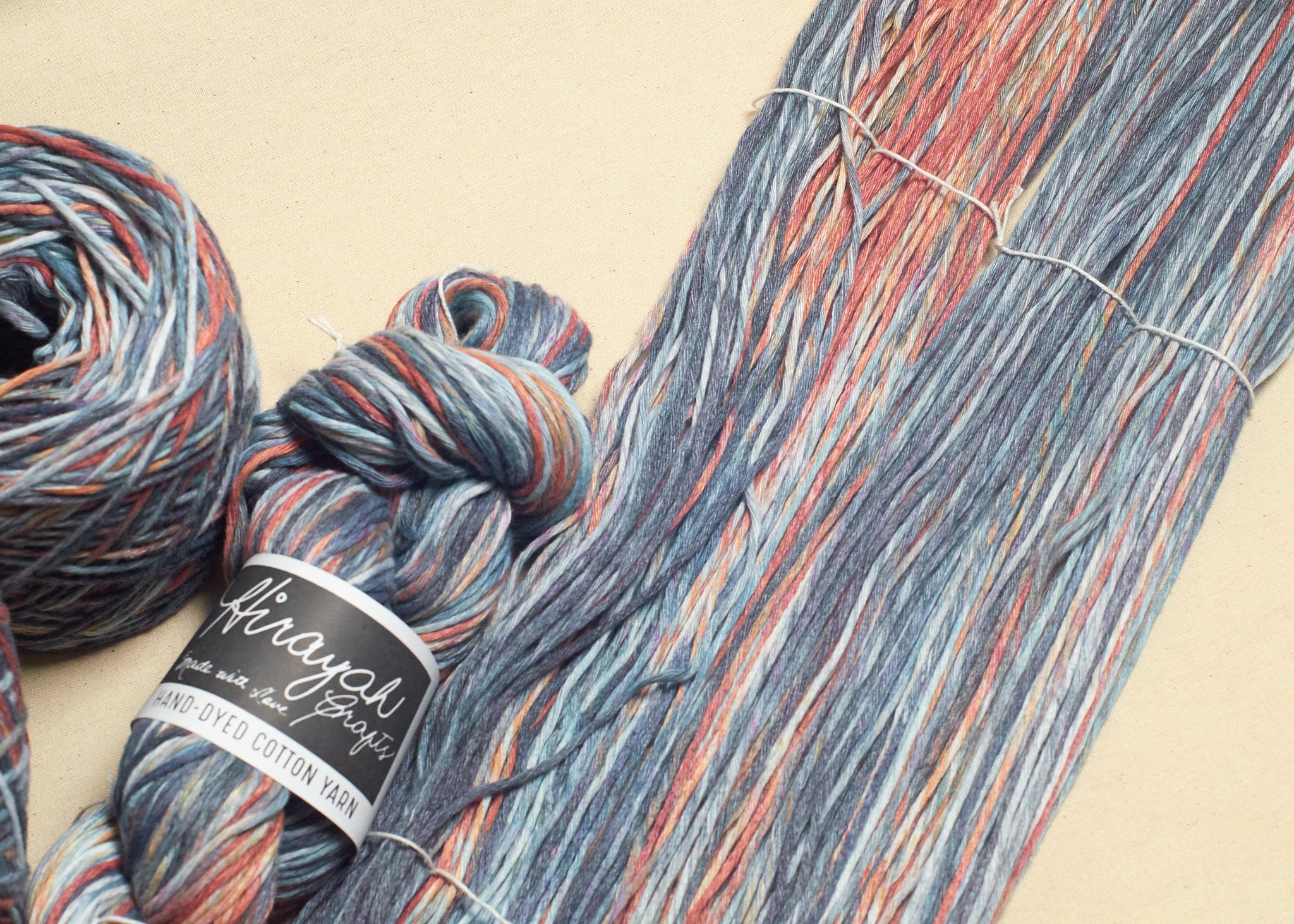 08.06.24 NOTICE: After how many years dyeing with Monaco natural yarn. We just recently discovered that the yarn we have been using is not actually 100% cotton but a poly cotton blend, 65% polyester and 35% cotton. We will slowly change our yarn descriptions and labels. We are sorry for causing misinformation for we also believed what the manufacturing company stated.