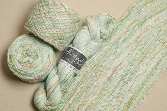 Light worsted weight/ 8ply hand-dyed cotton yarn.
