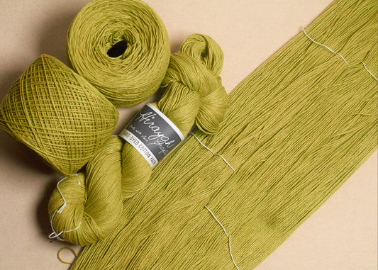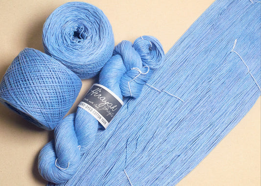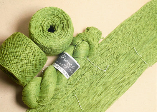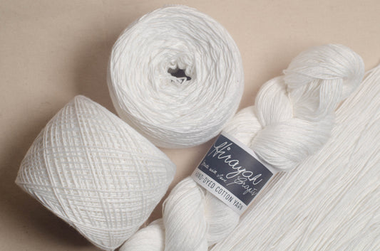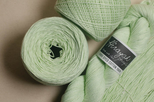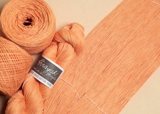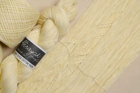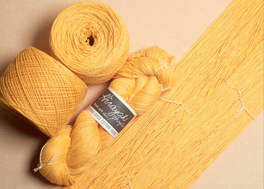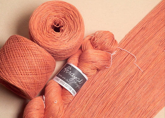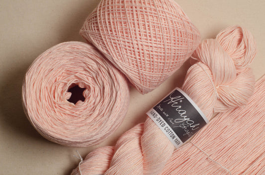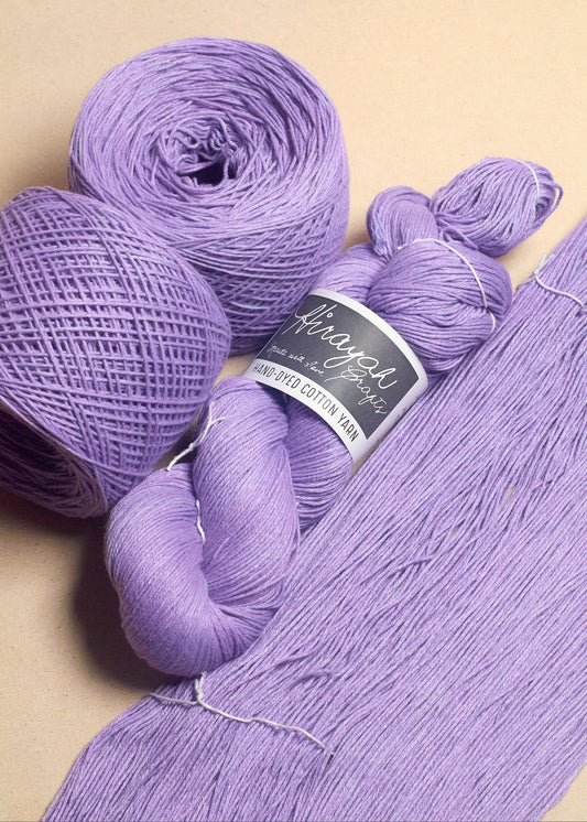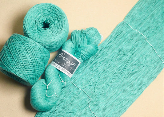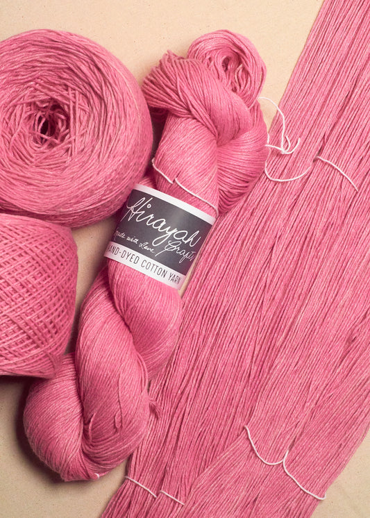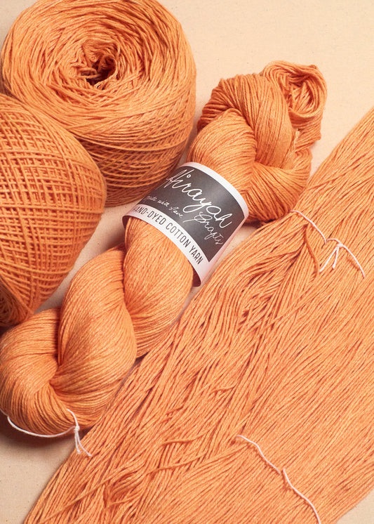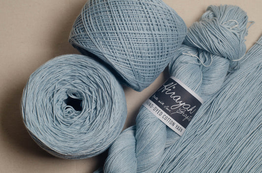 Light worsted weight/ 8ply hand-dyed cotton yarn.