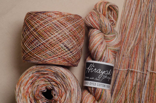 Sport weight/ 6 ply hand-dyed cotton yarn with six pieces available.