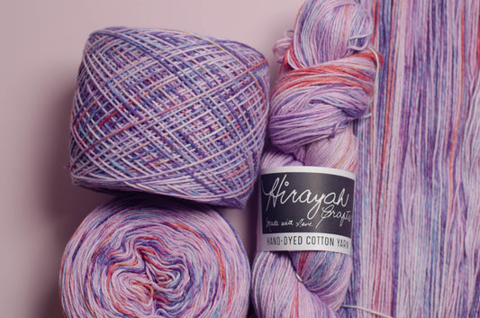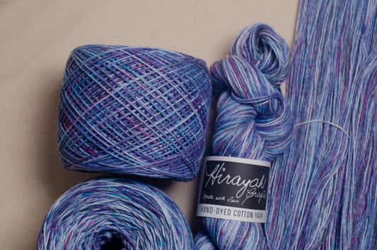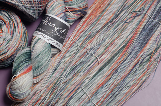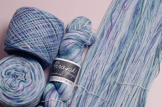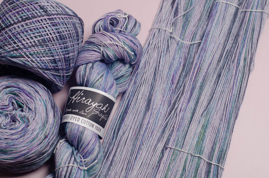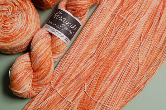 Light worsted weight/ 8ply hand-dyed cotton yarn.