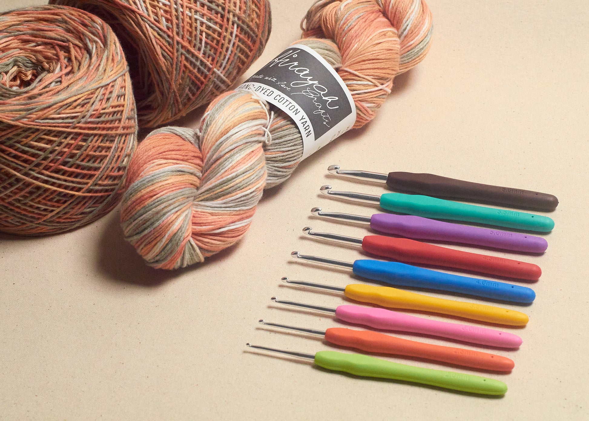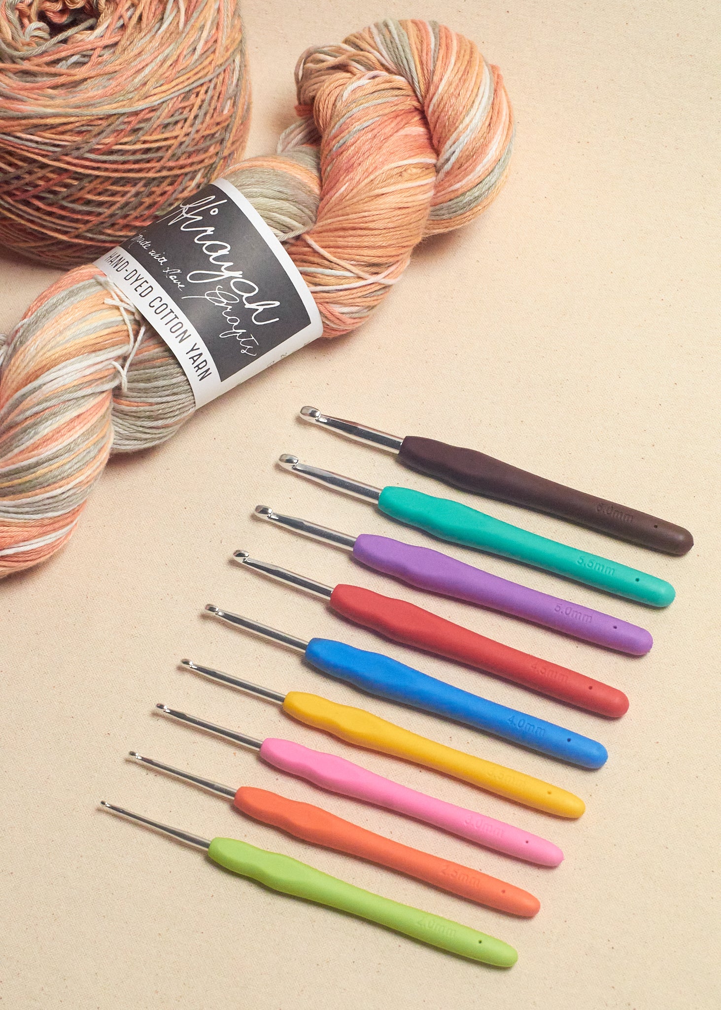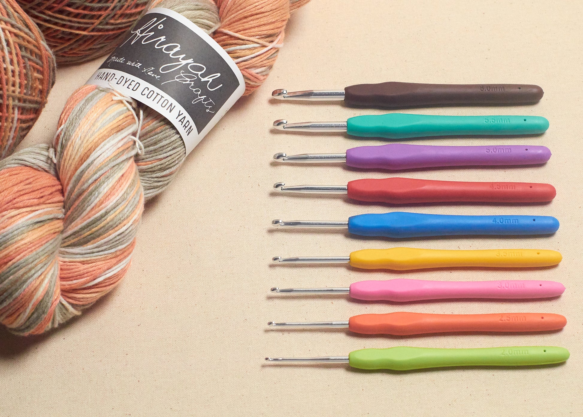 9-piece crochet hook set with rubberized handles