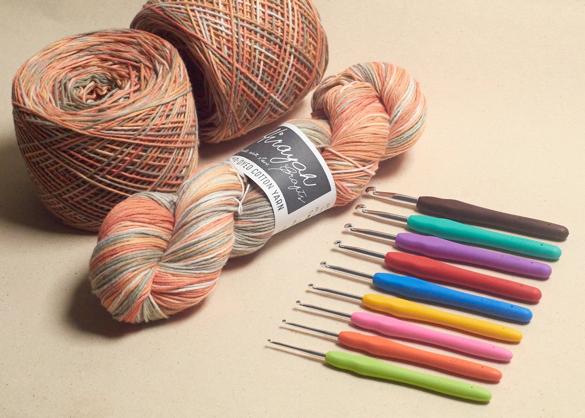 Light worsted weight/ 8ply hand-dyed cotton yarn.
