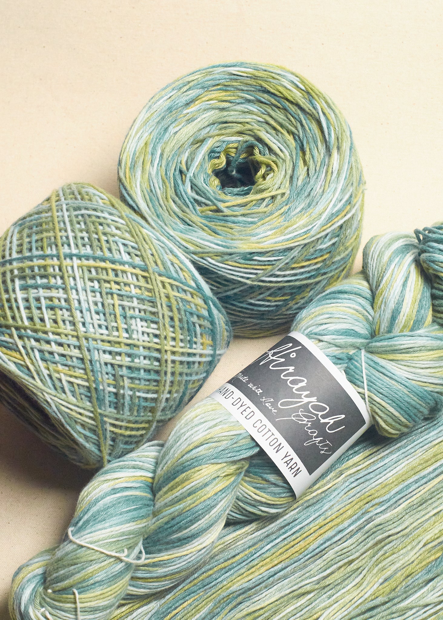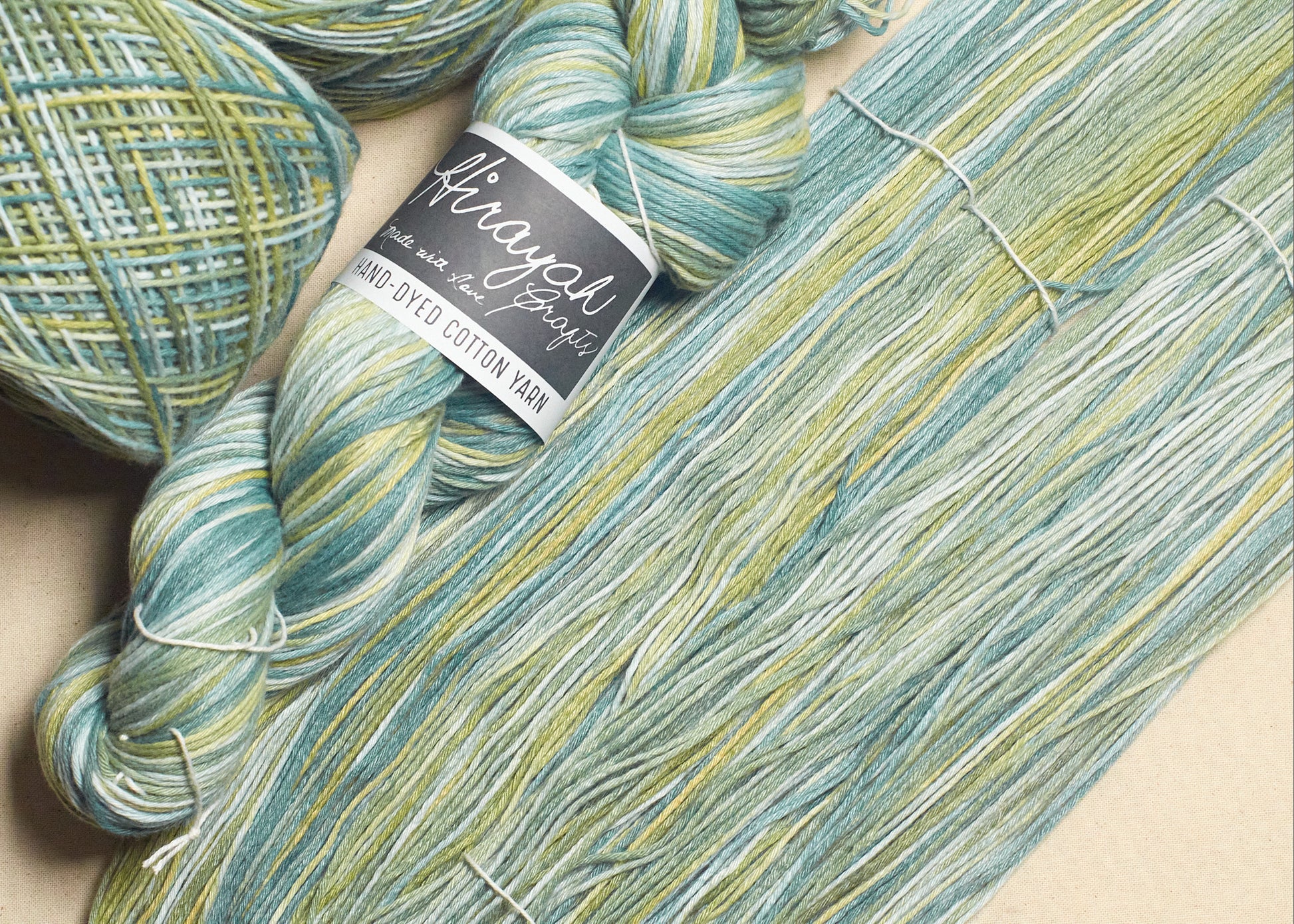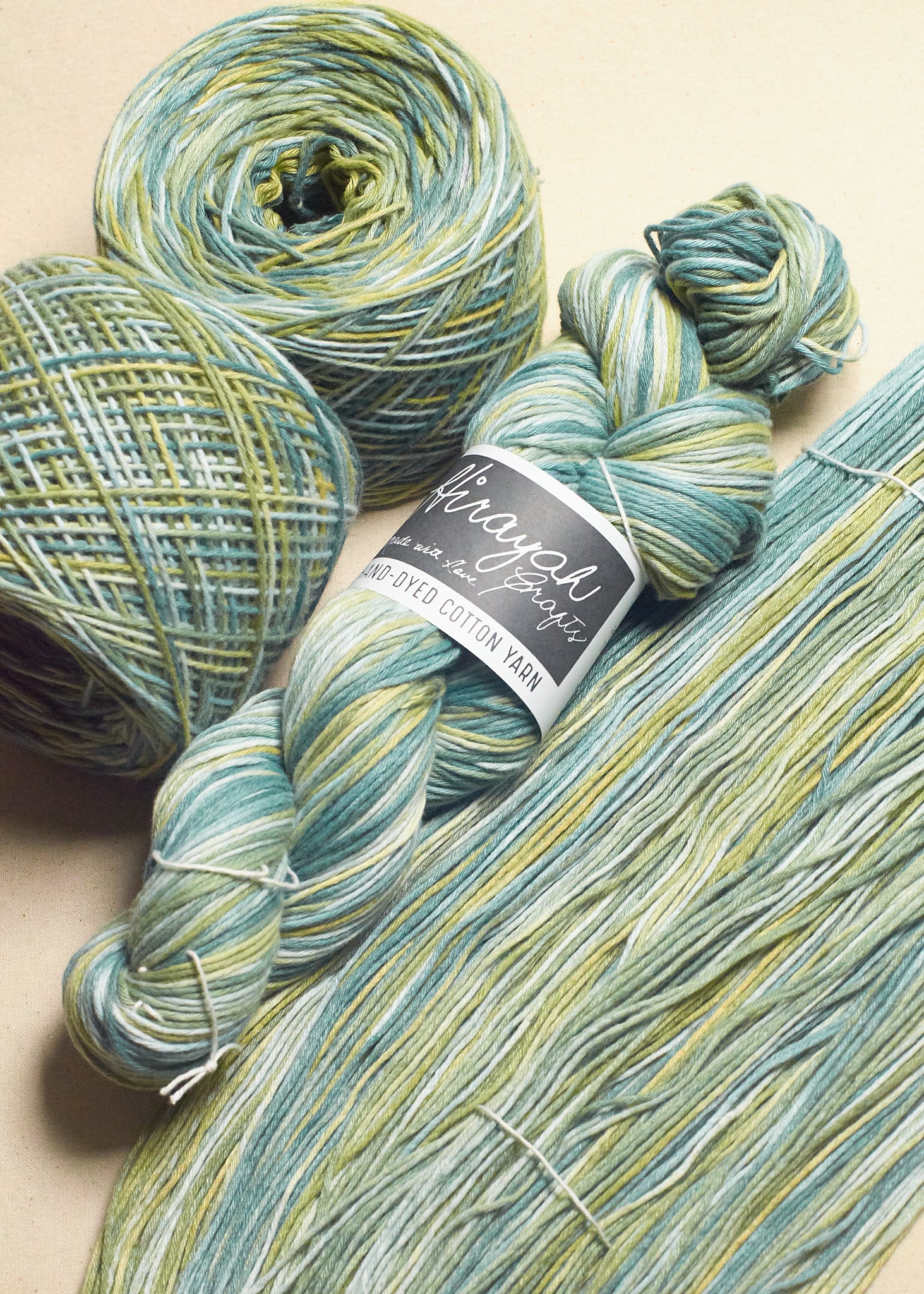 Light worsted weight/ 8ply hand-dyed cotton yarn.