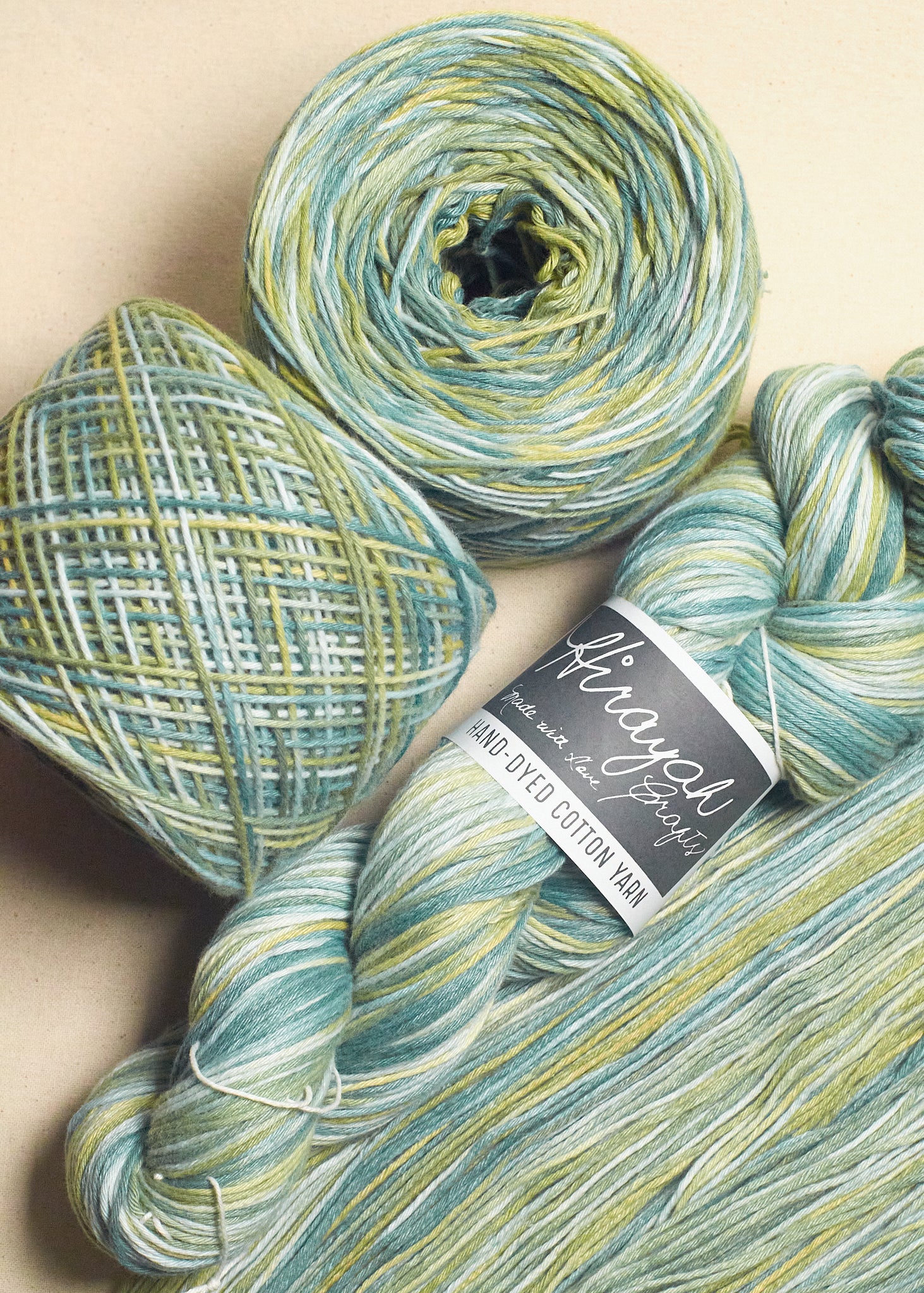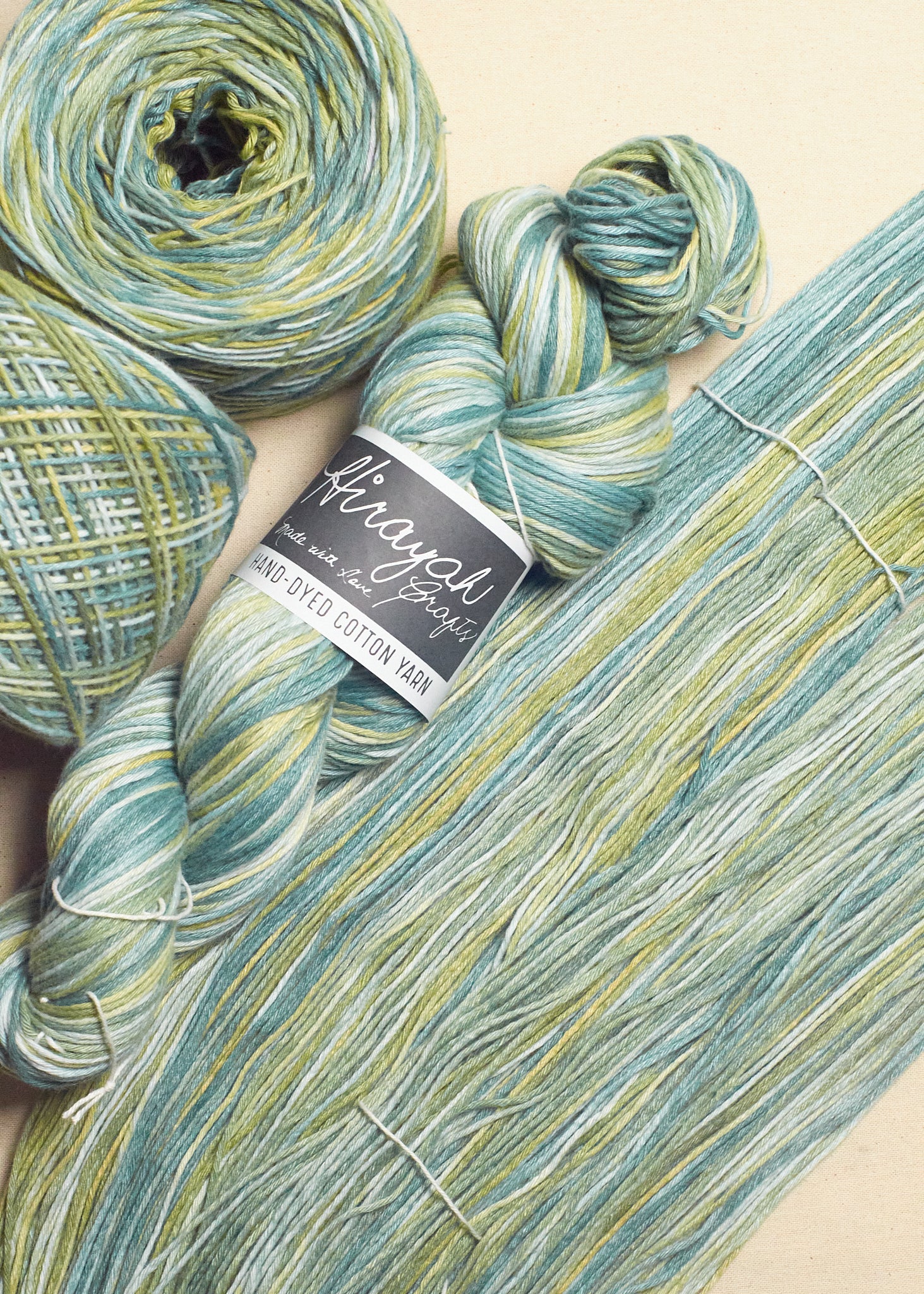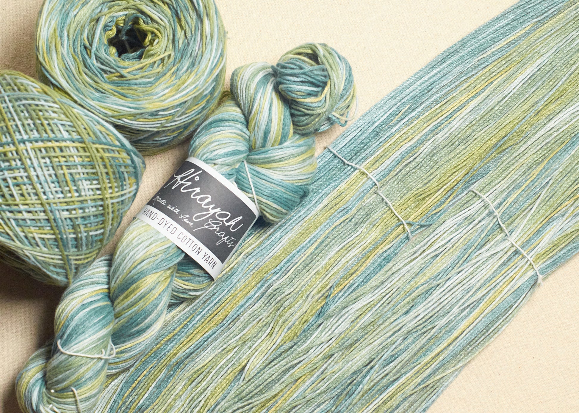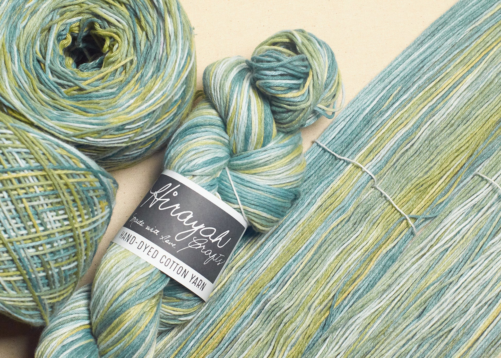 Light worsted weight/ 8ply hand-dyed cotton yarn.