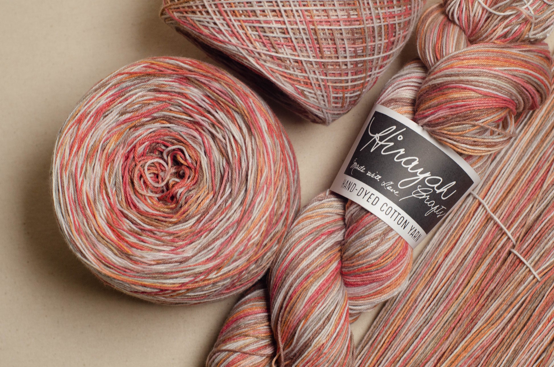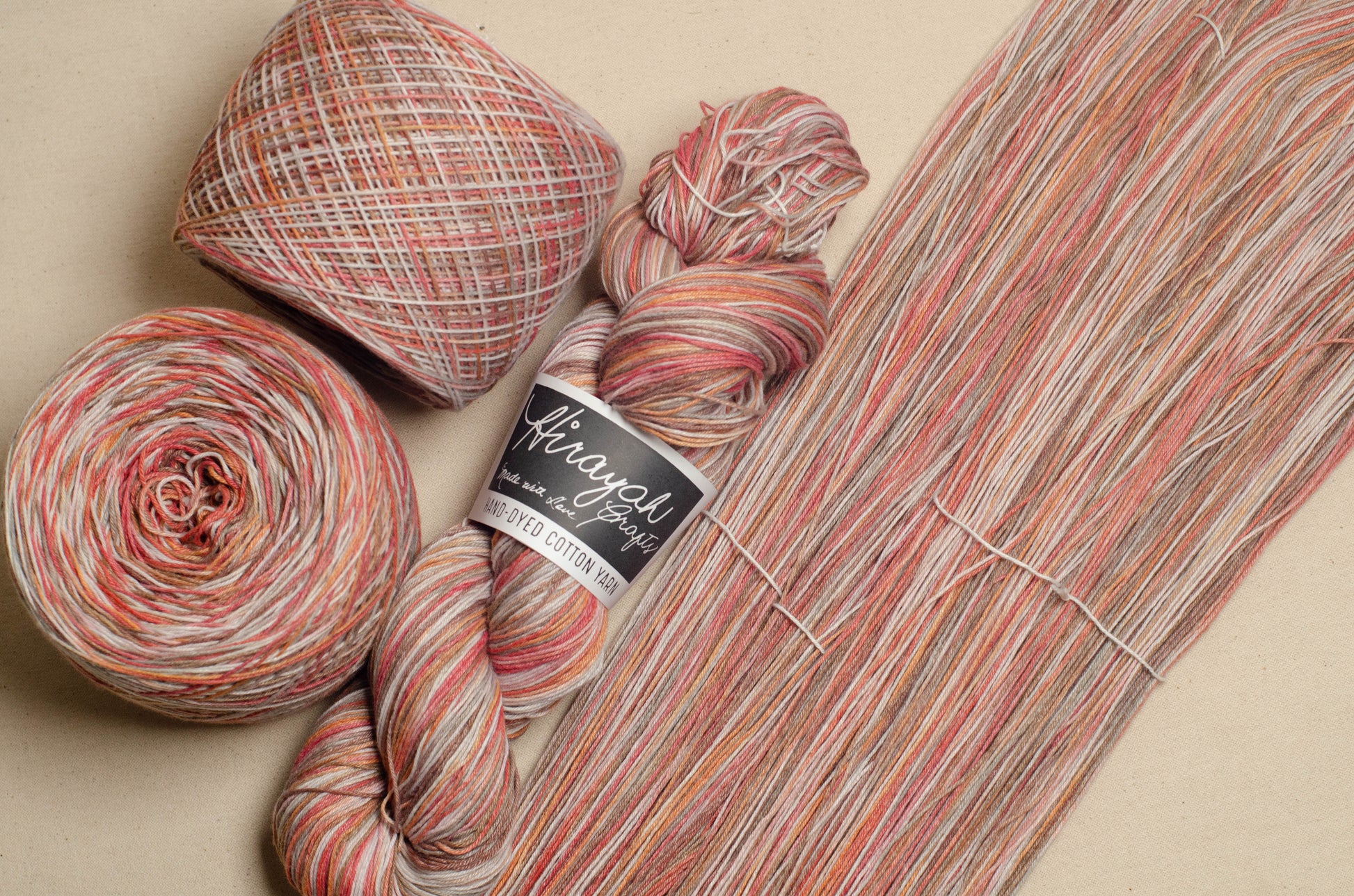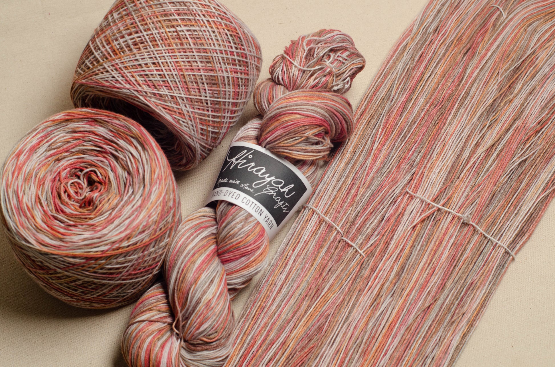 Light worsted weight/ 8ply hand-dyed cotton yarn.