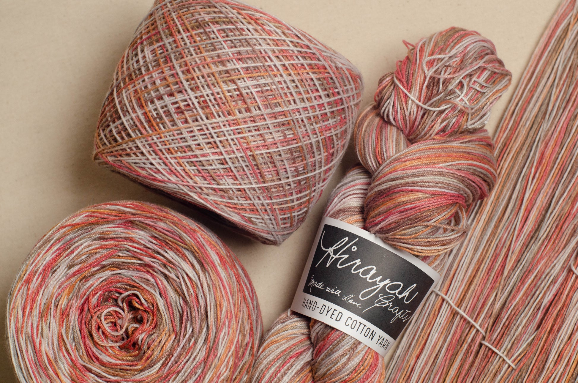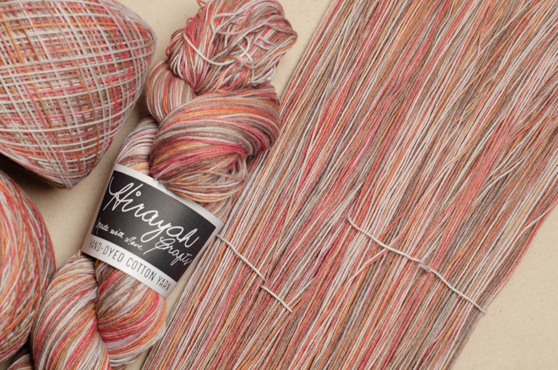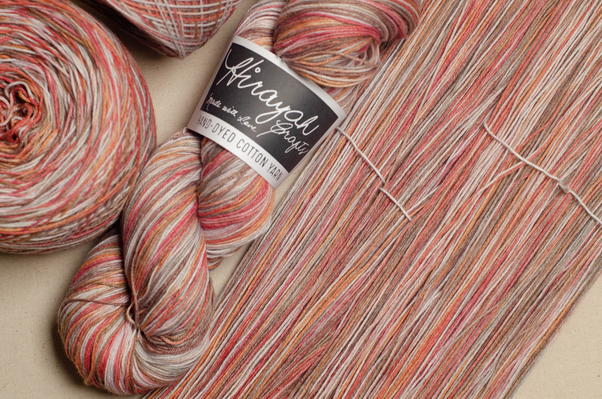 Light worsted weight/ 8ply hand-dyed cotton yarn.