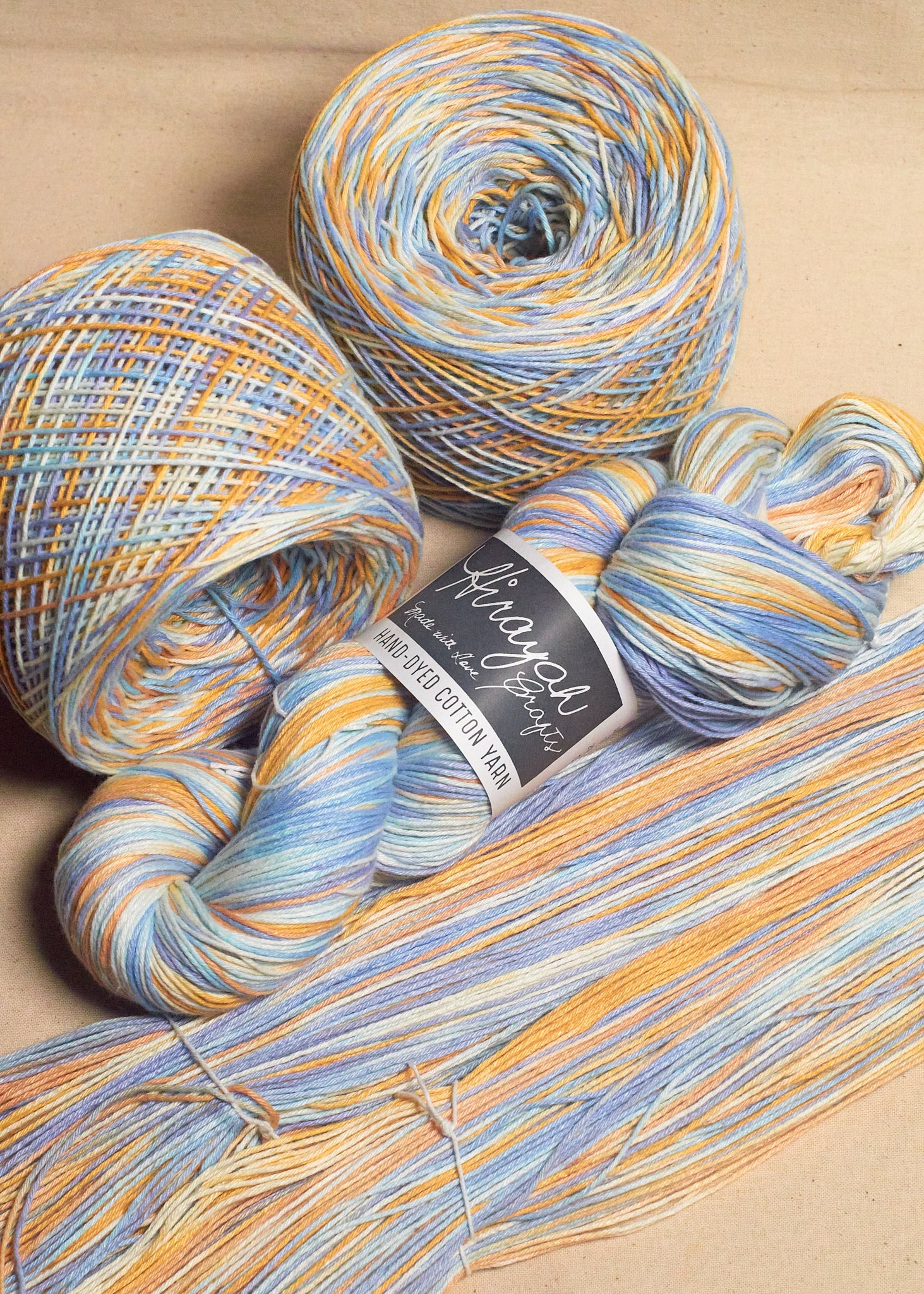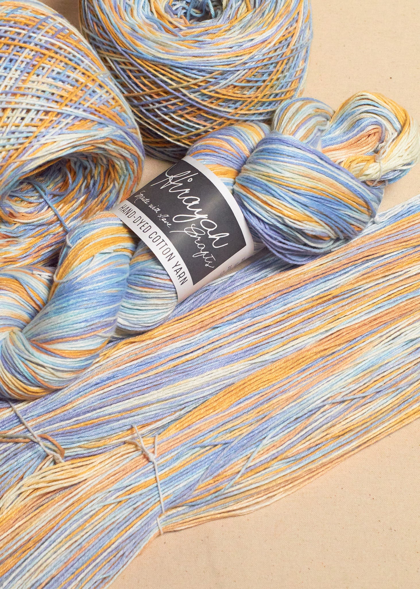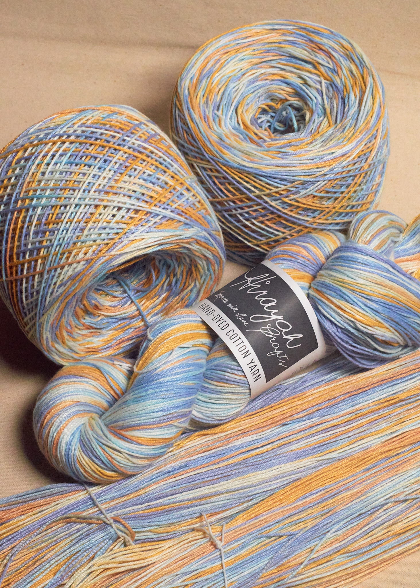 Light worsted weight/ 8ply hand-dyed cotton yarn.