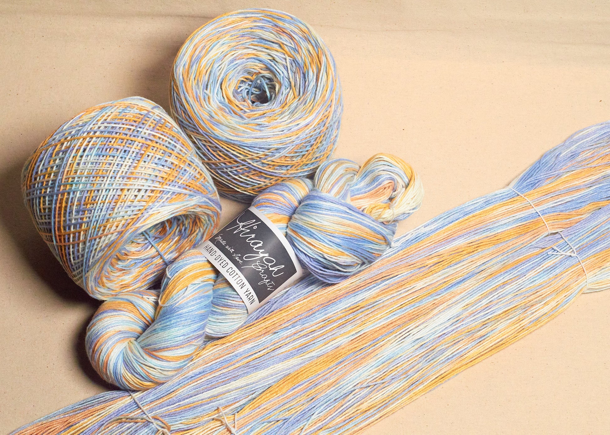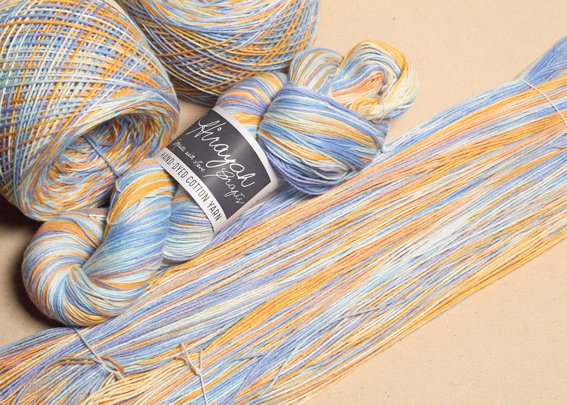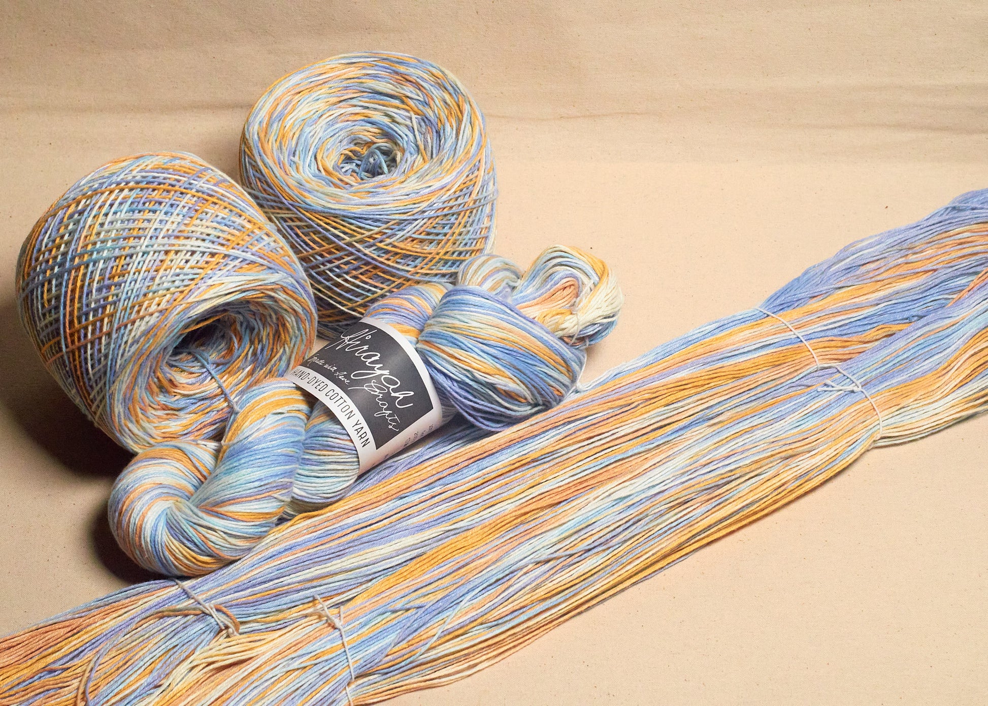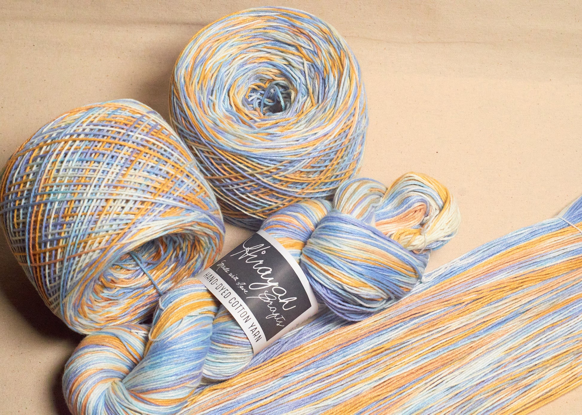 Light worsted weight/ 8ply hand-dyed cotton yarn.