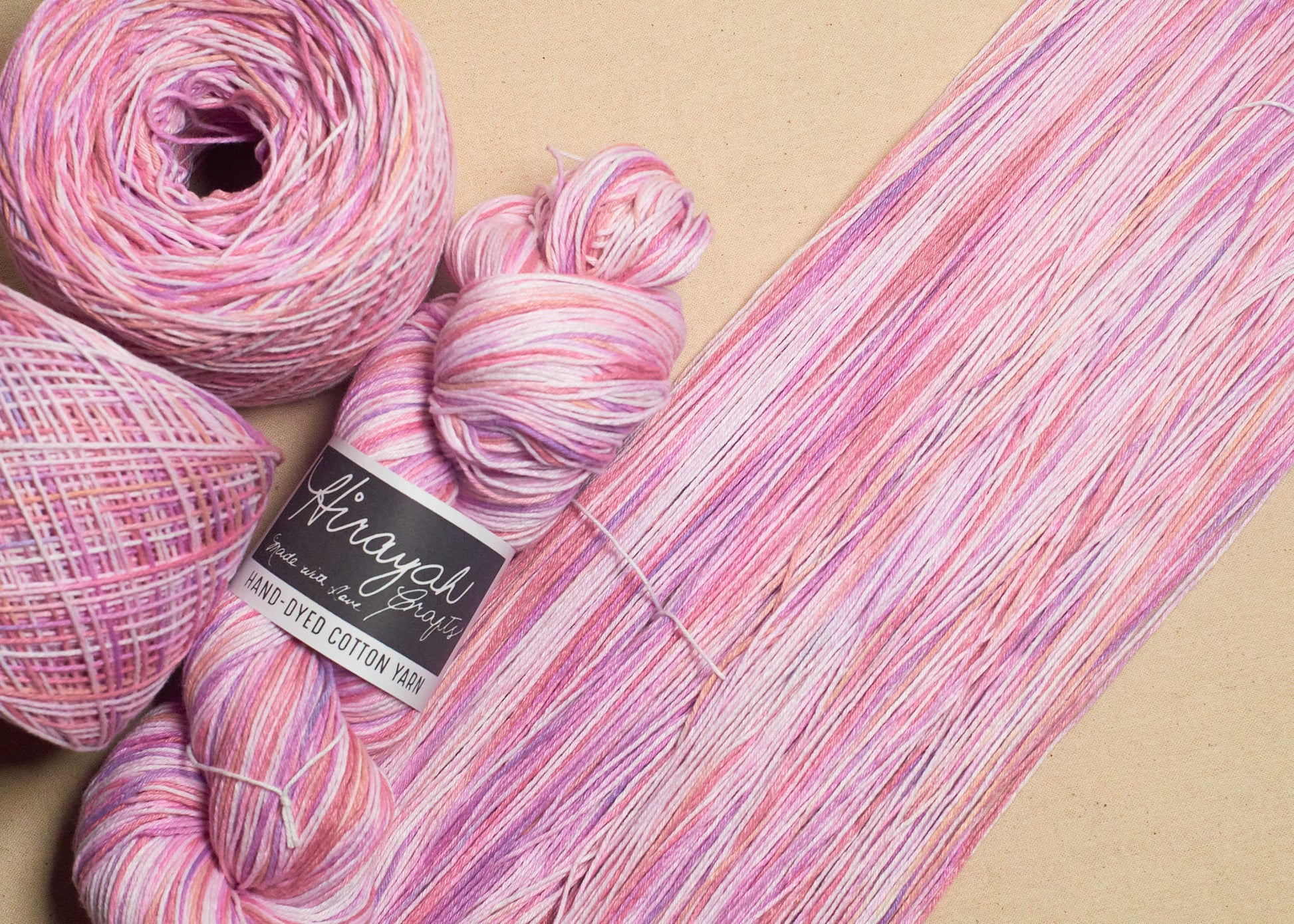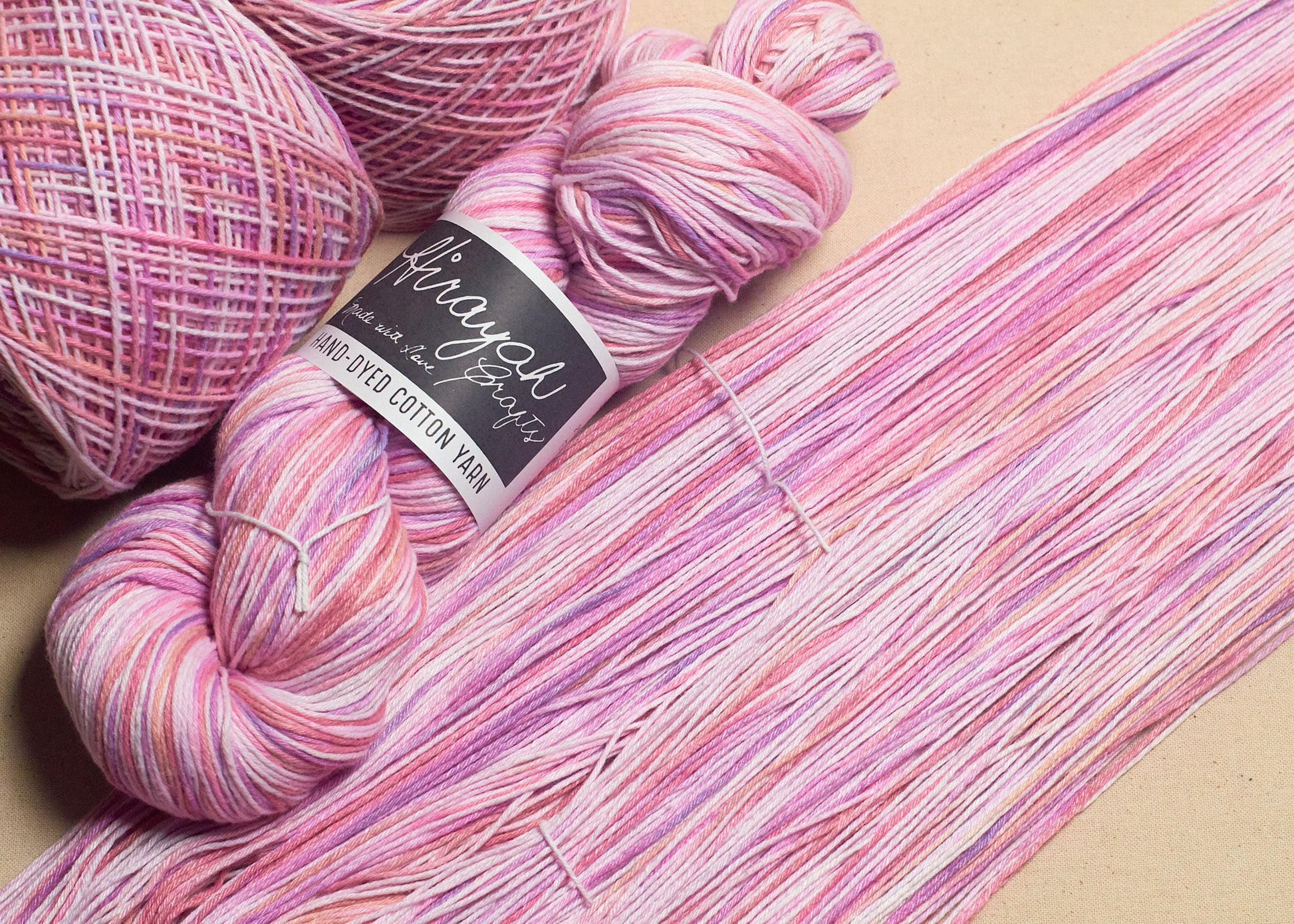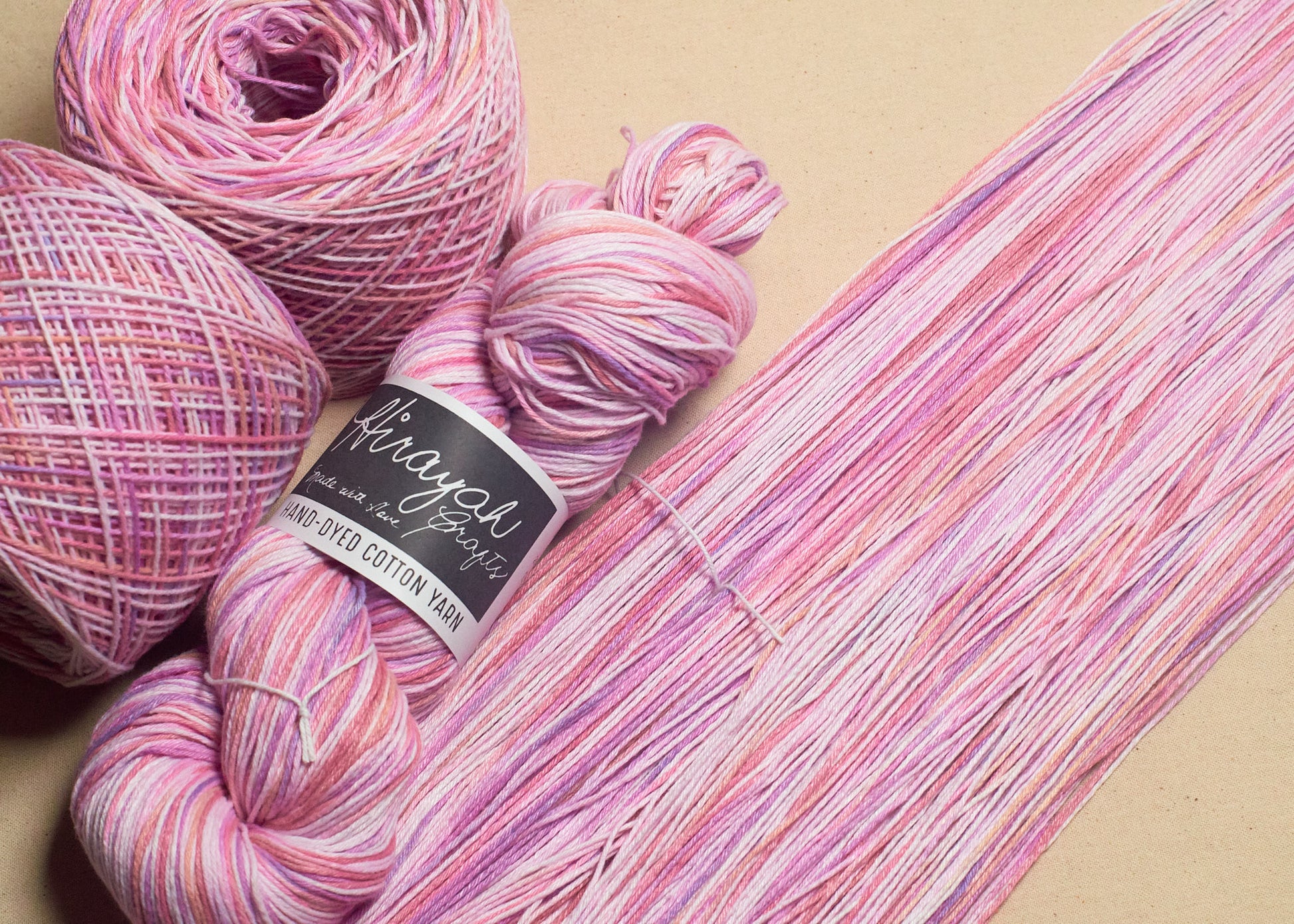 Light worsted weight/ 8ply hand-dyed cotton yarn.