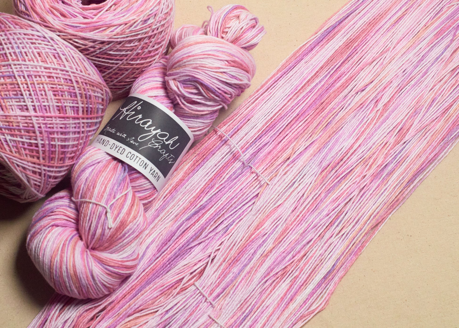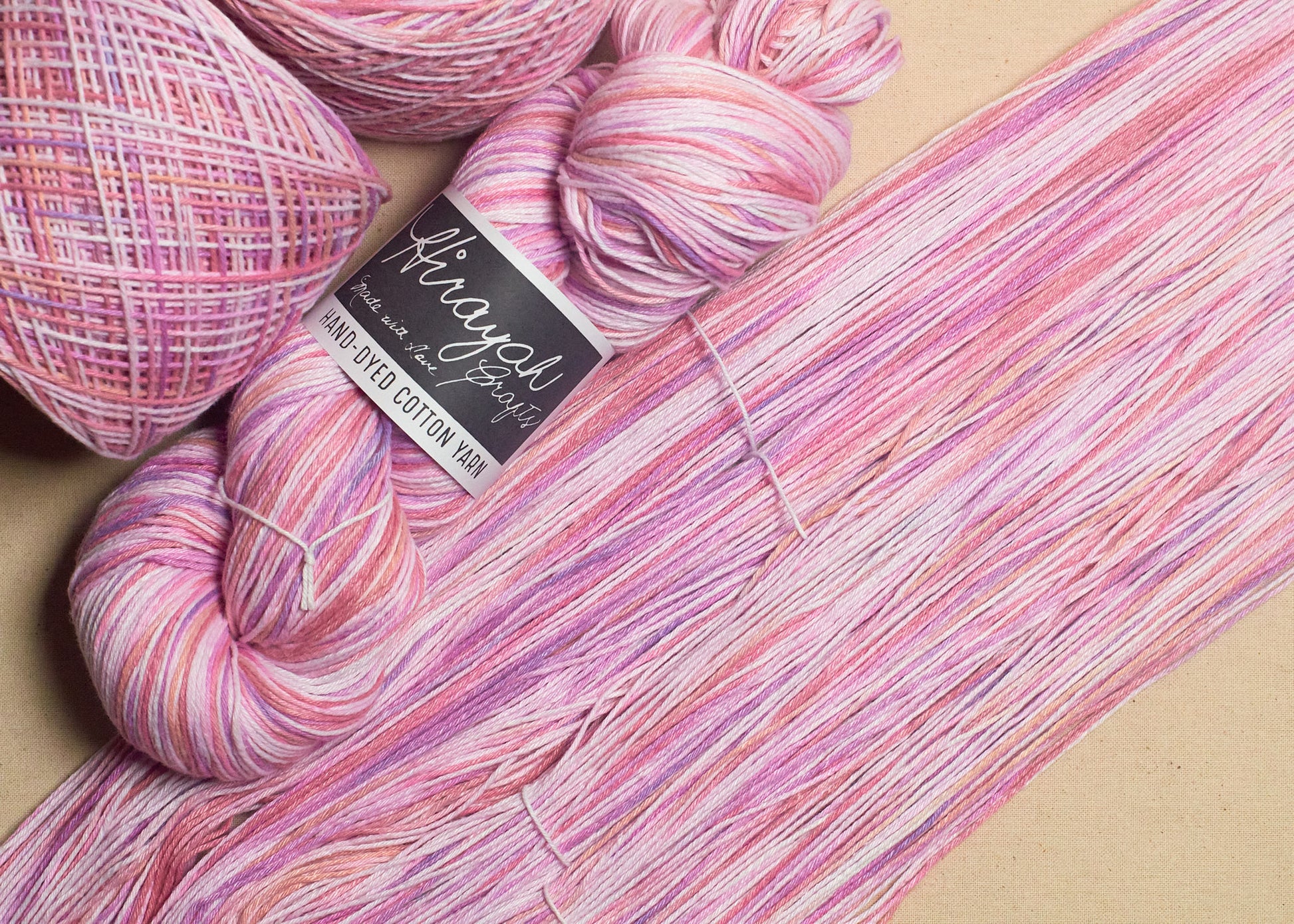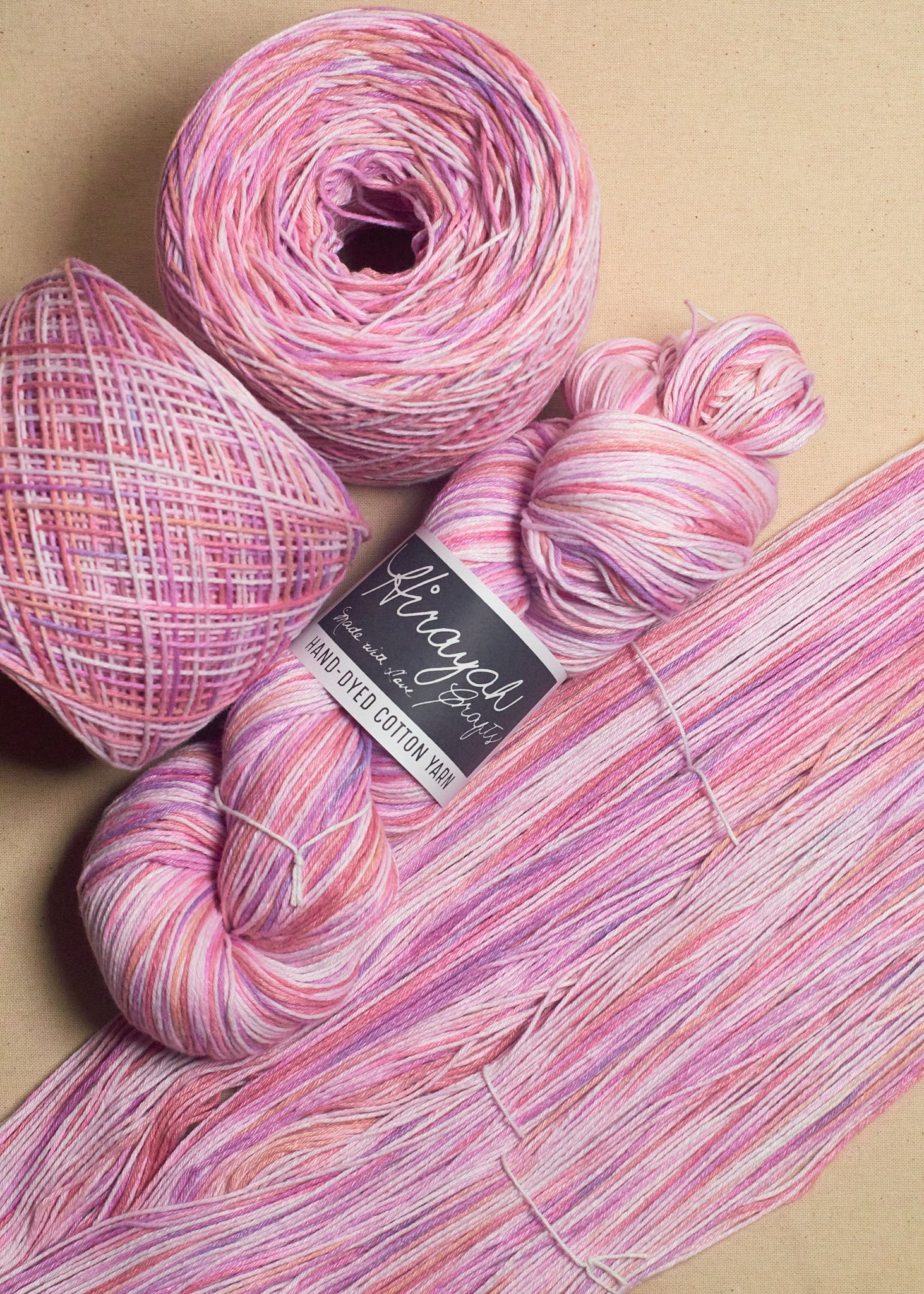 Light worsted weight/ 8ply hand-dyed cotton yarn.