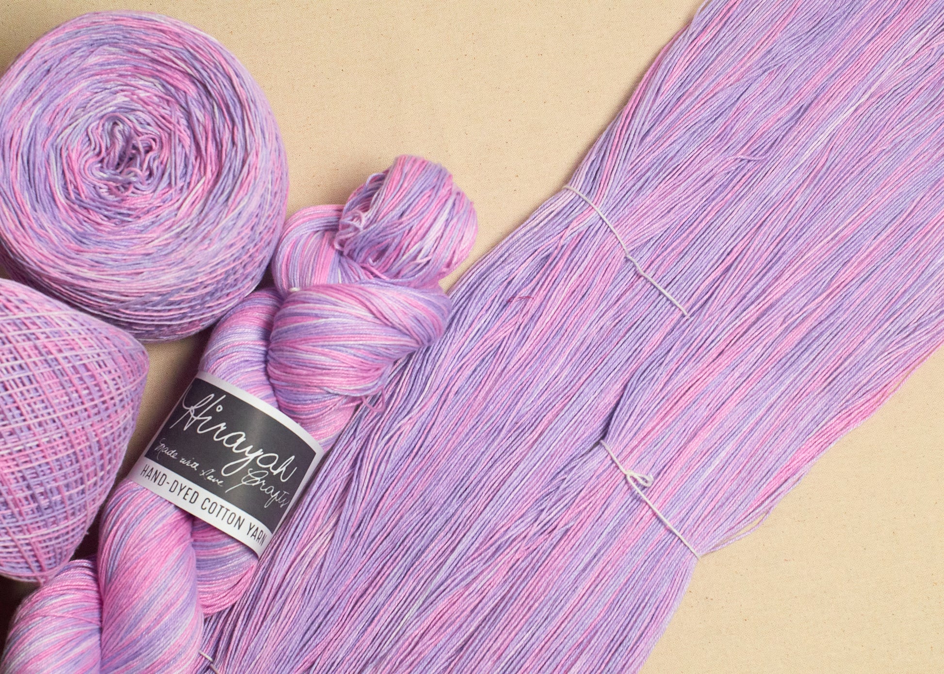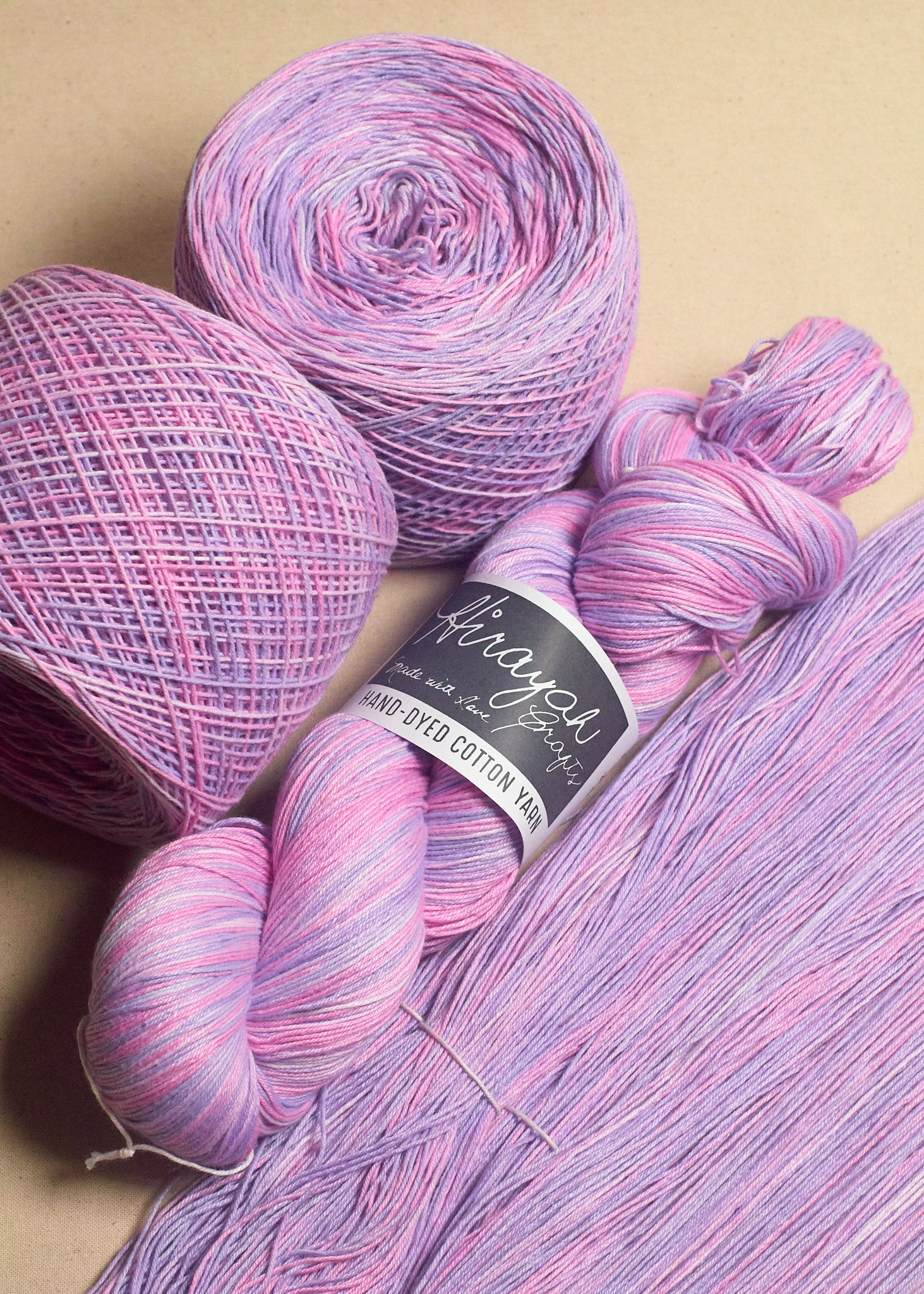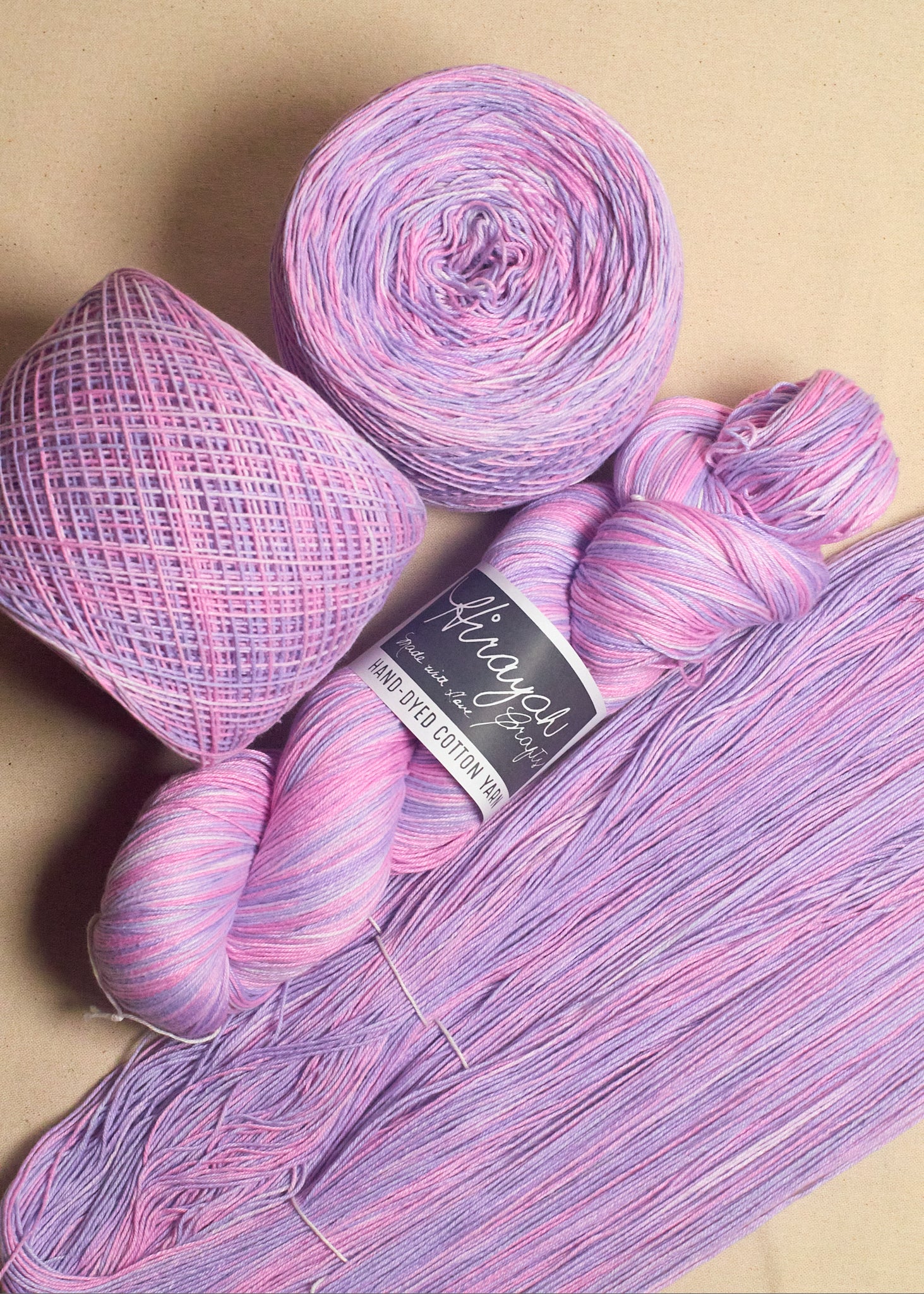 Light worsted weight/ 8ply hand-dyed cotton yarn.