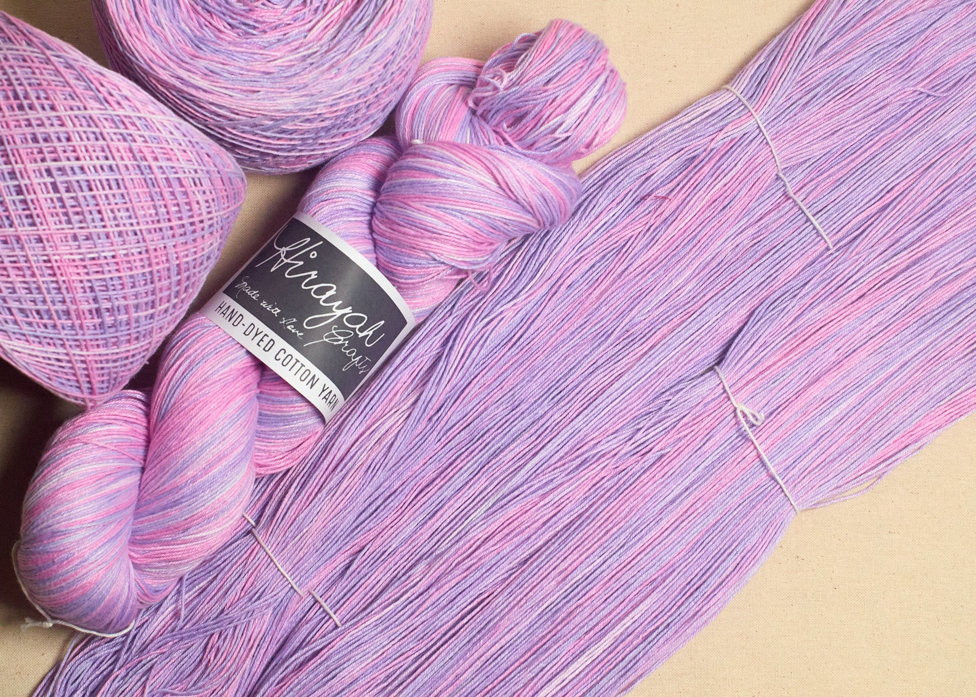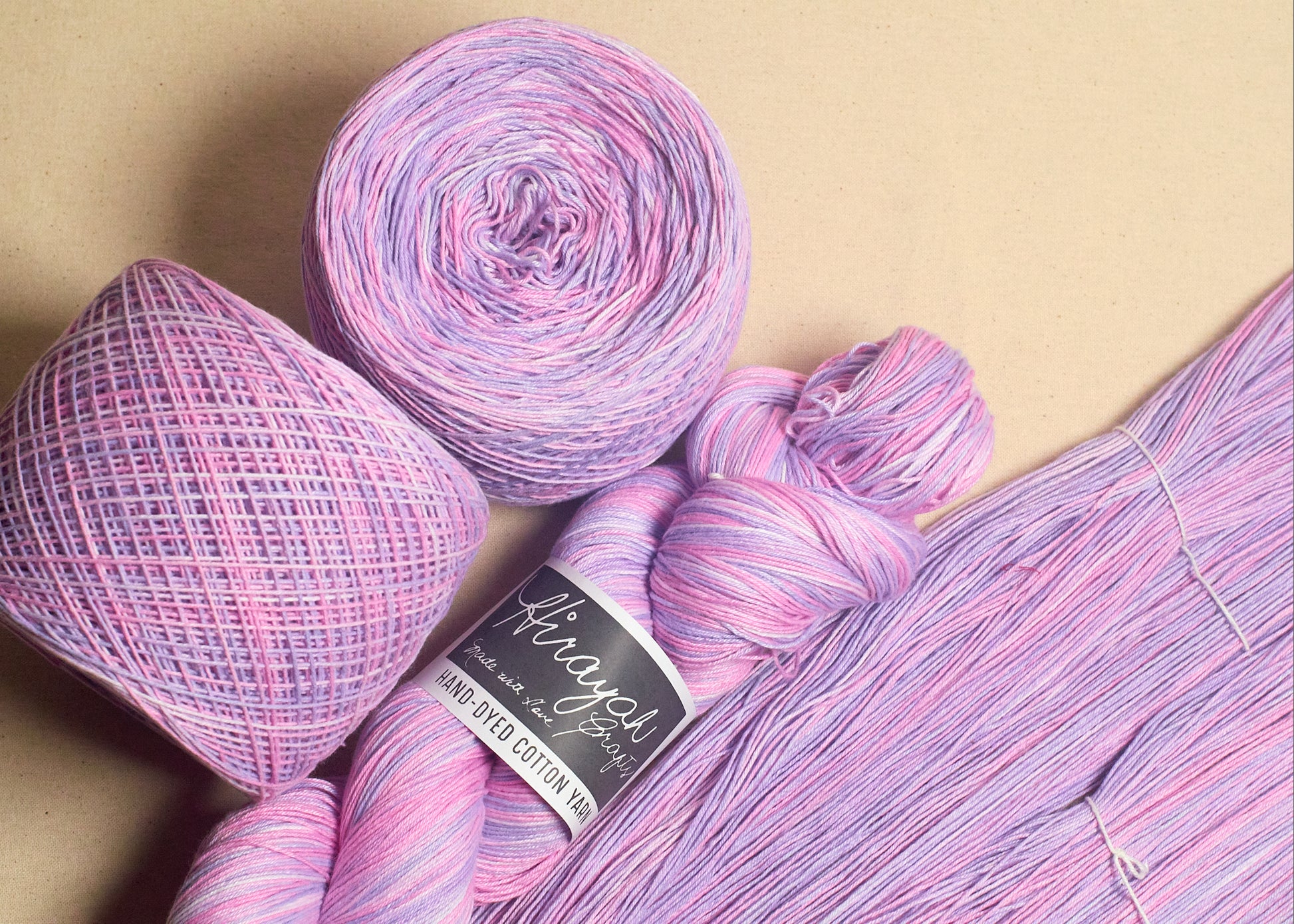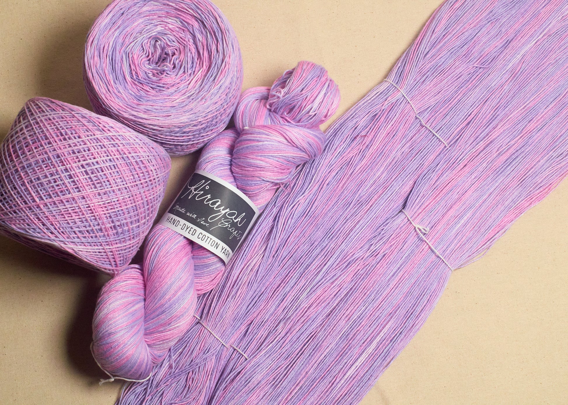 Light worsted weight/ 8ply hand-dyed cotton yarn.