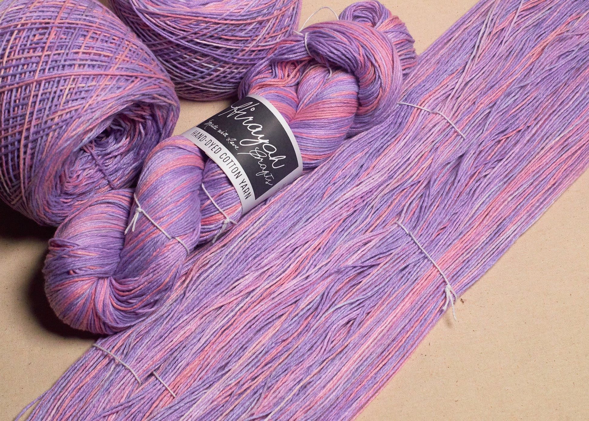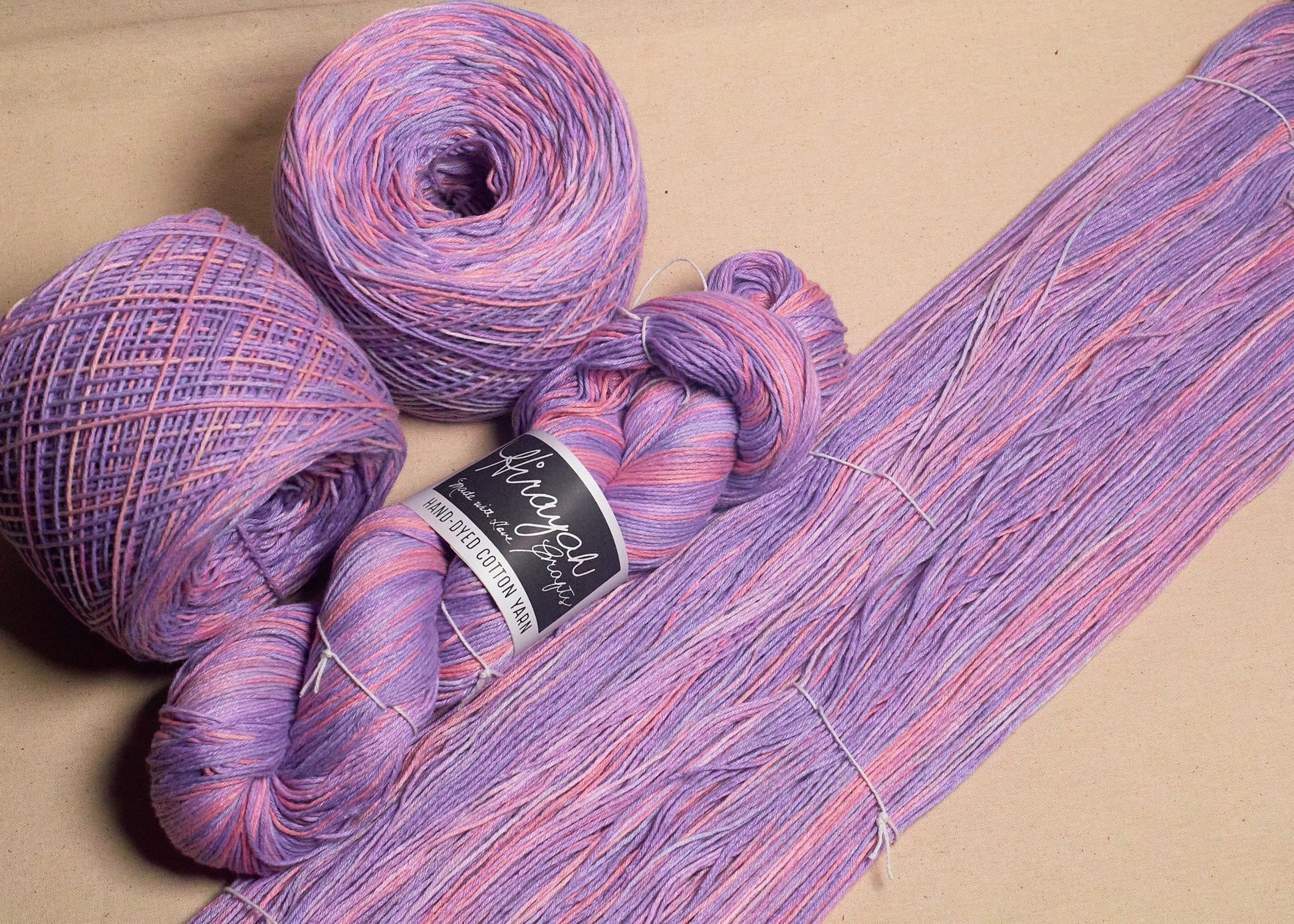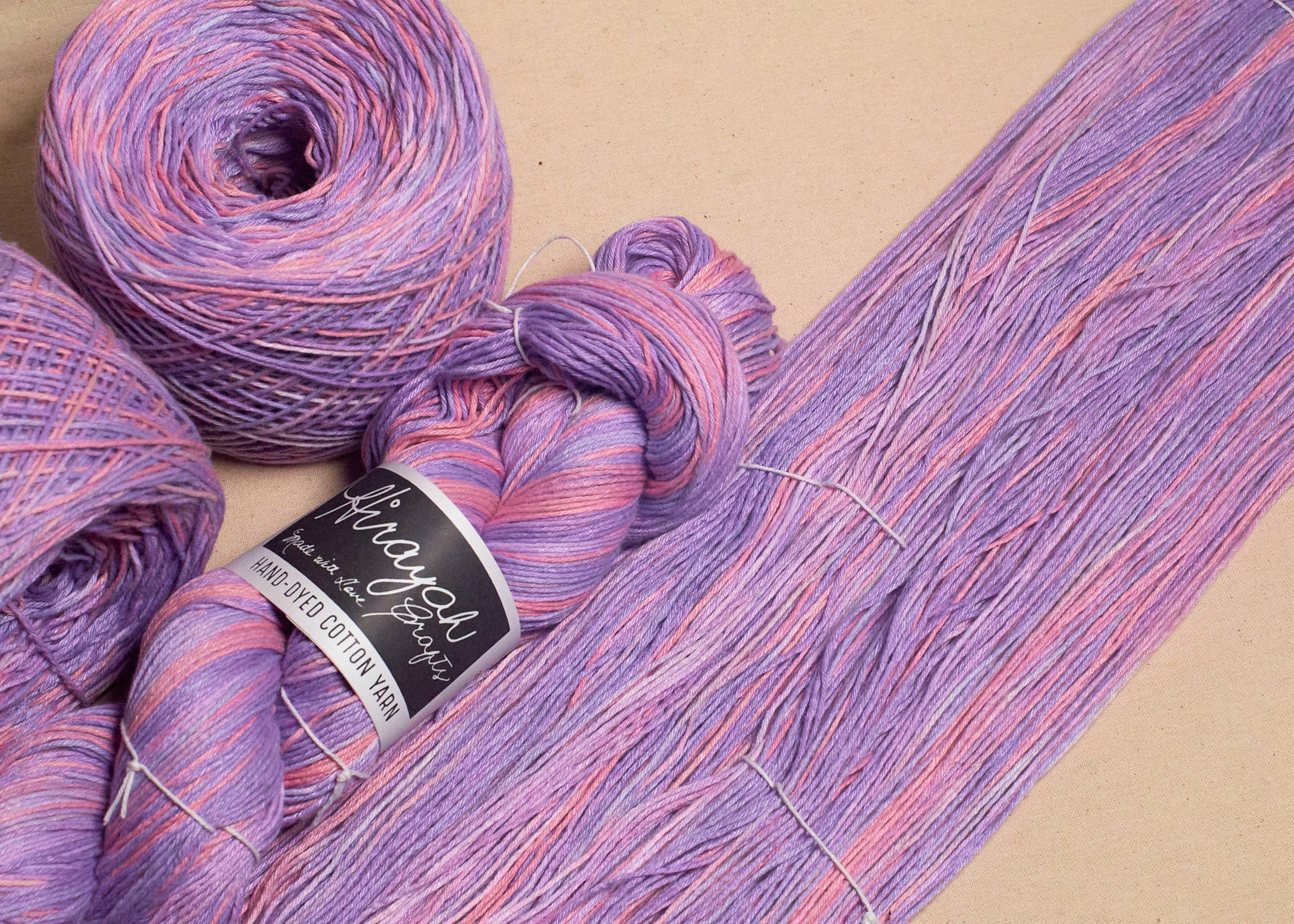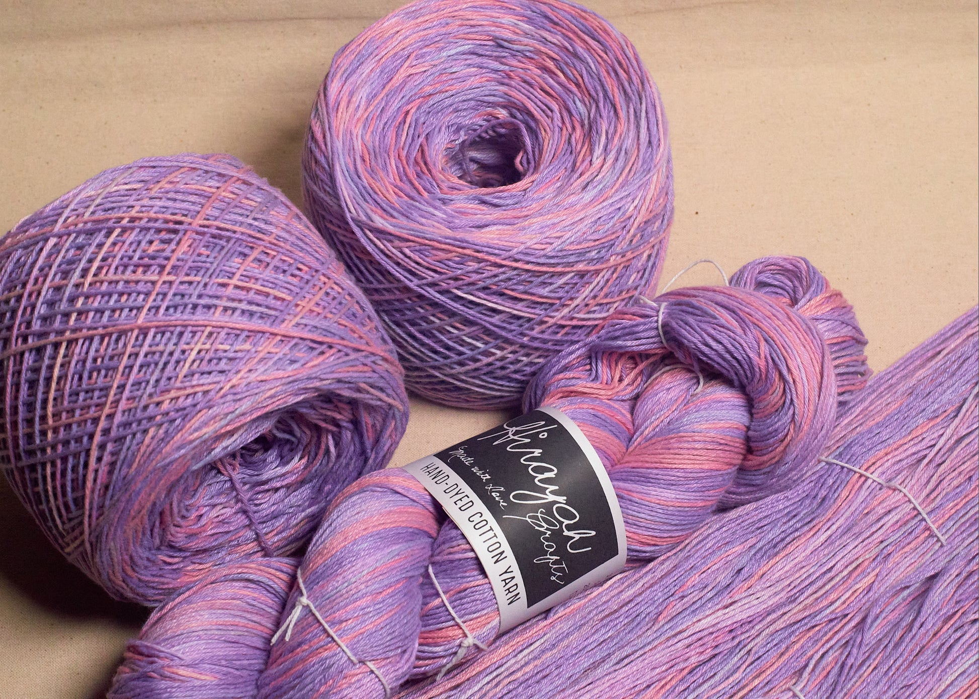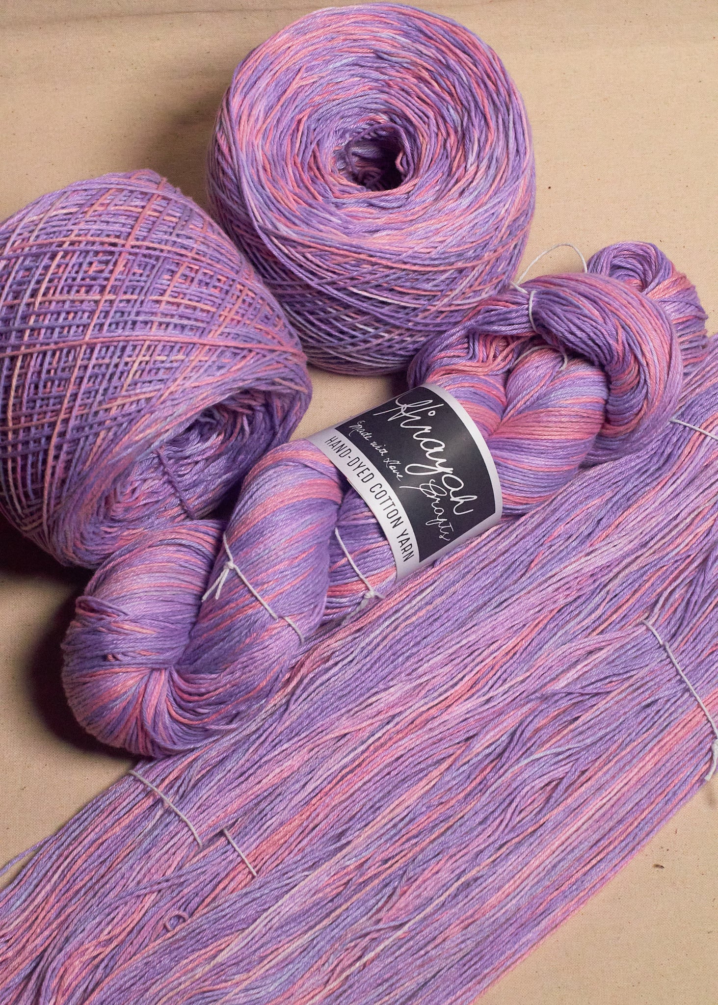 Light worsted weight/ 8ply hand-dyed cotton yarn.