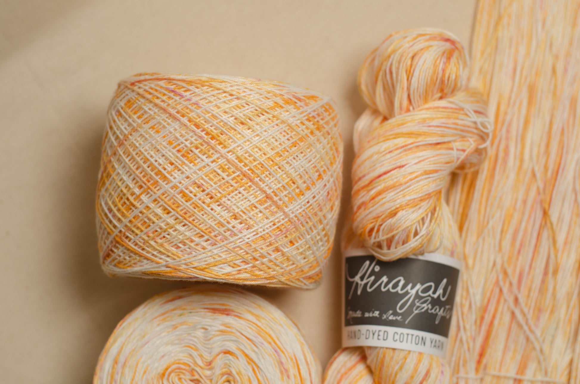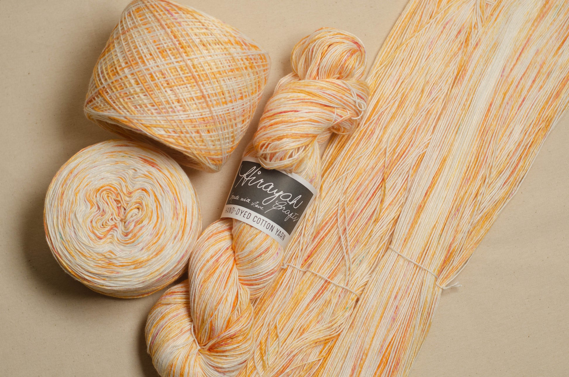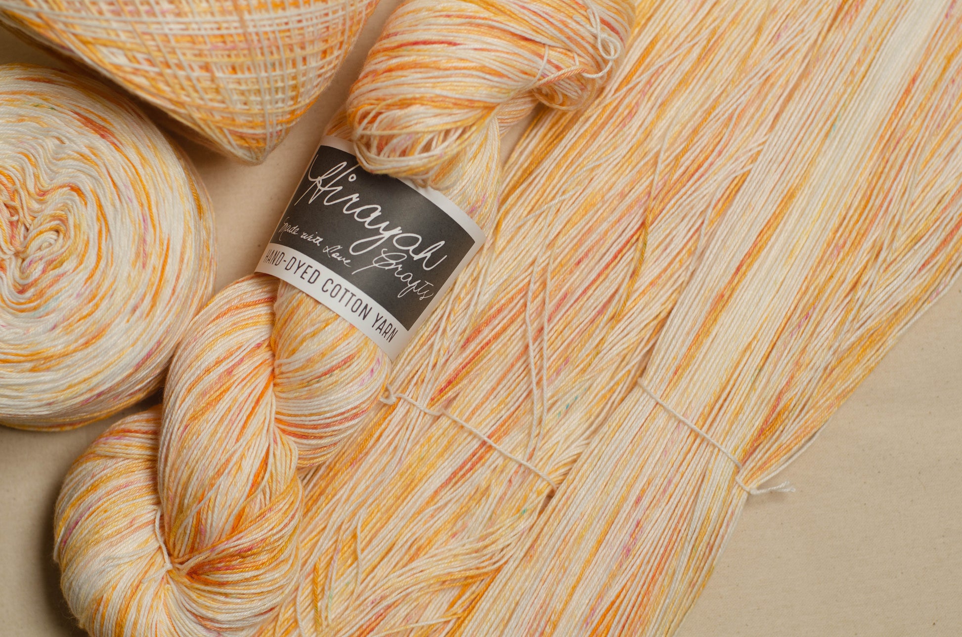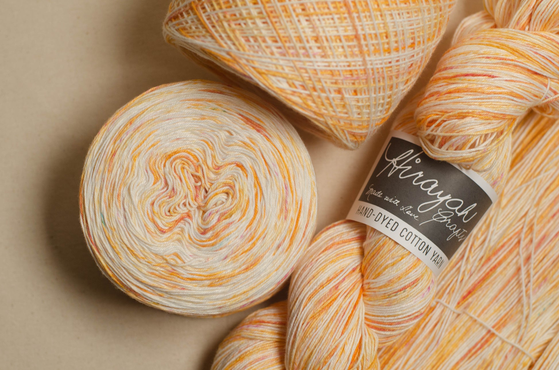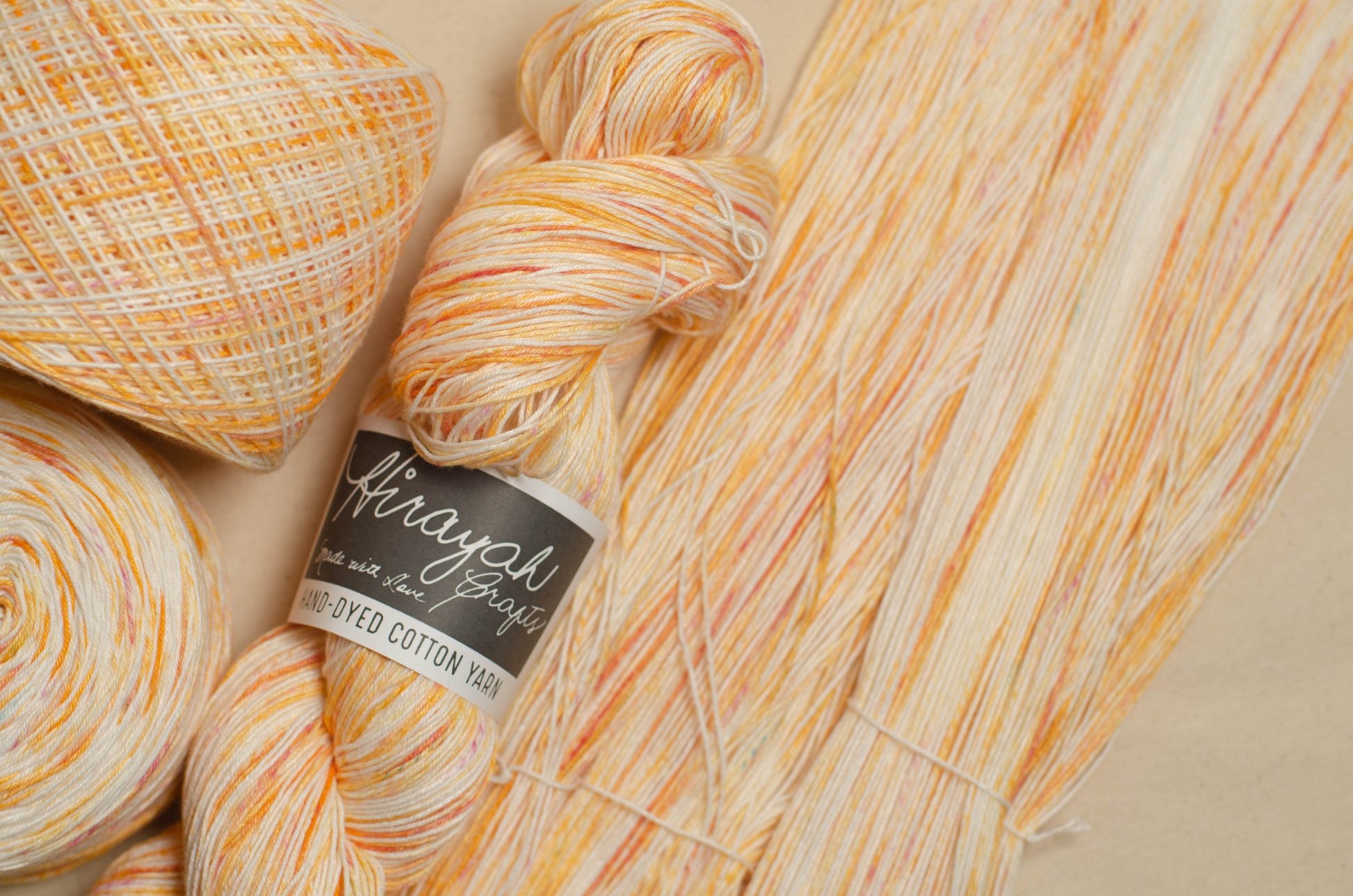 Light worsted weight/ 8ply hand-dyed cotton yarn.