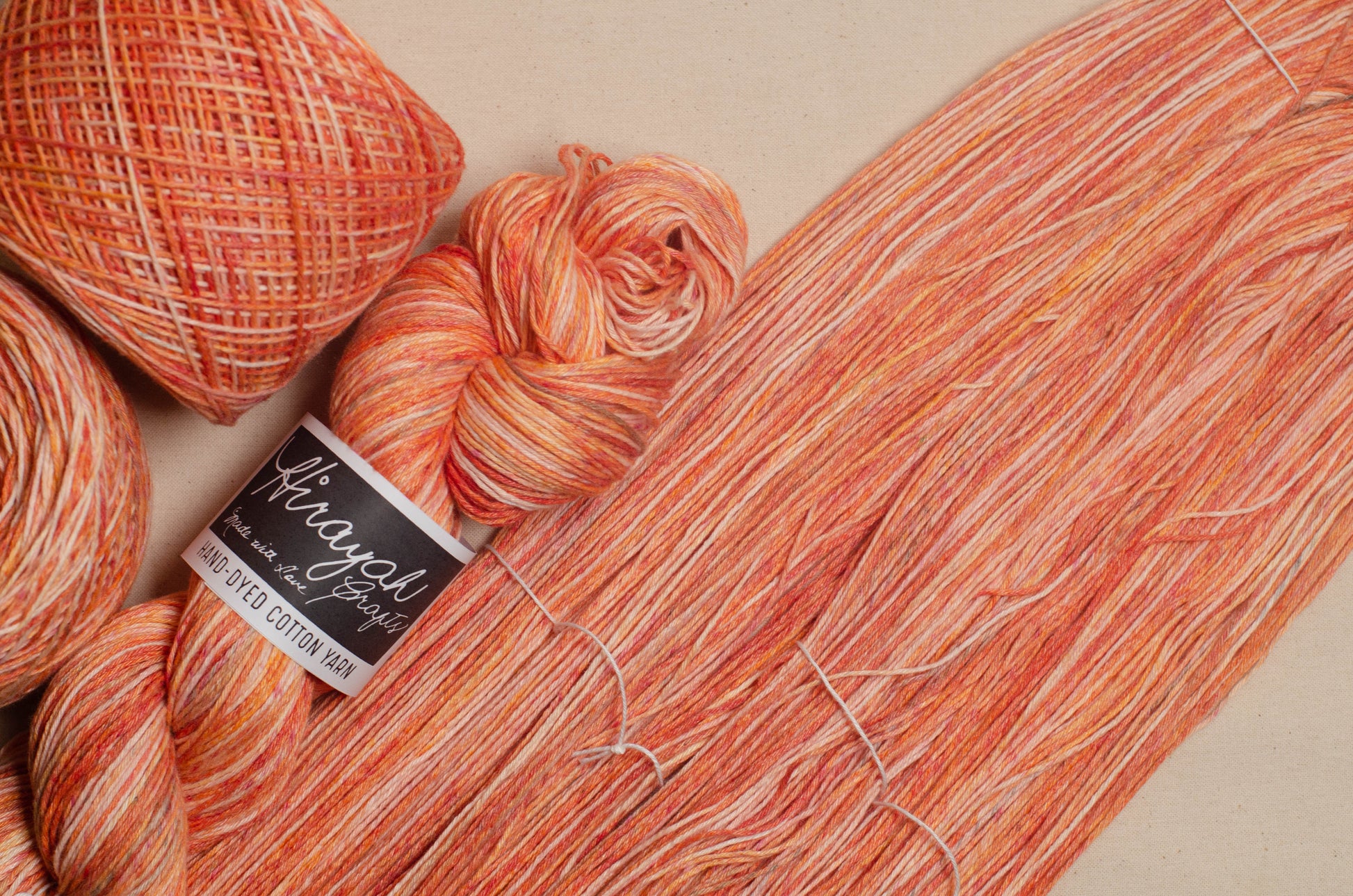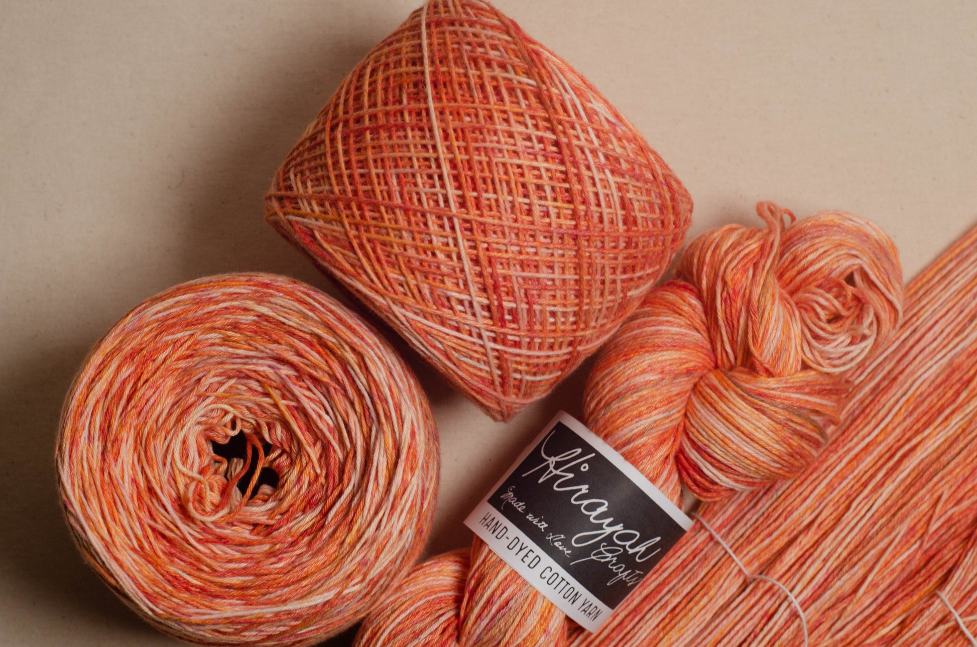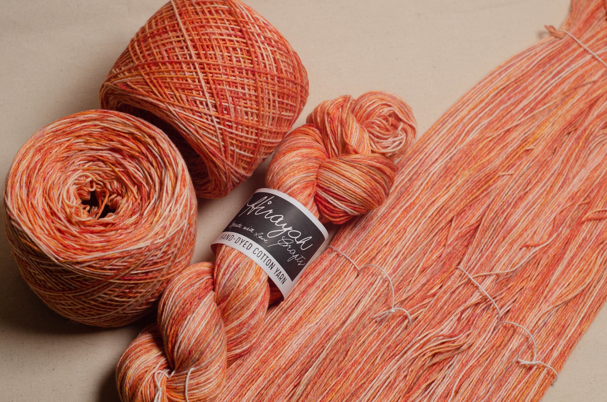 Light worsted weight/ 8ply hand-dyed cotton yarn.