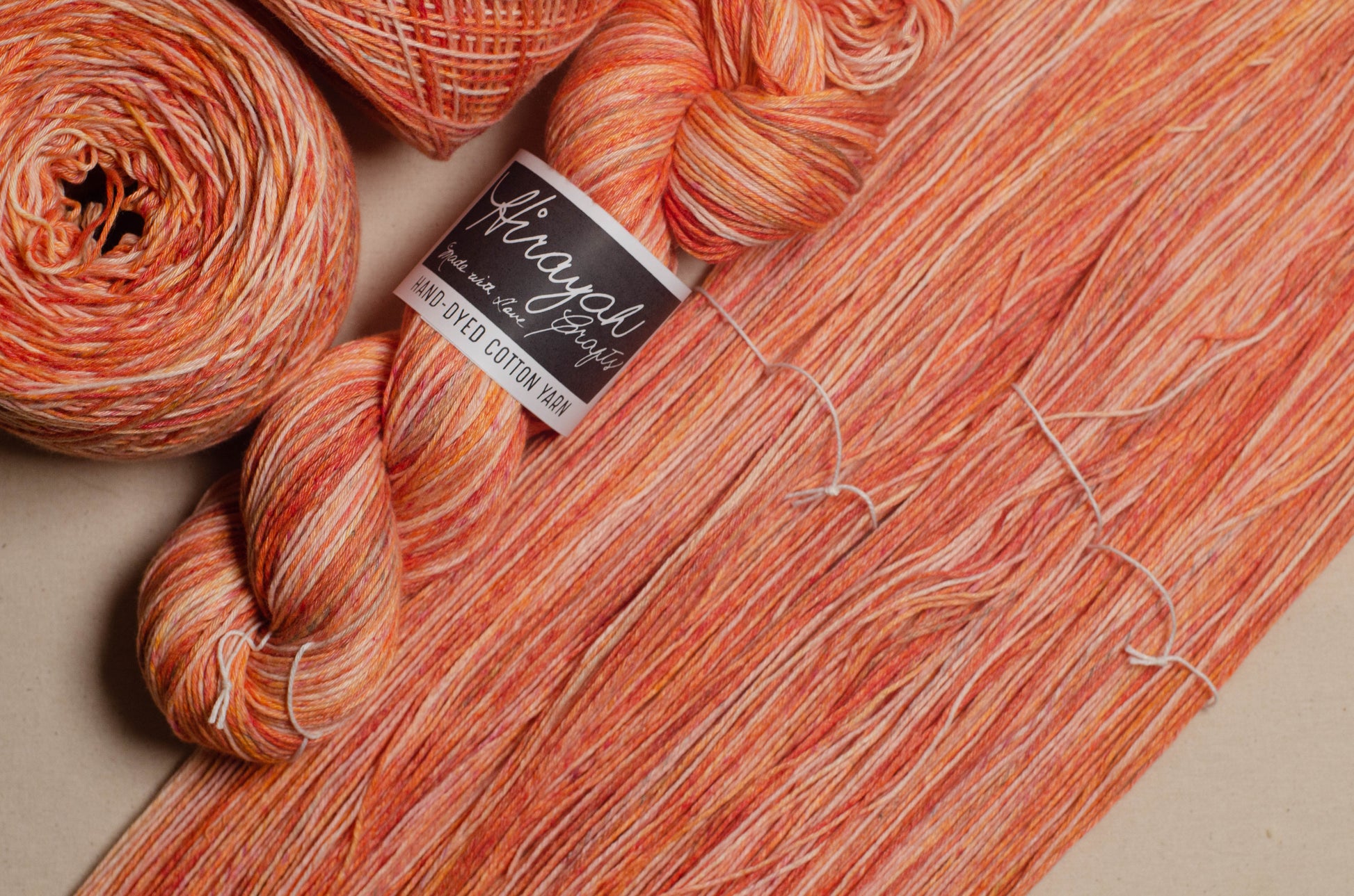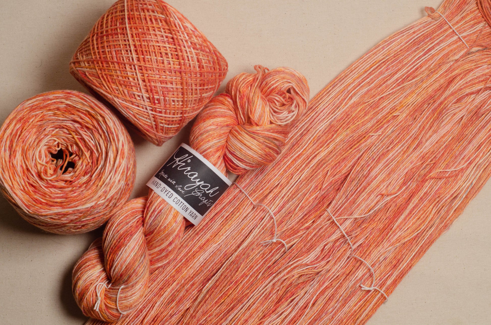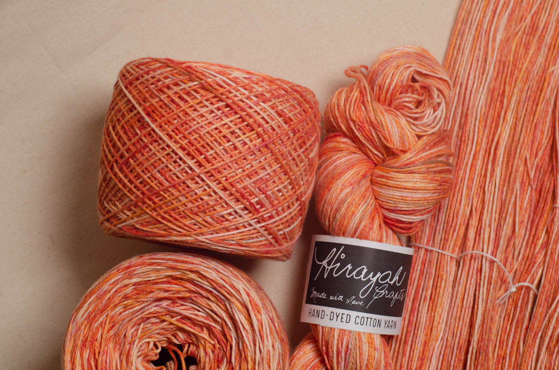 Light worsted weight/ 8ply hand-dyed cotton yarn.