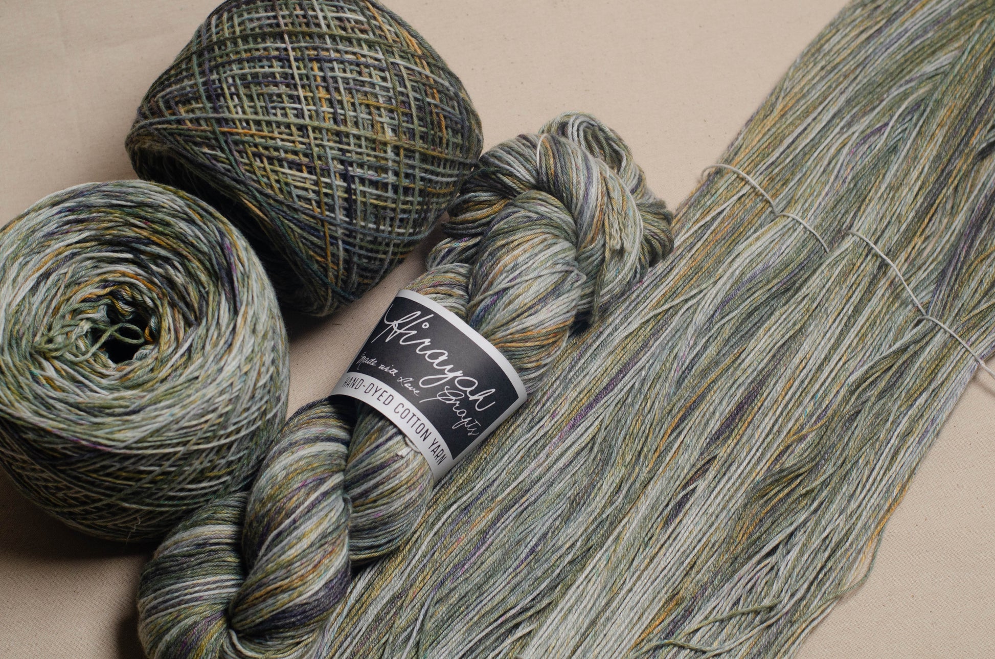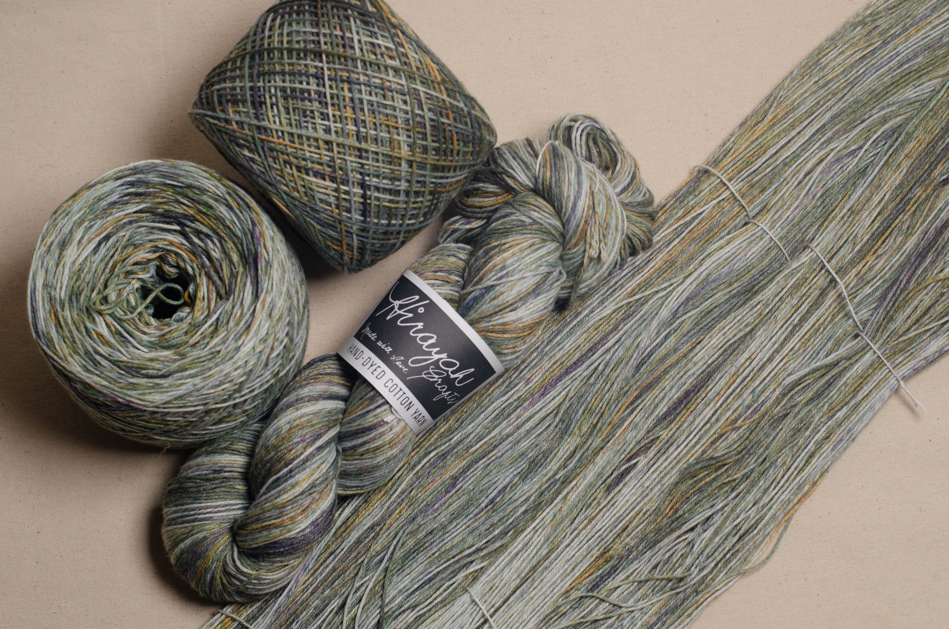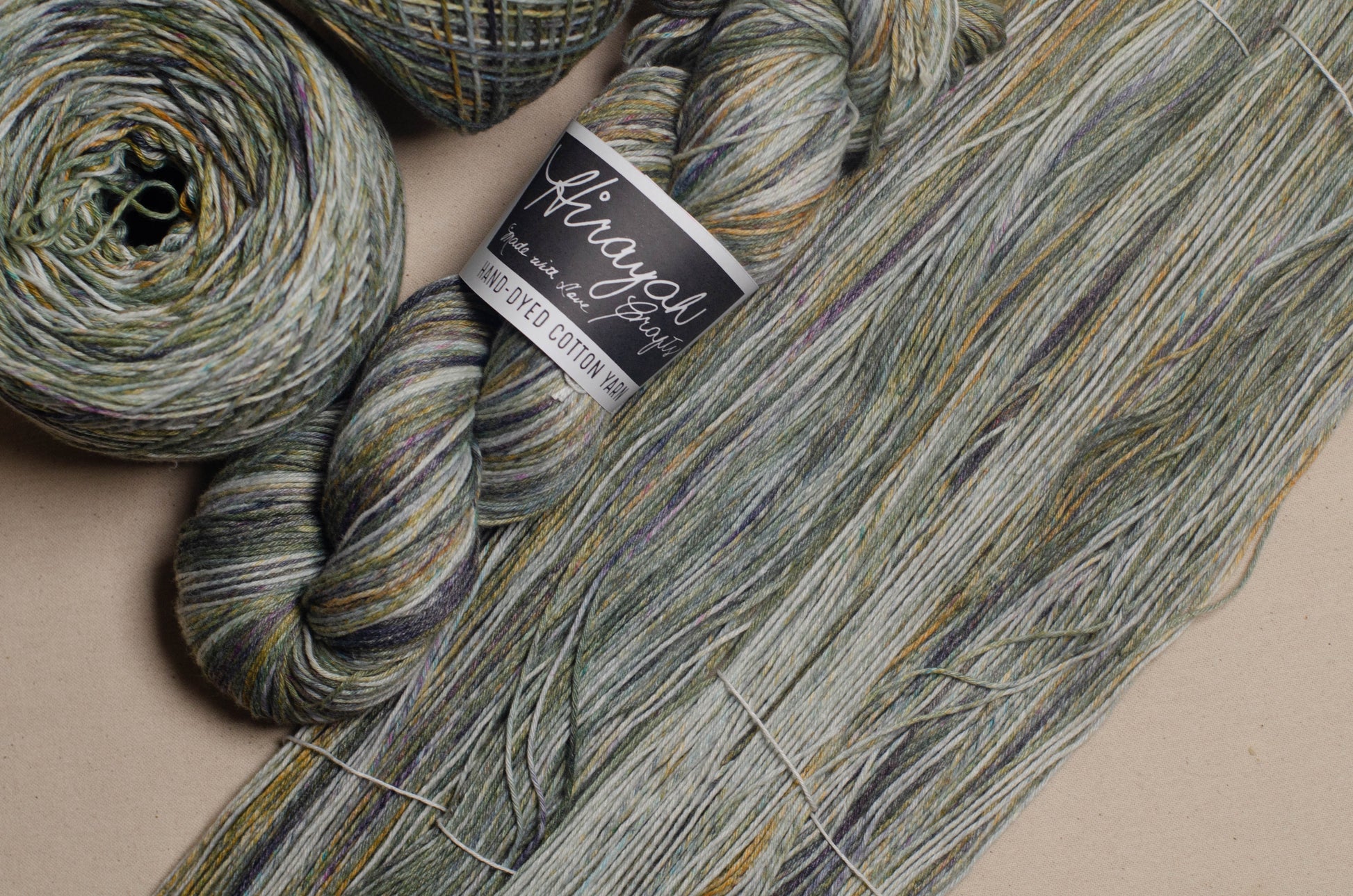 Light worsted weight/ 8ply hand-dyed cotton yarn.