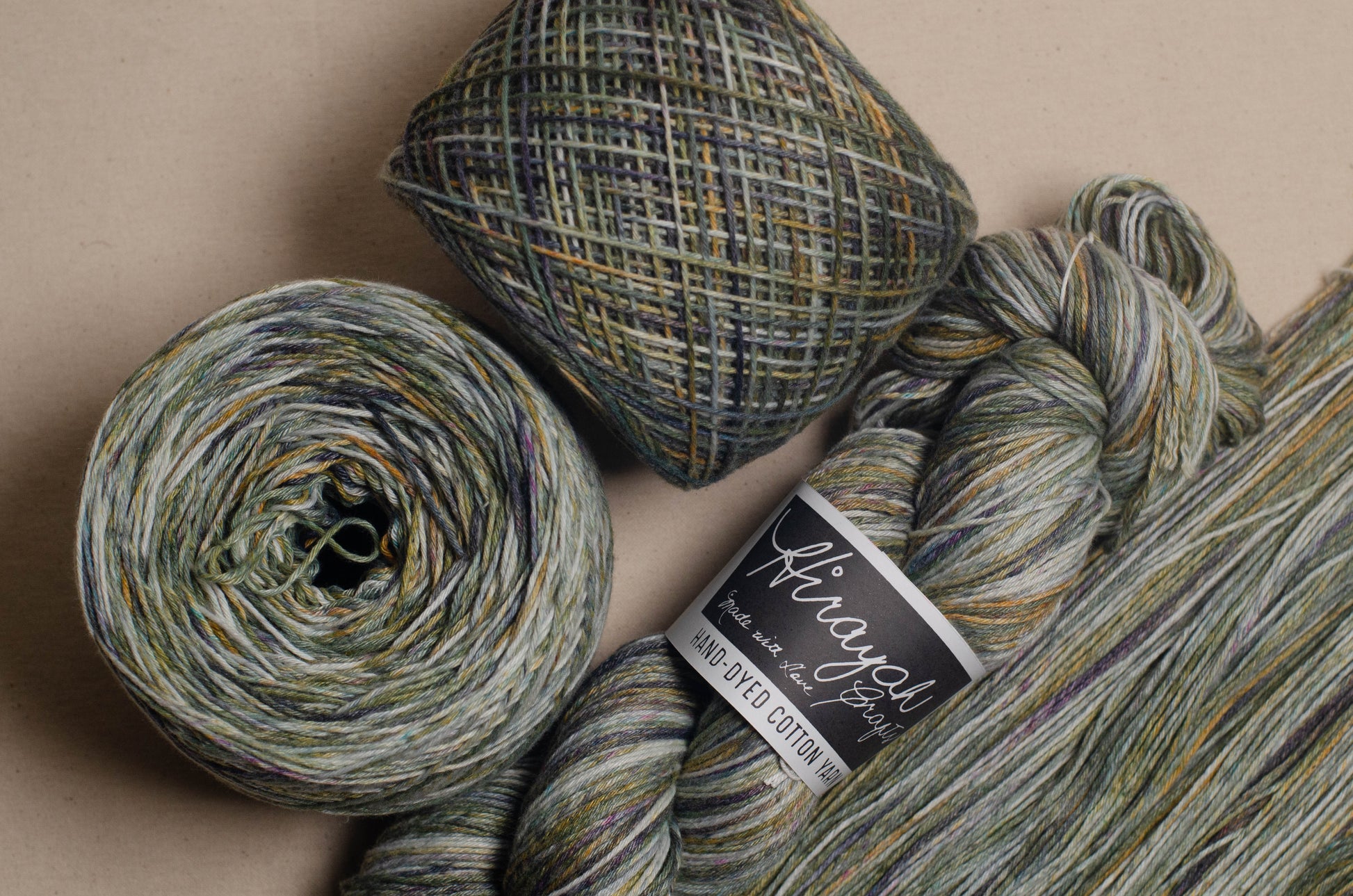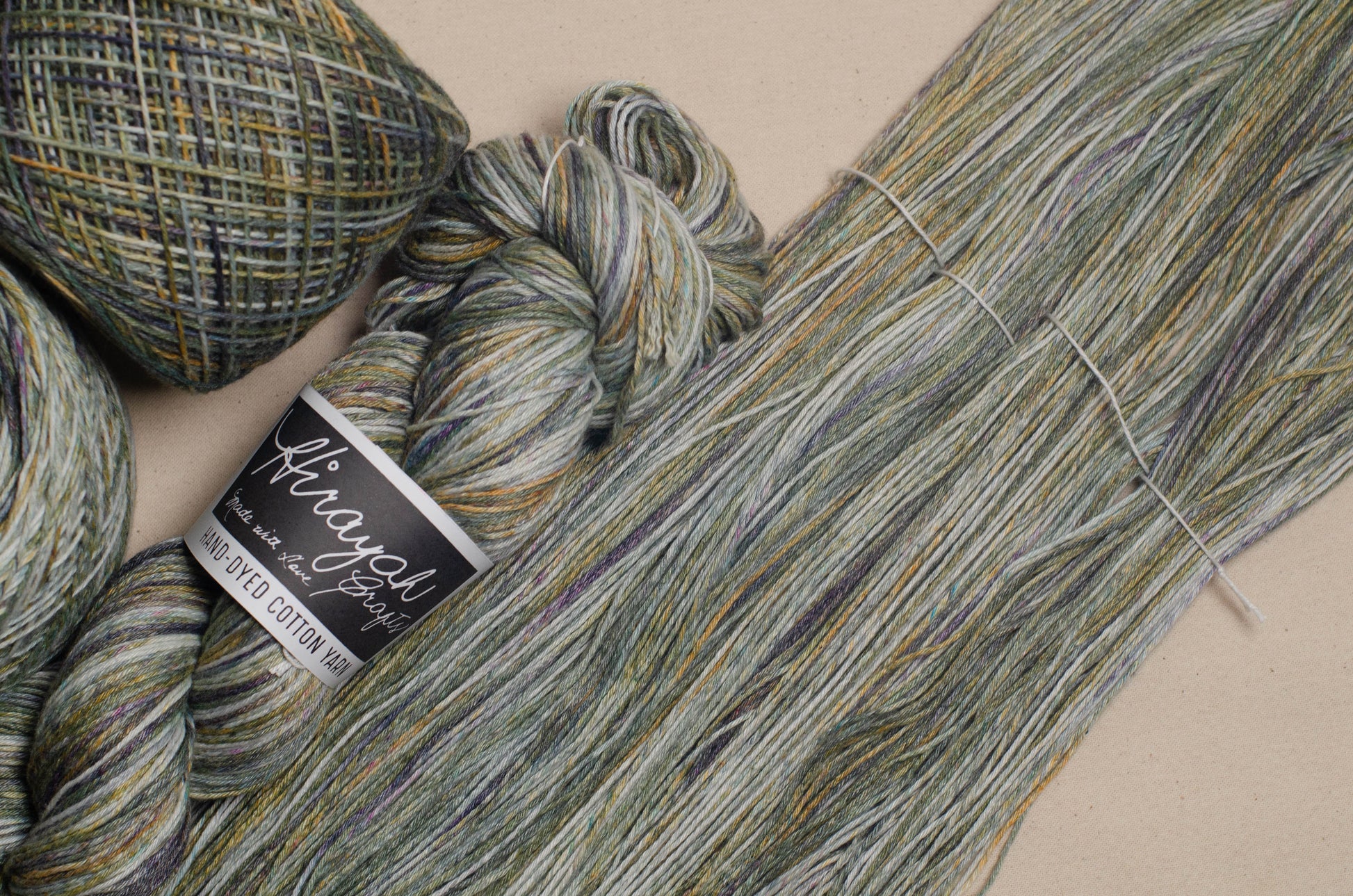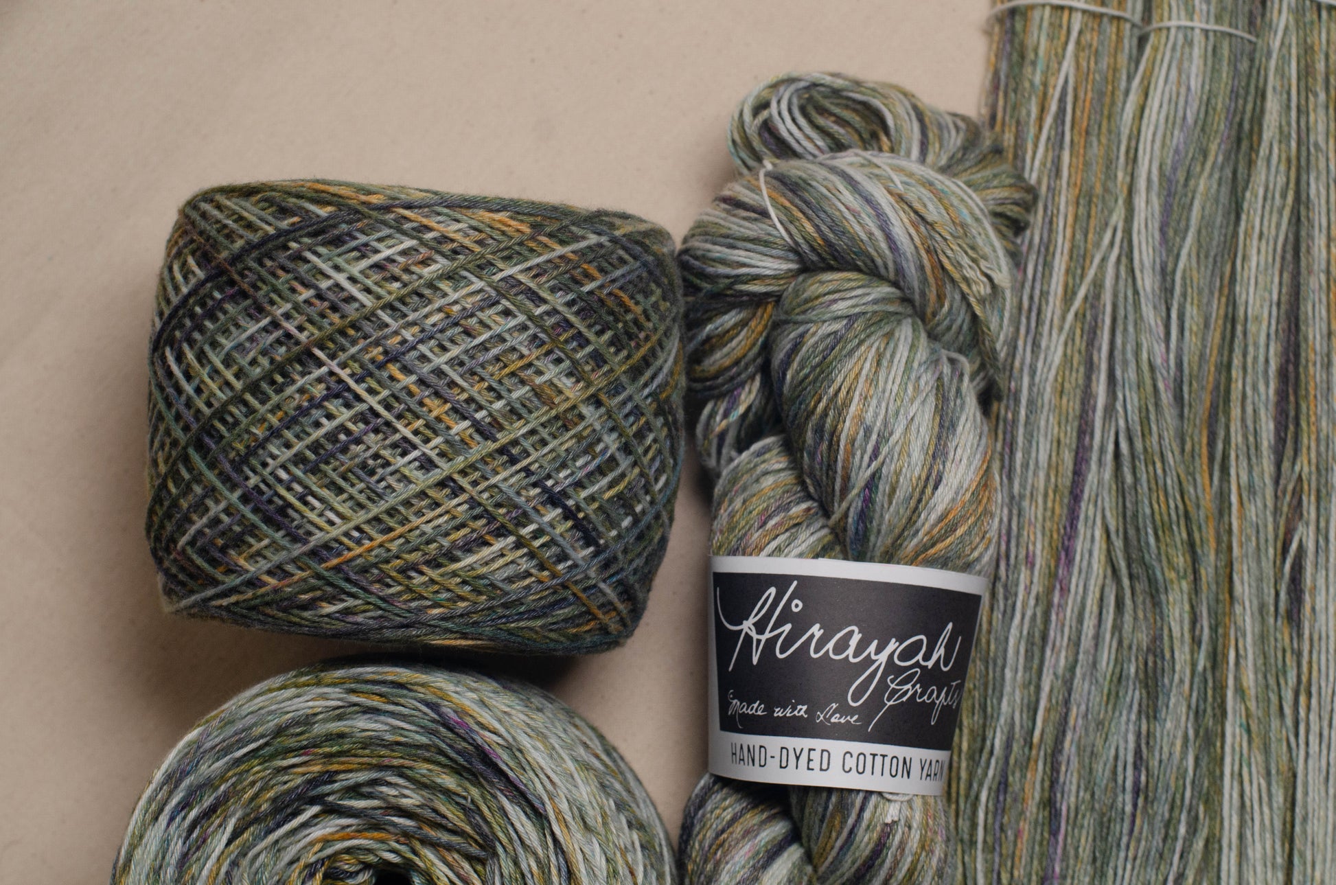 Light worsted weight/ 8ply hand-dyed cotton yarn.