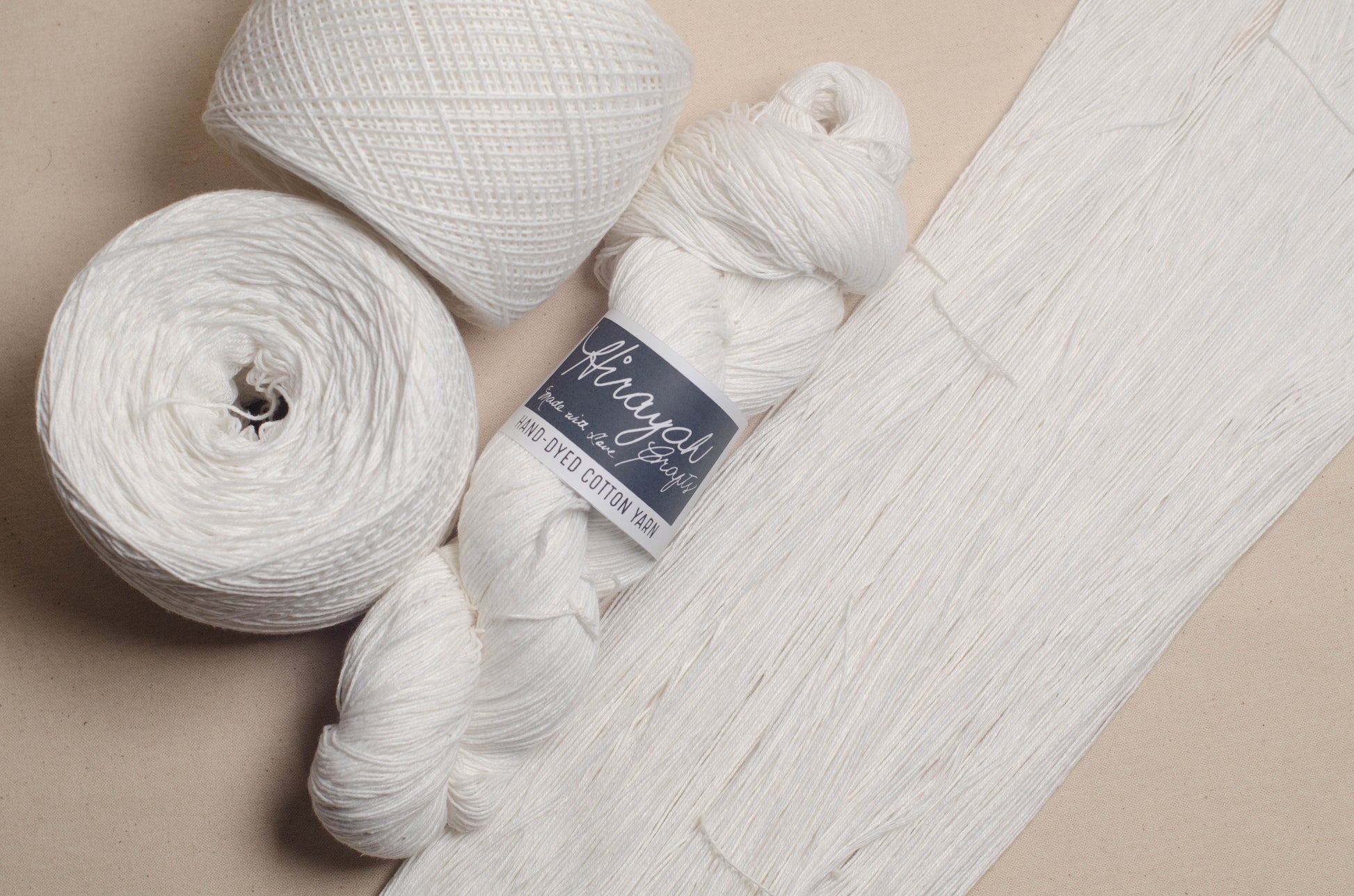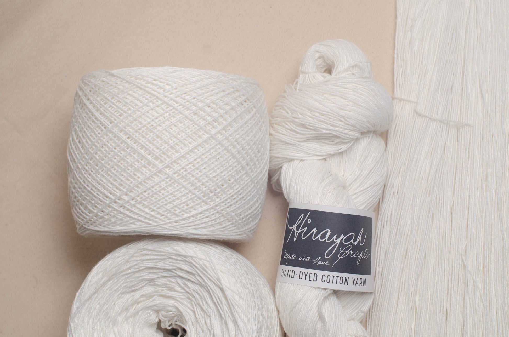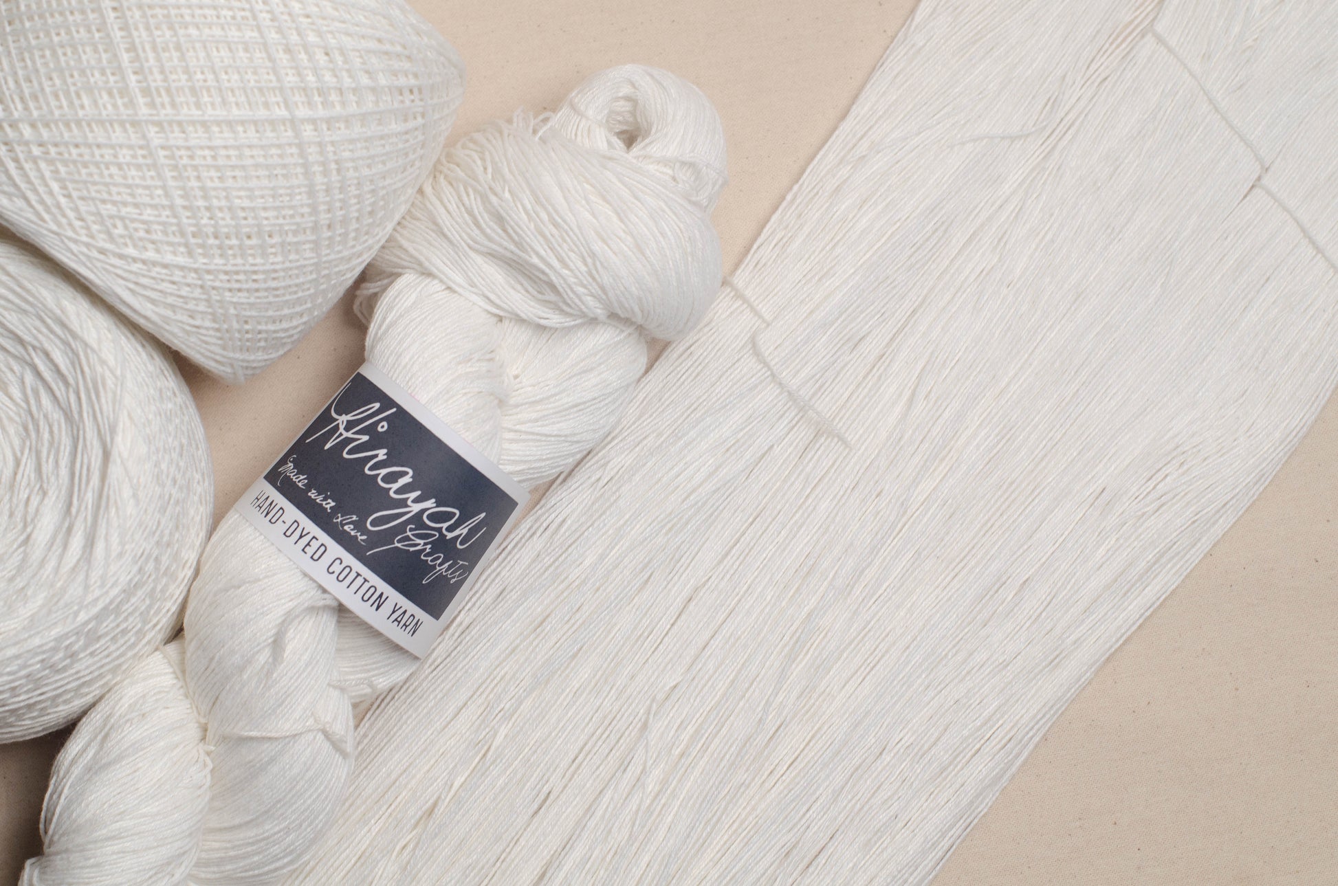 Light worsted weight/ 8ply hand-dyed cotton yarn.