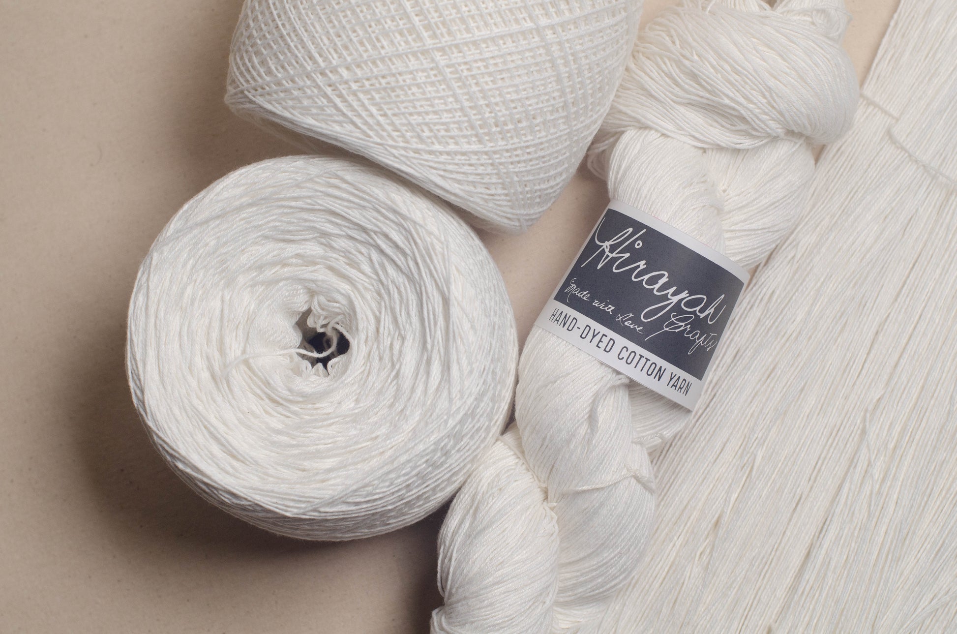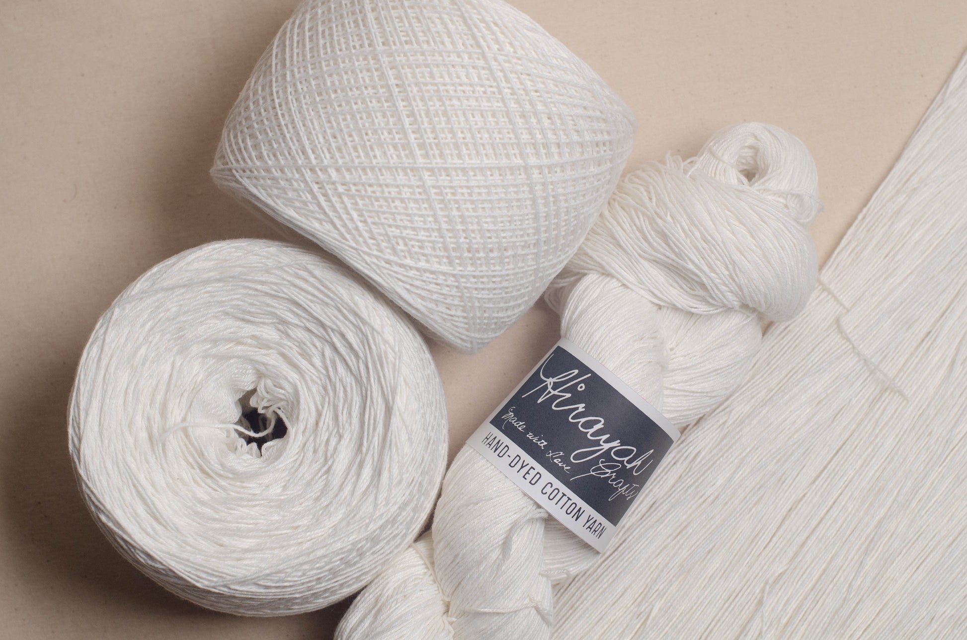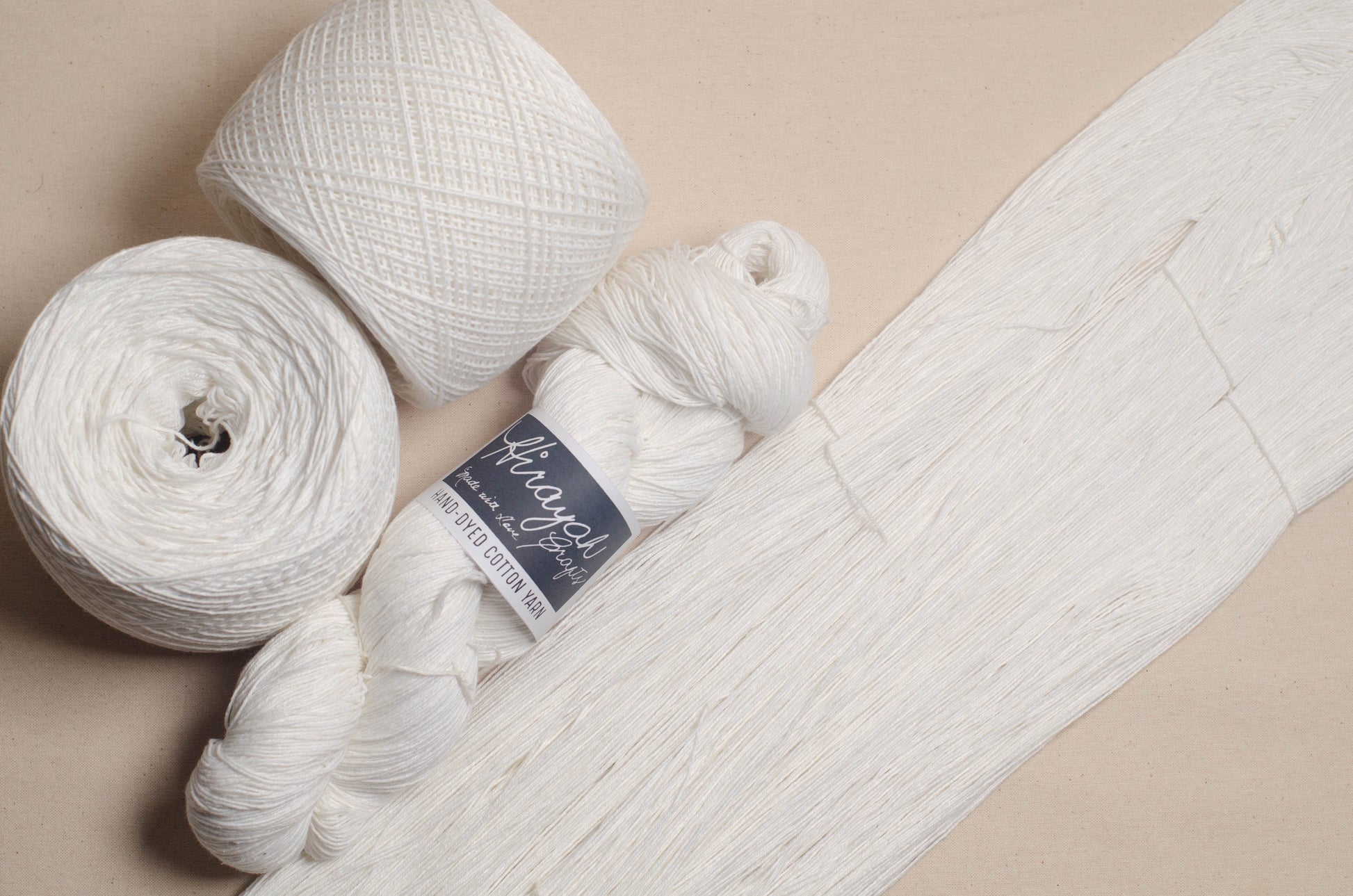 Light worsted weight/ 8ply hand-dyed cotton yarn.