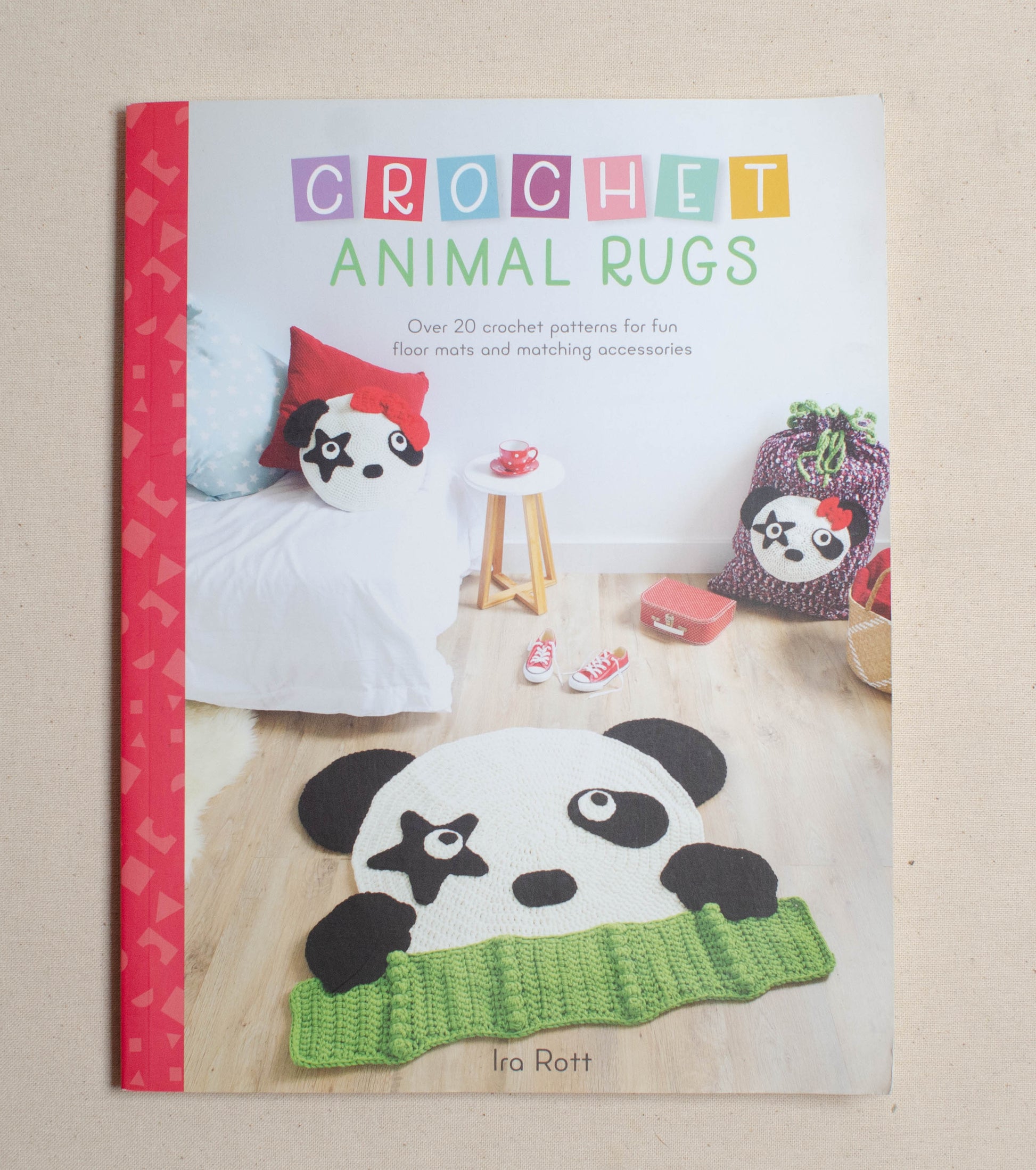 Crochet decor your kids will be begging for! Bring their bedroom decor to life with this collection of seven sensational animal rug designs, by popular crochet designer Ira Rott. You will love making these unique and quirky designs that kids will simply adore. Choose from an amazing elephant, a sweet giraffe, a cuddly cat, a cheeky monkey, a sneaky crab, a friendly dinosaur and a snuggly bear, each with a coordinating pillow and accessory to crochet to continue the theme. With accessories ranging from security blankets to stool covers, bed book tidies, placemats and toy bags, this collection features over 20 animal-themed designs to crochet.