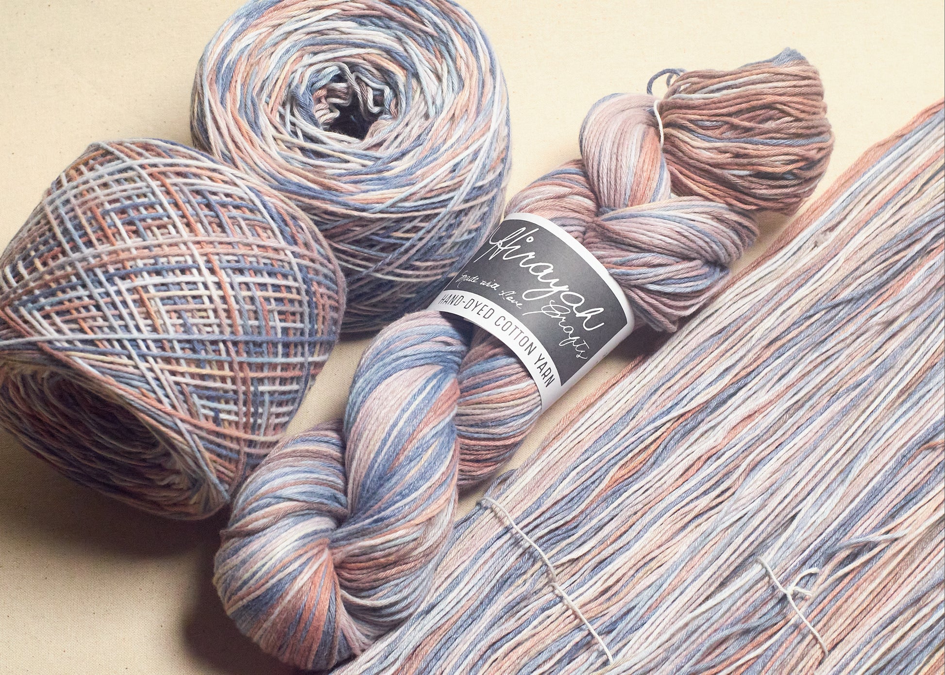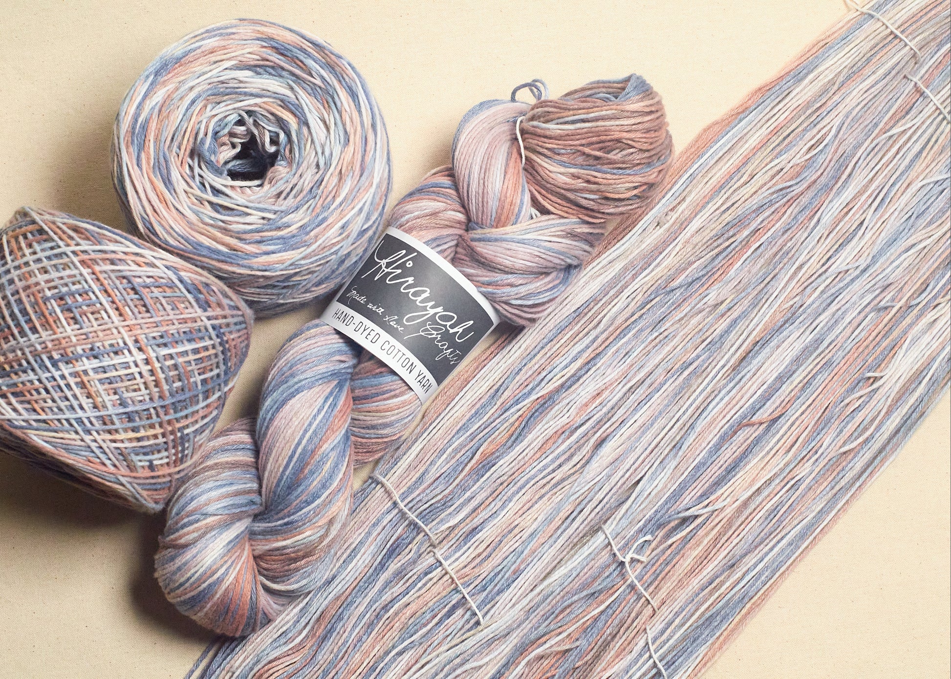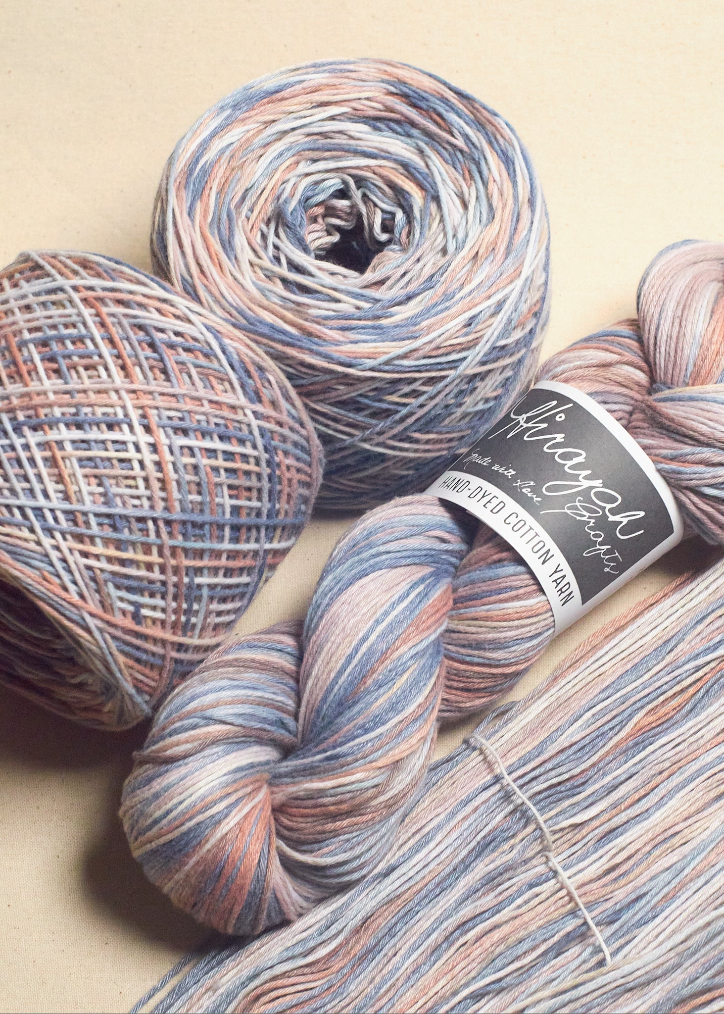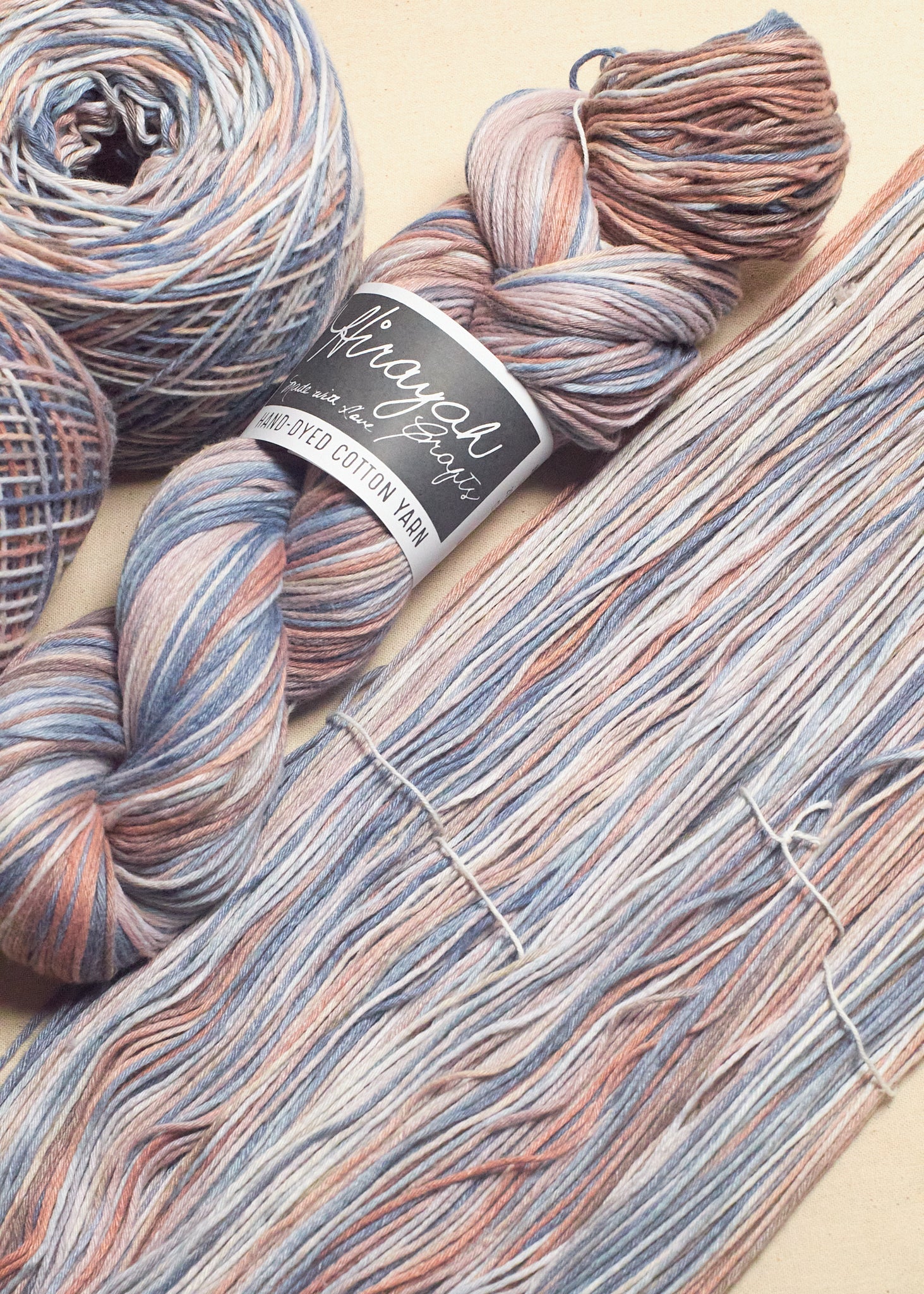 Light worsted weight/ 8ply hand-dyed cotton yarn.