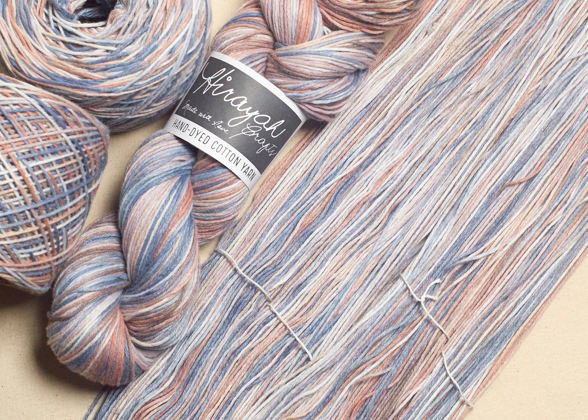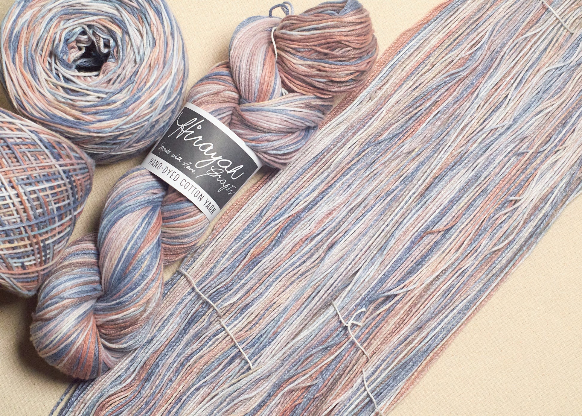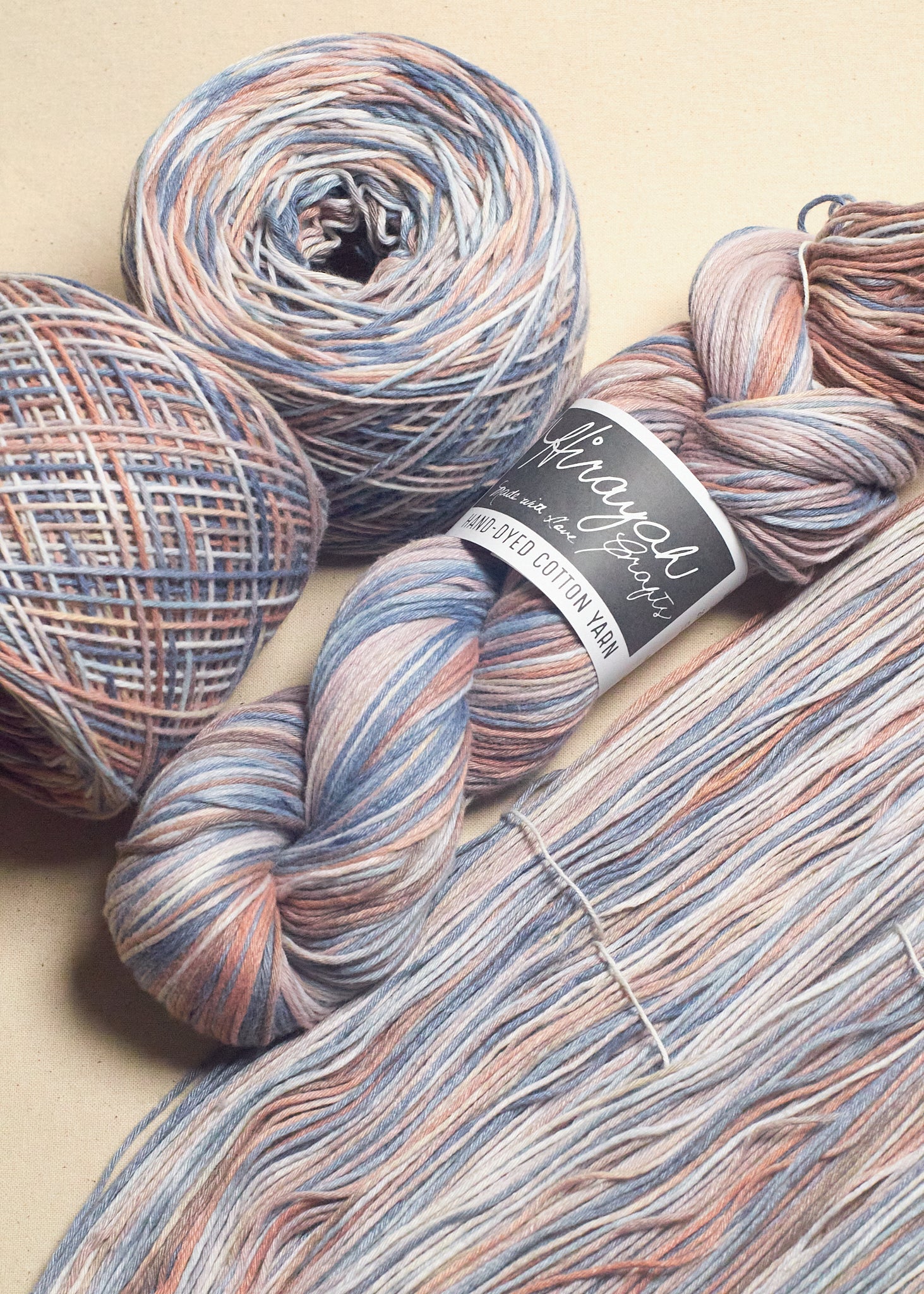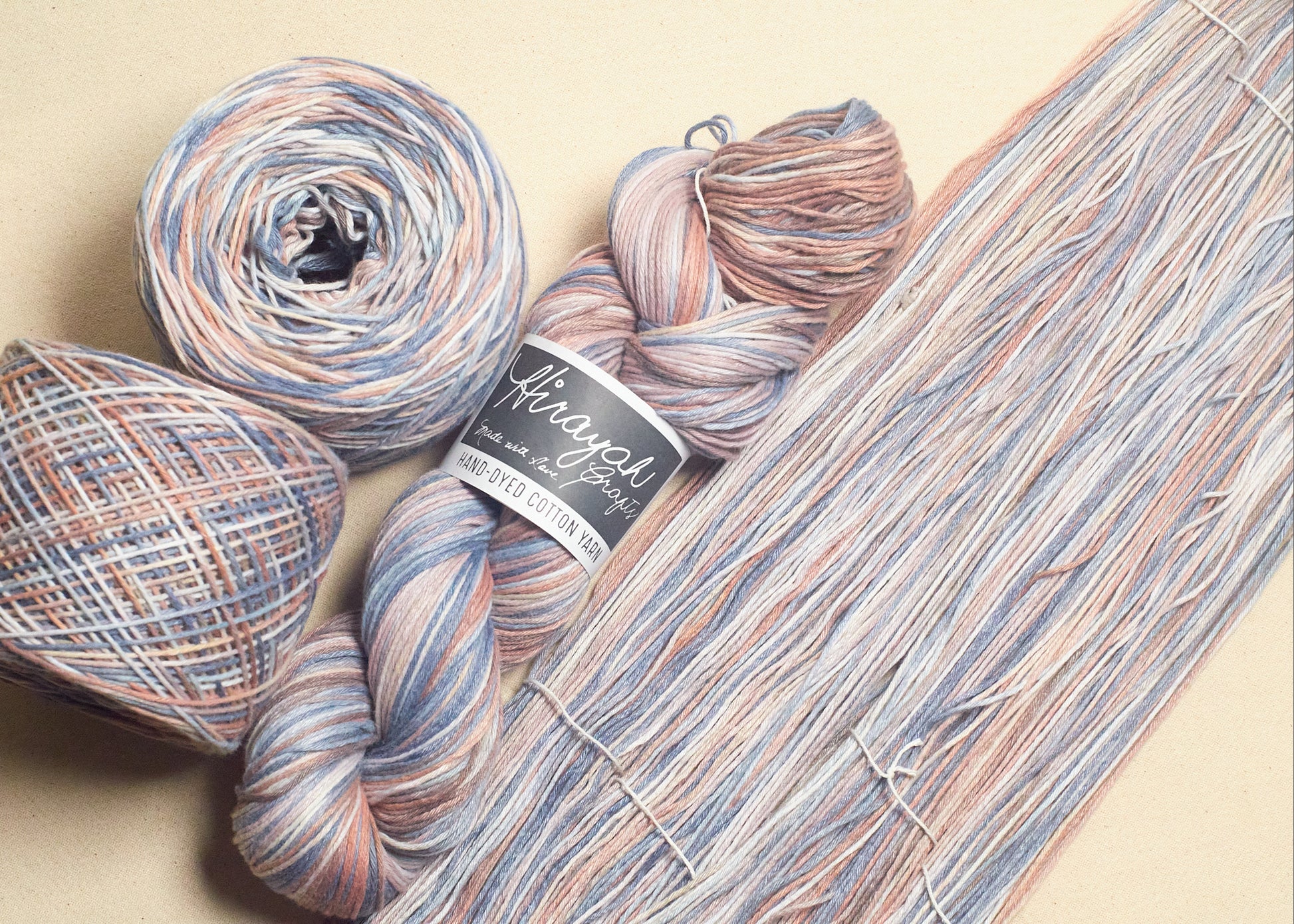Light worsted weight/ 8ply hand-dyed cotton yarn.