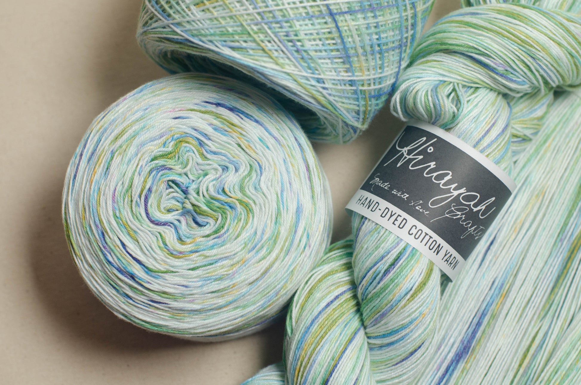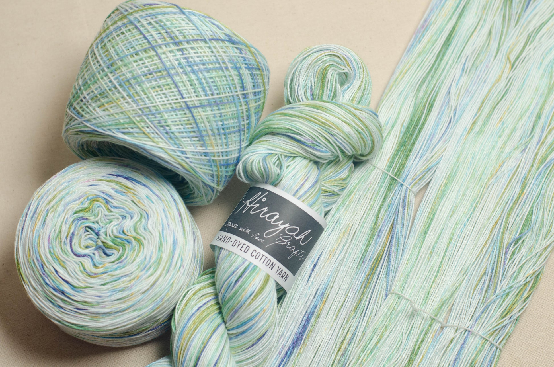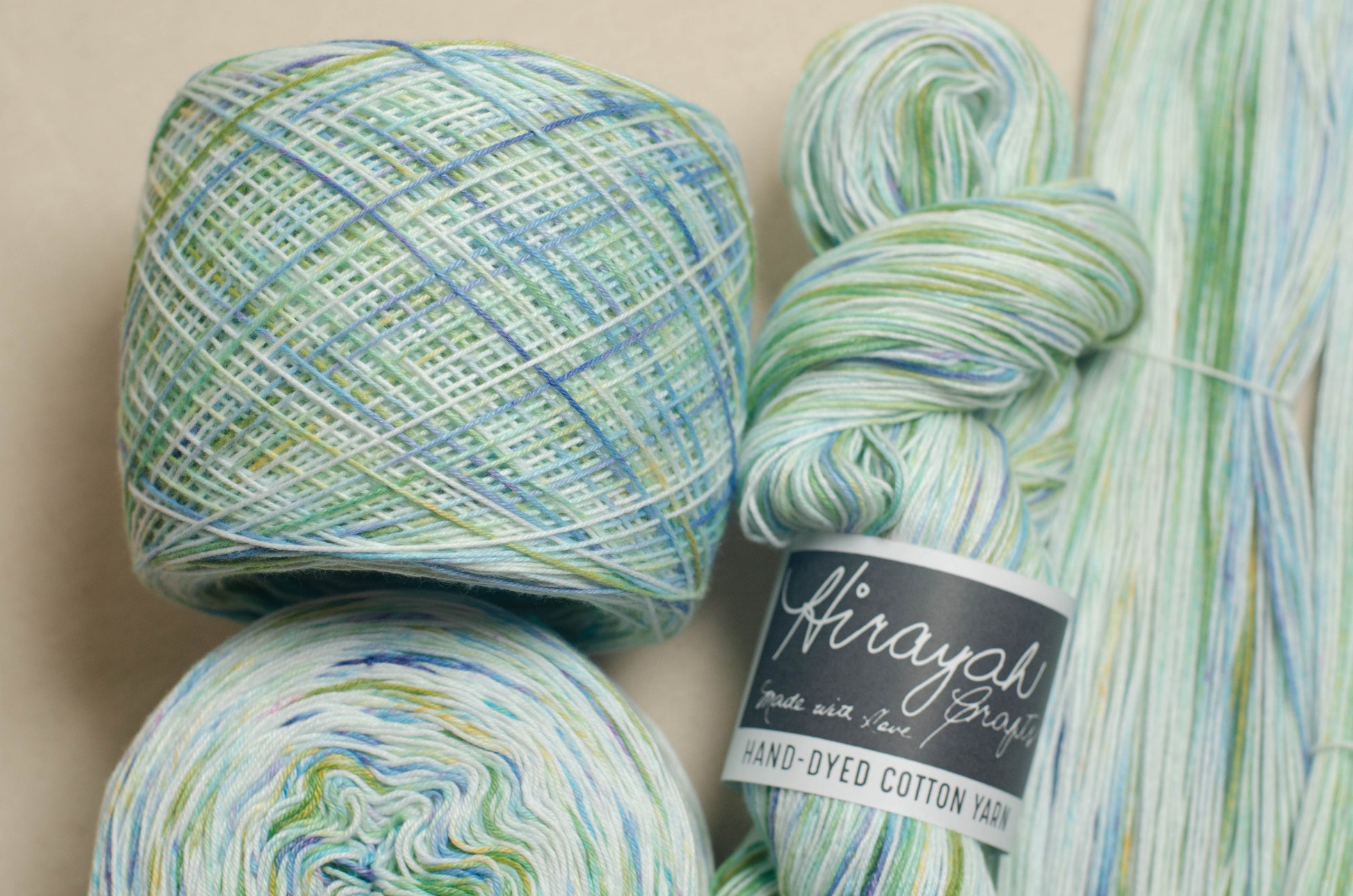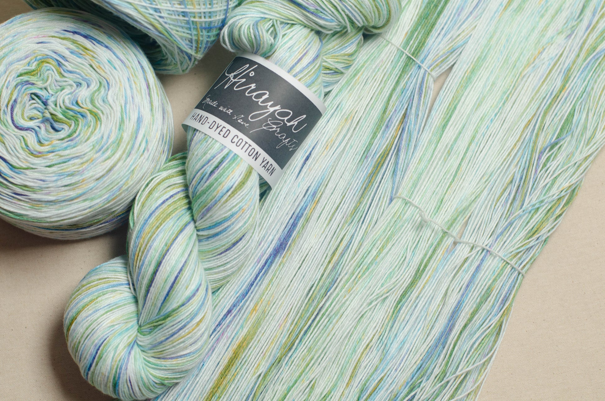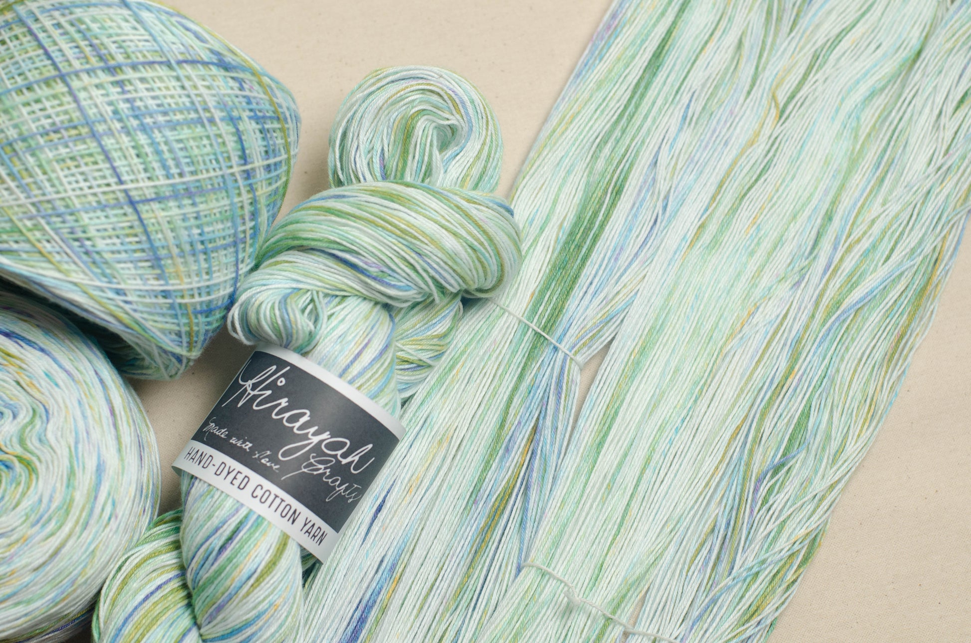 Light worsted weight/ 8ply hand-dyed cotton yarn.