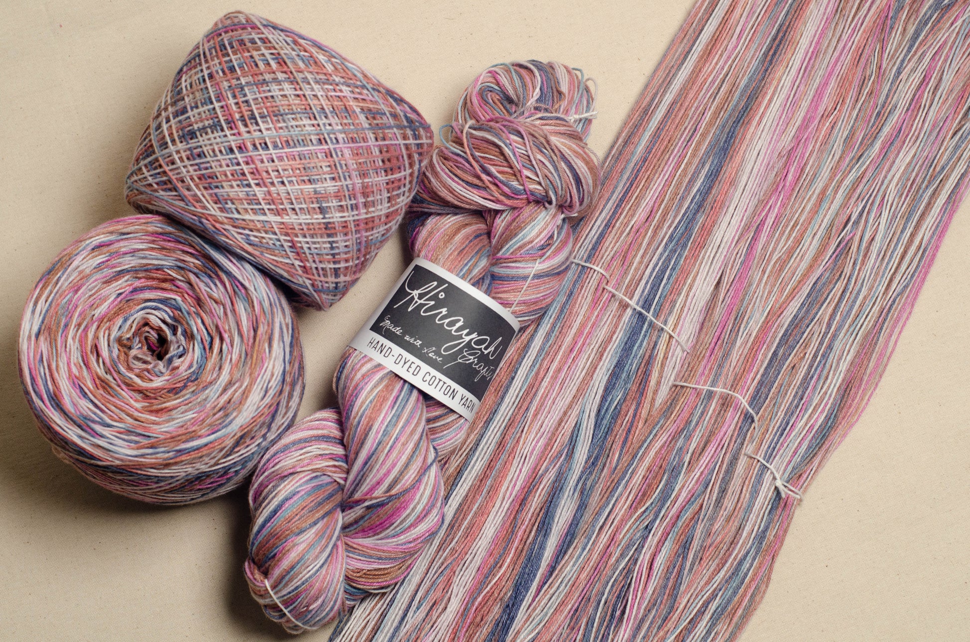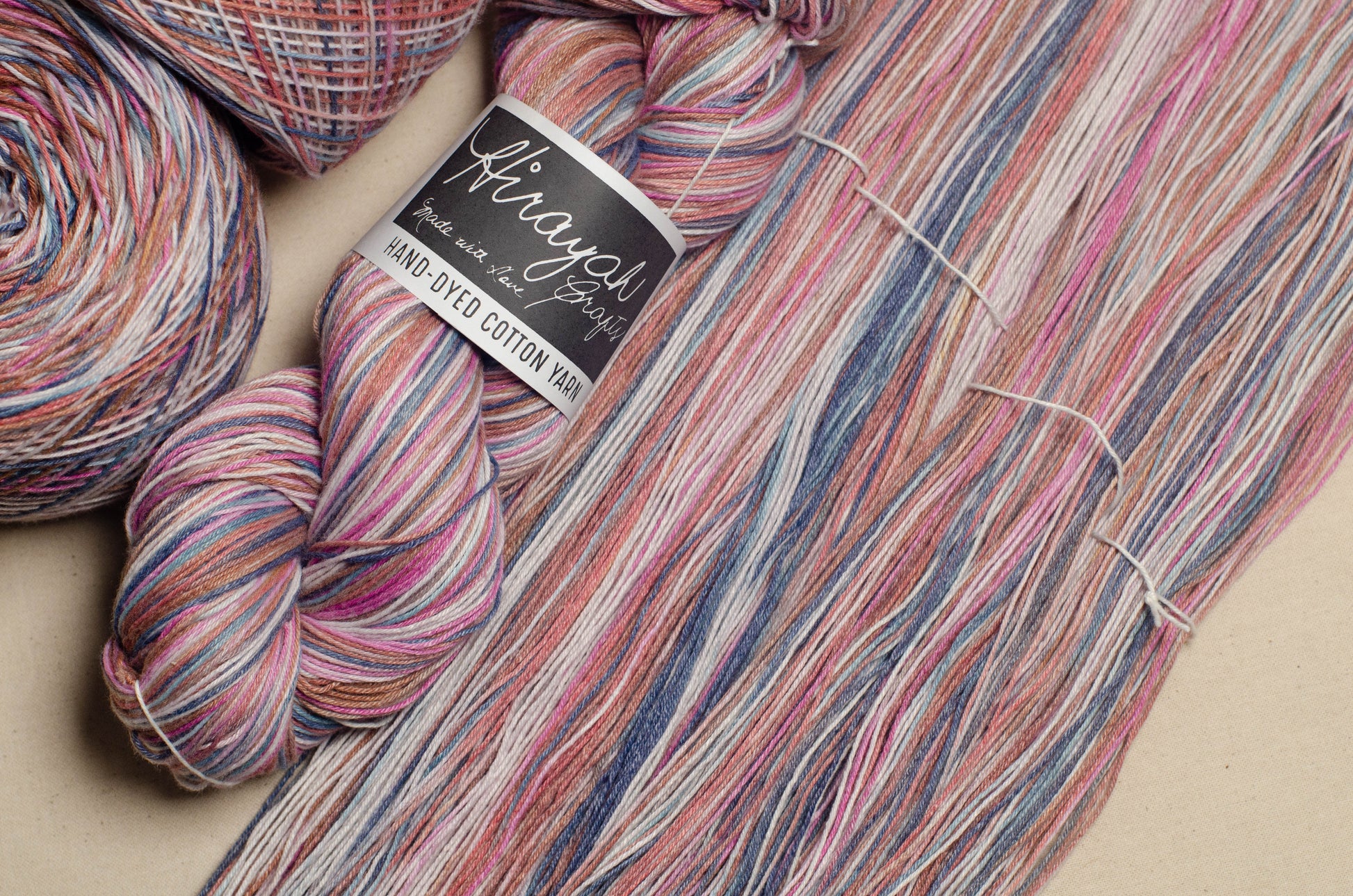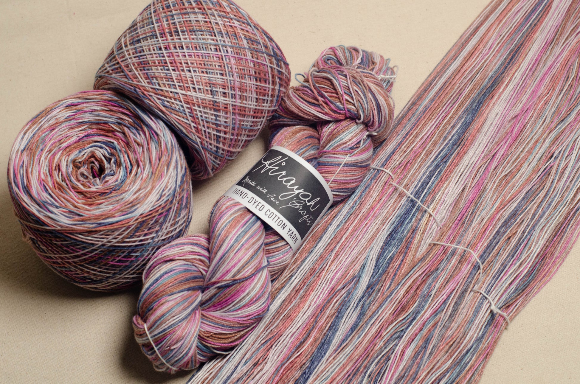 Light worsted weight/ 8ply hand-dyed cotton yarn.