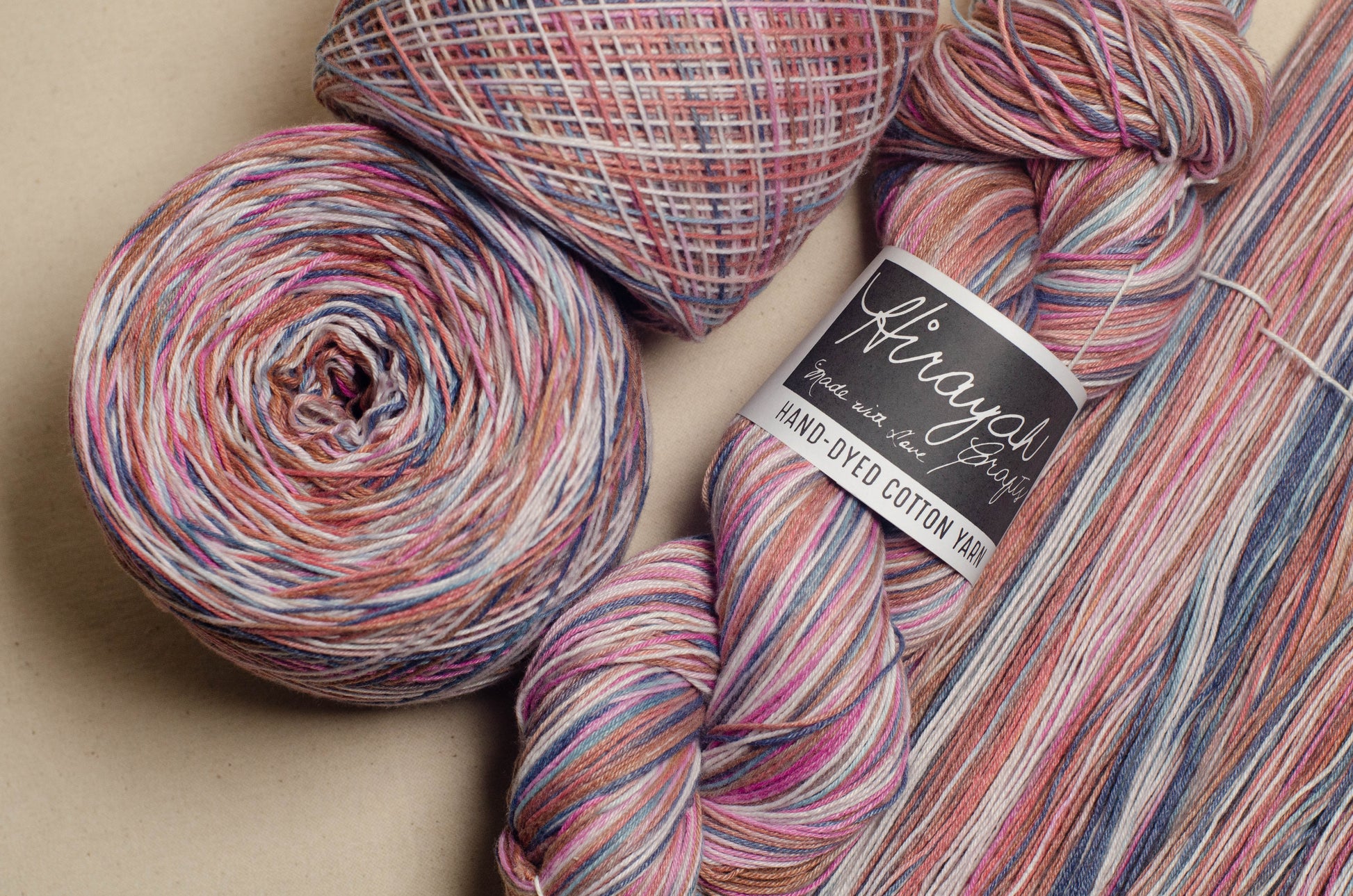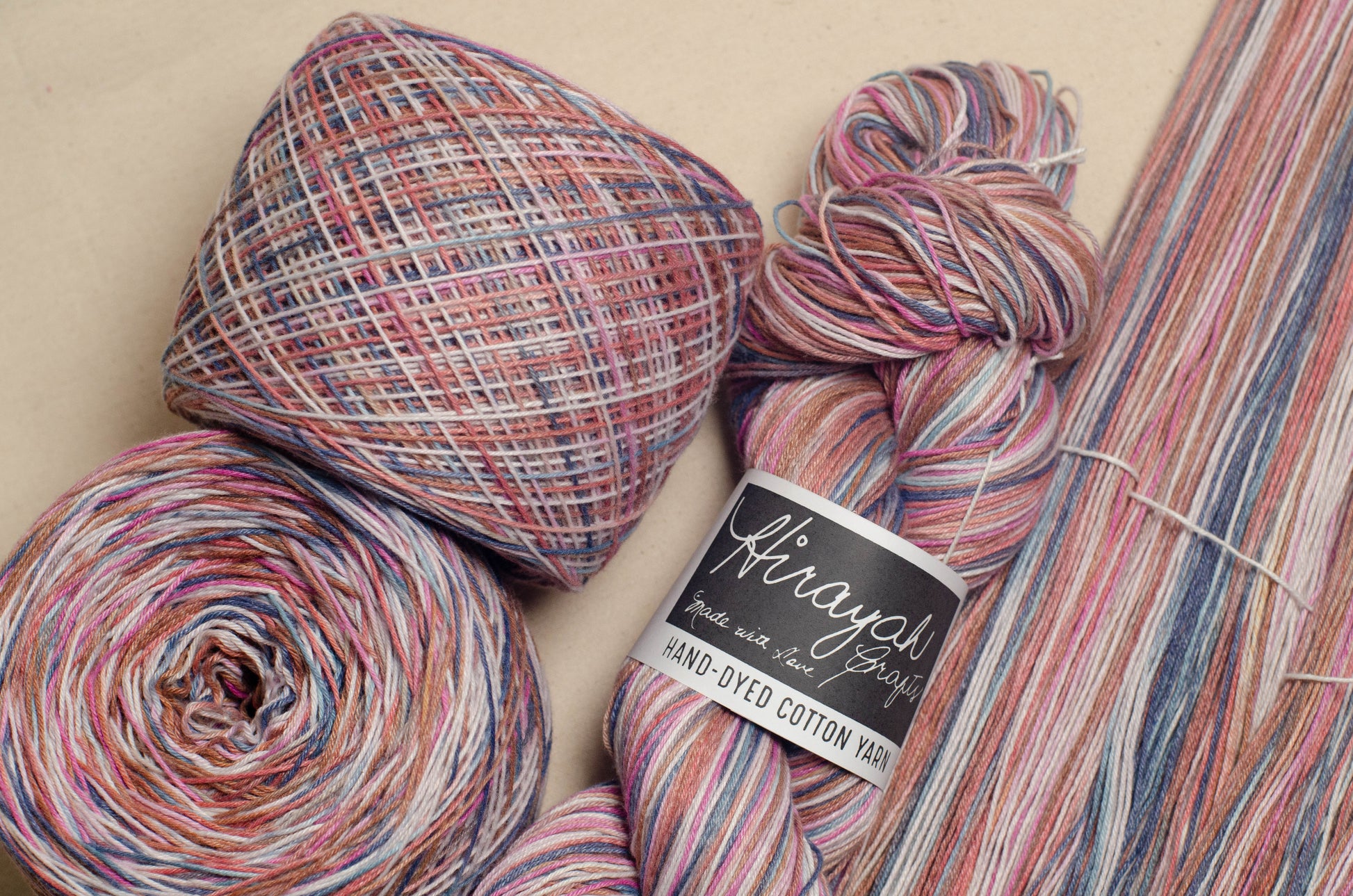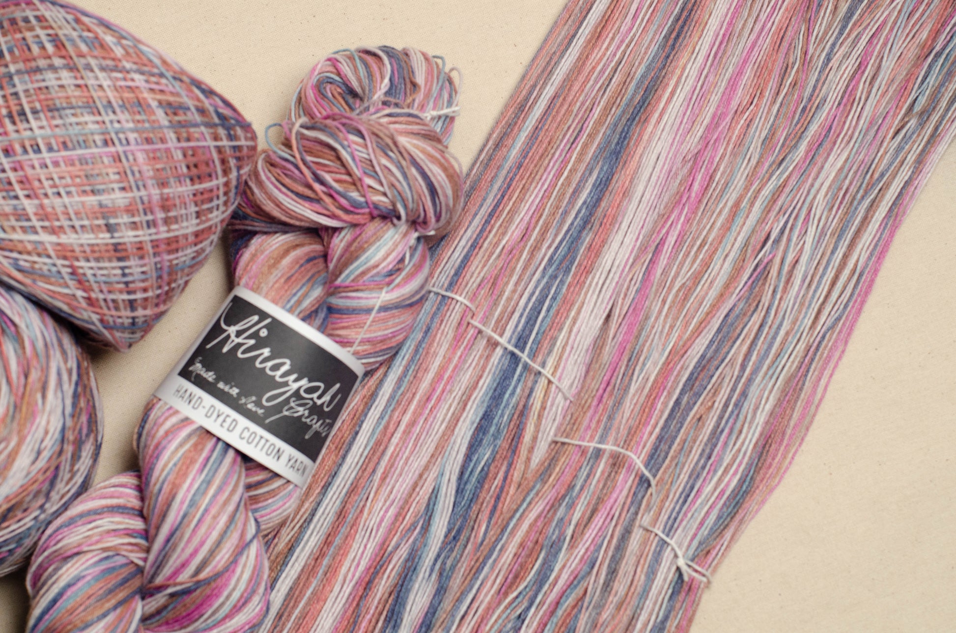 Light worsted weight/ 8ply hand-dyed cotton yarn.
