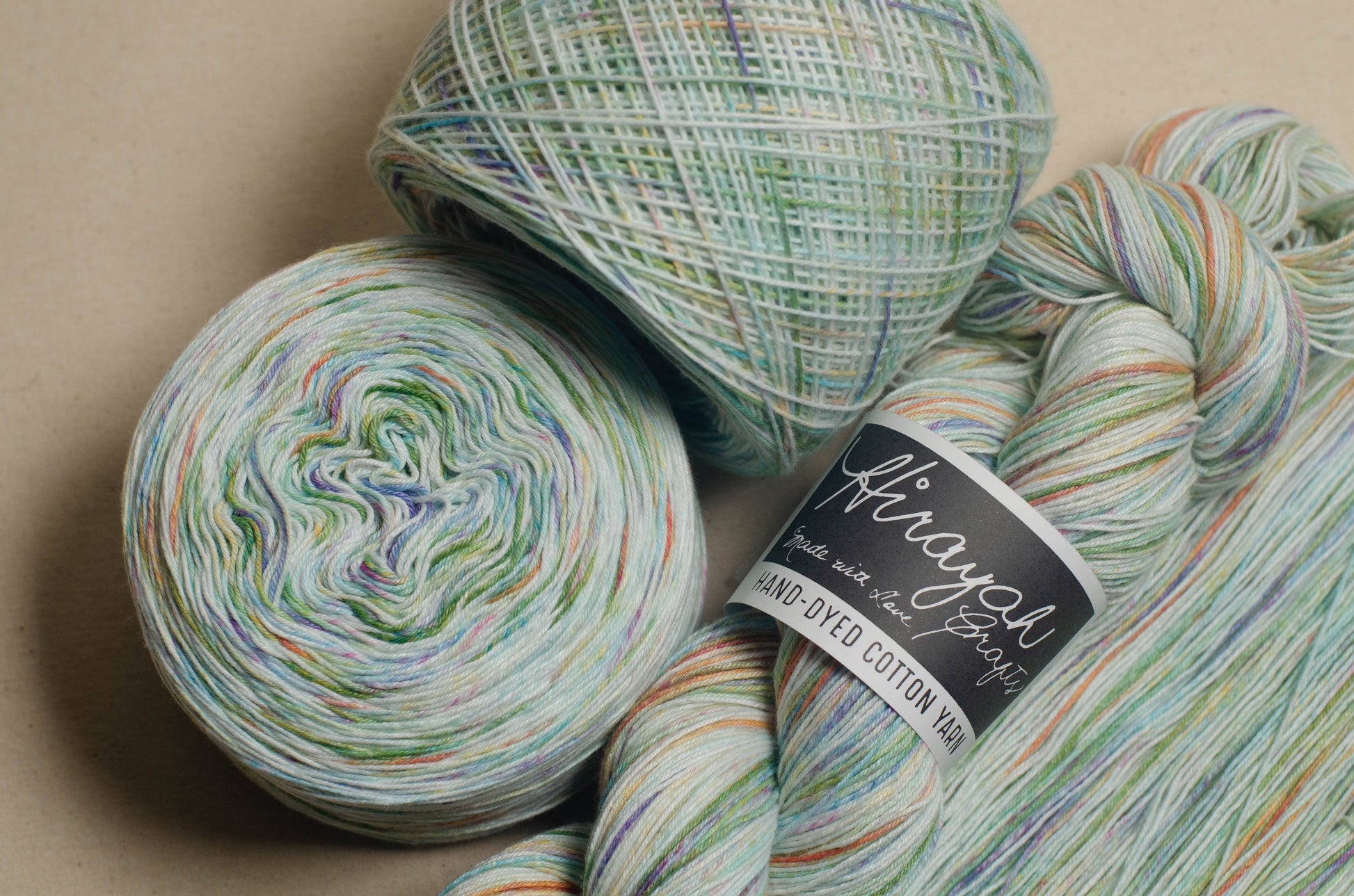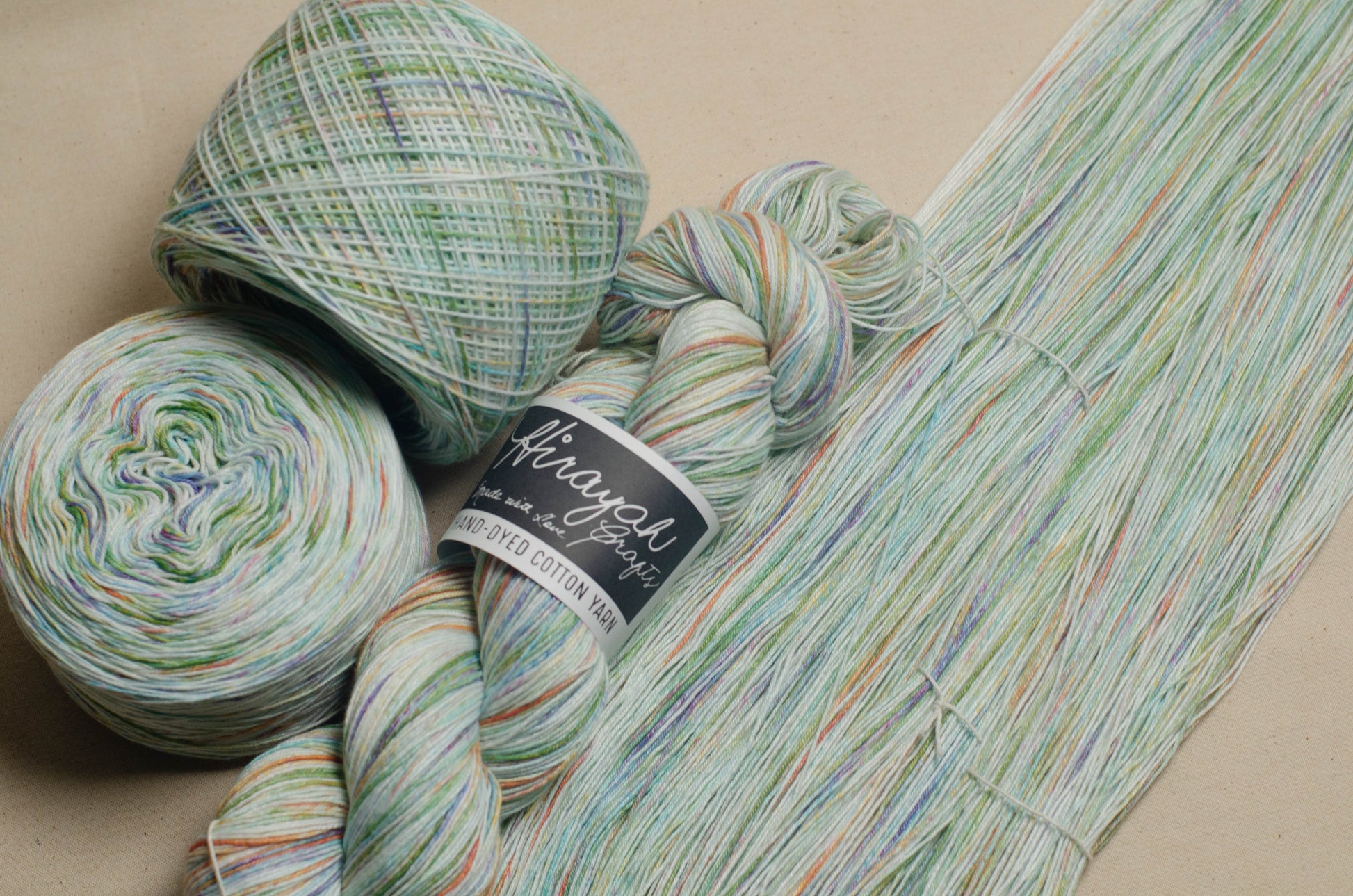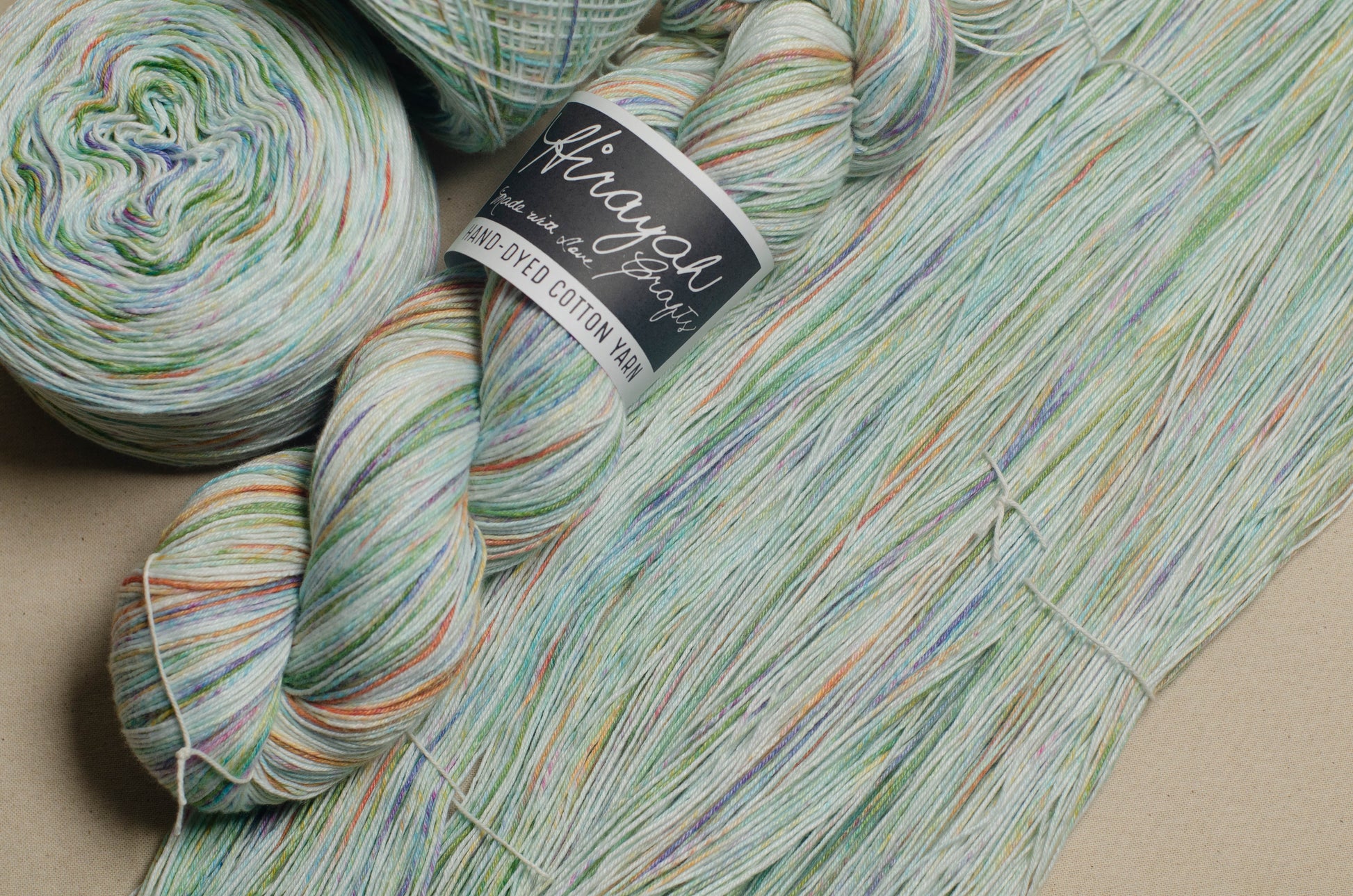 Light worsted weight/ 8ply hand-dyed cotton yarn.
