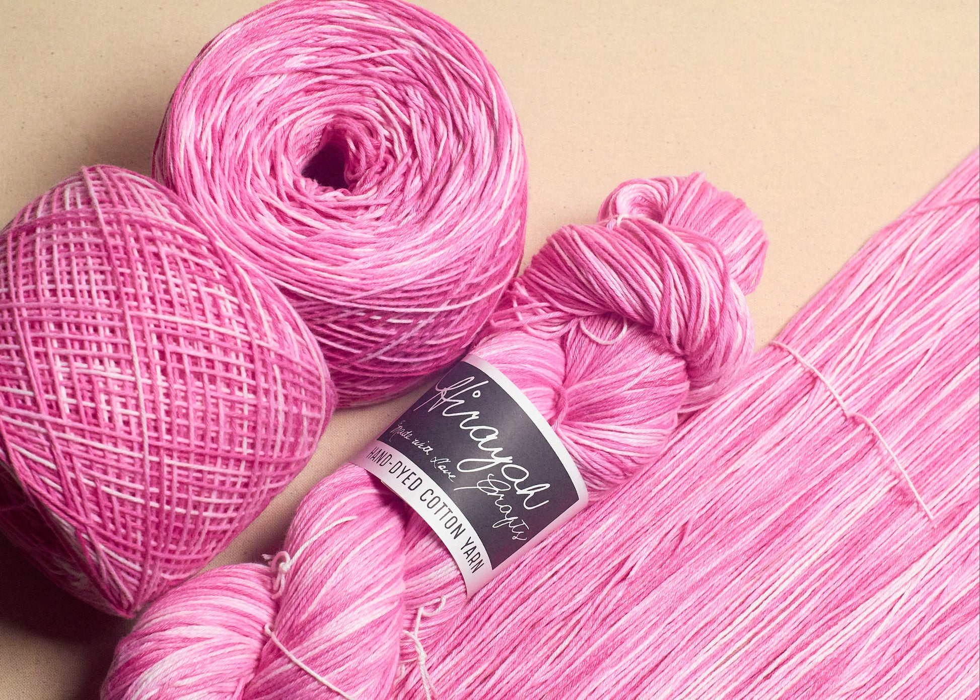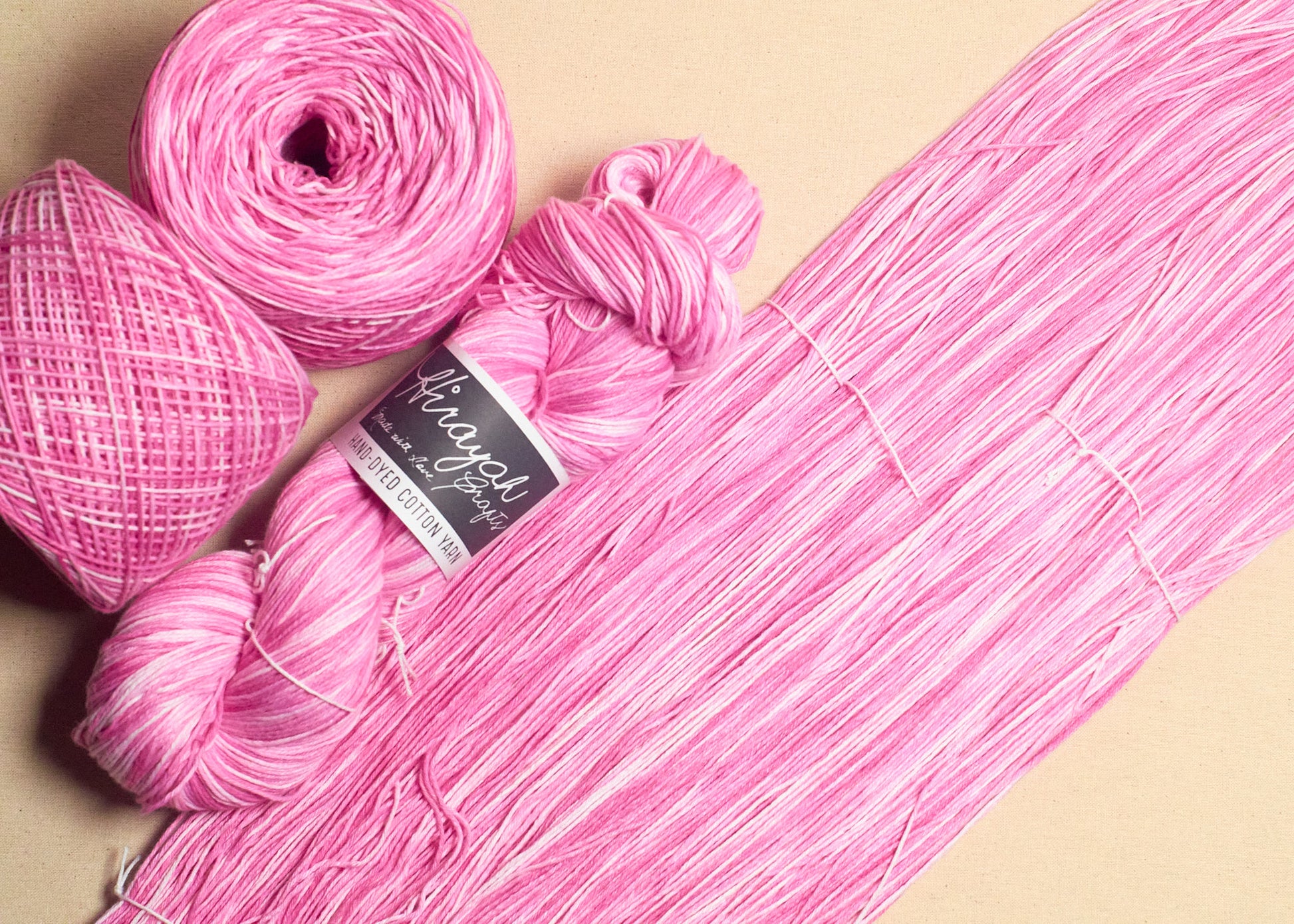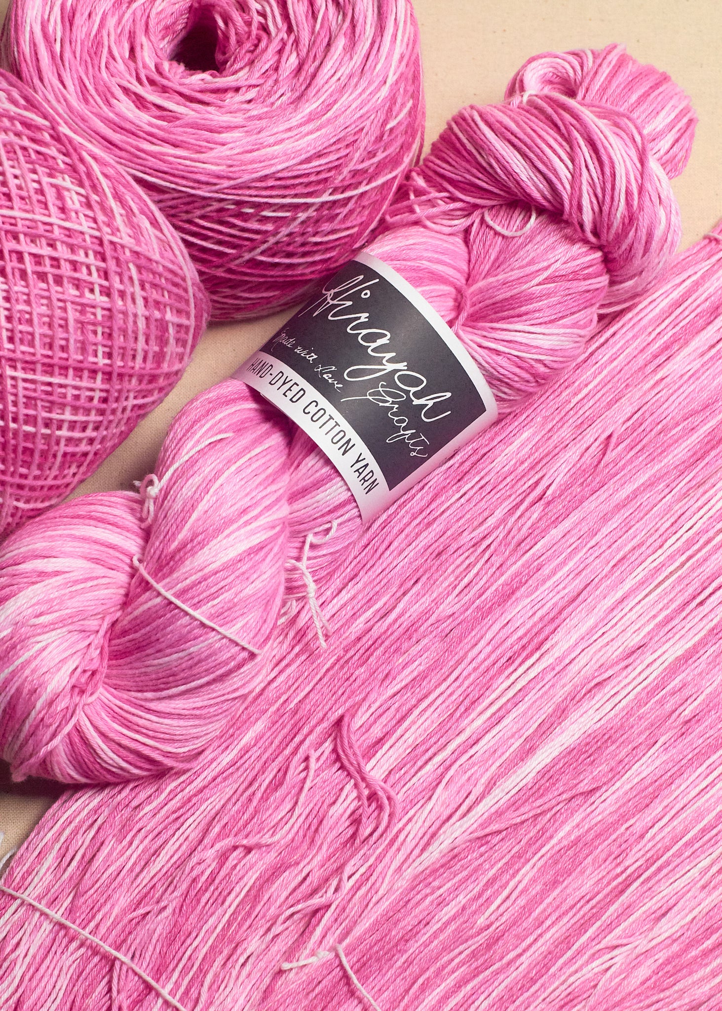 Light worsted weight/ 8ply hand-dyed cotton yarn.