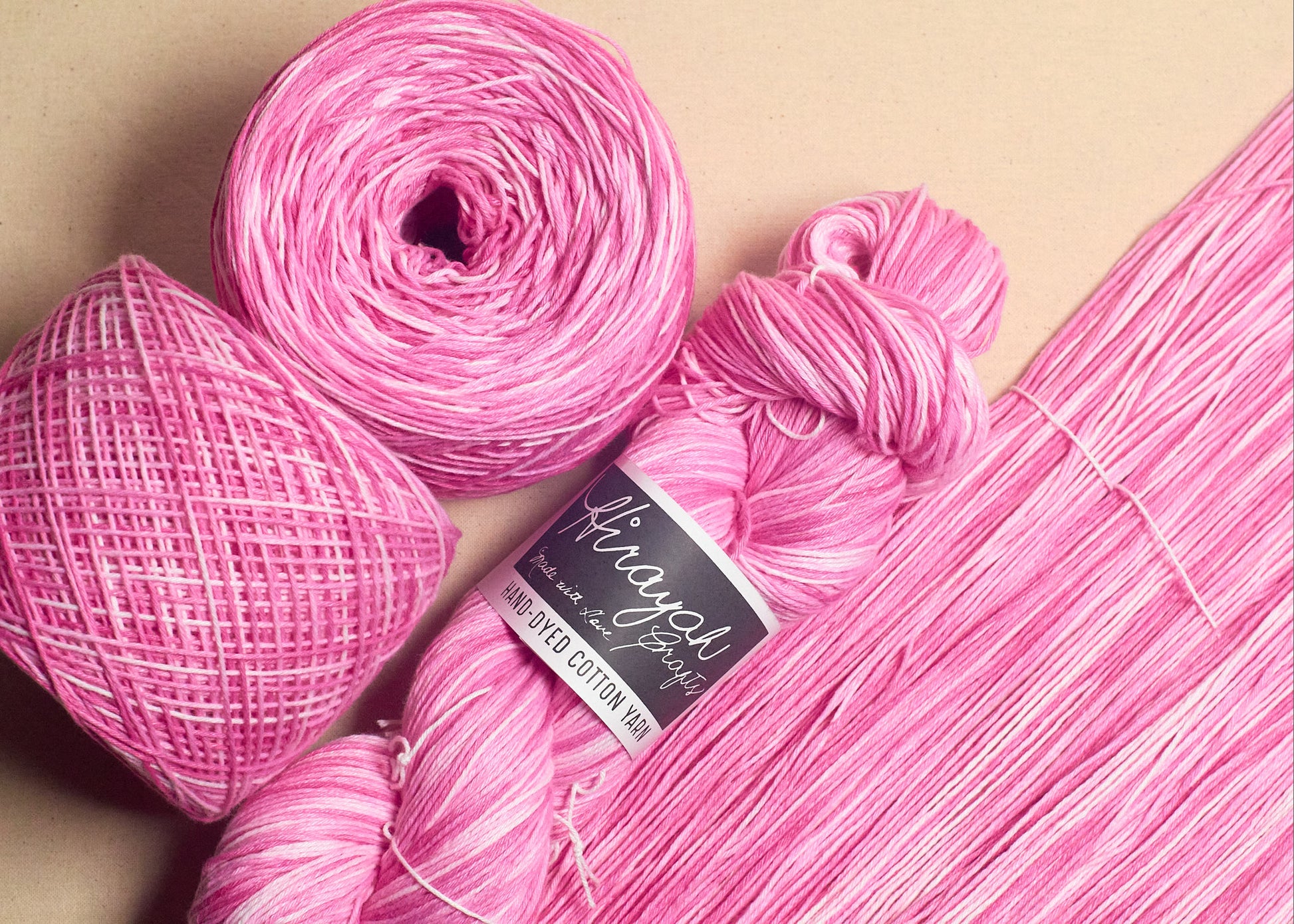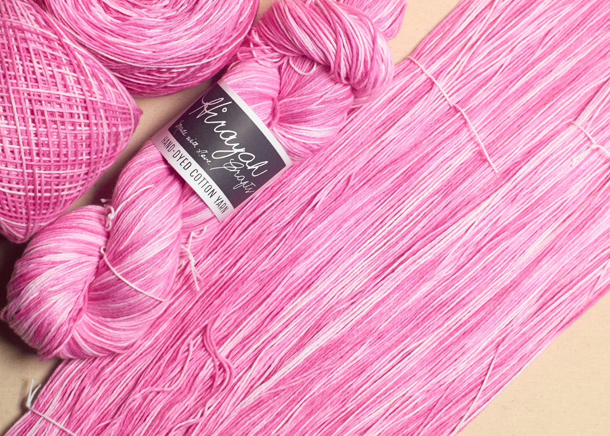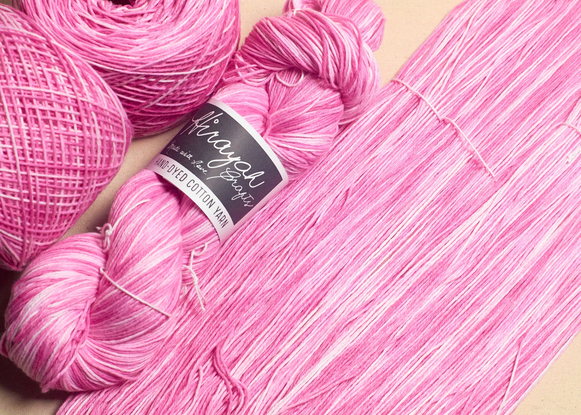 Light worsted weight/ 8ply hand-dyed cotton yarn.