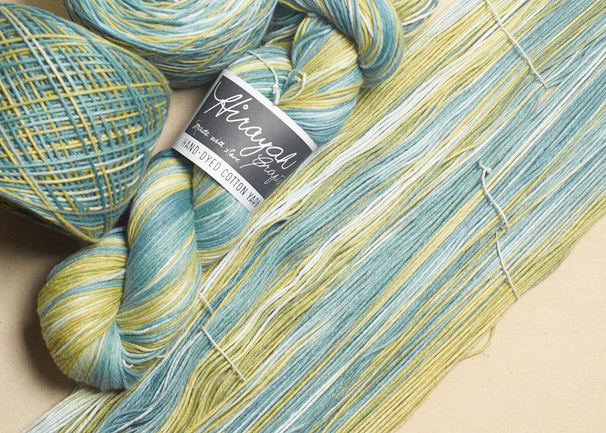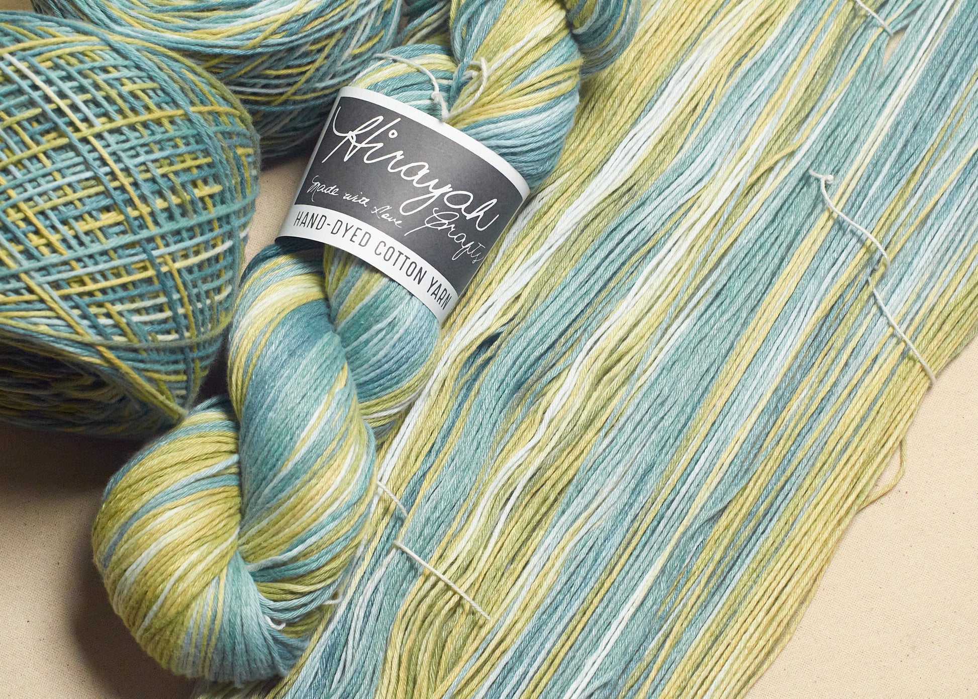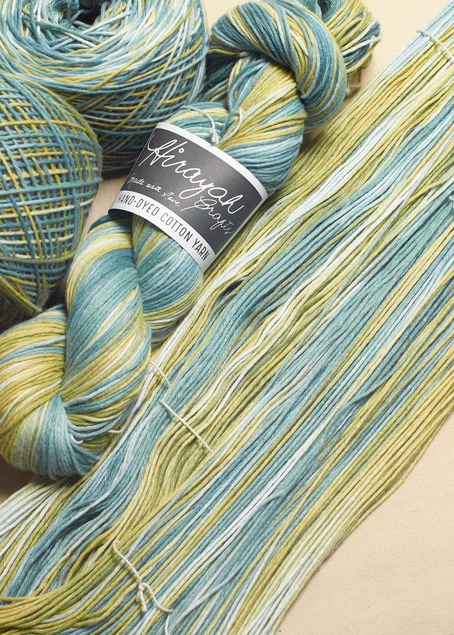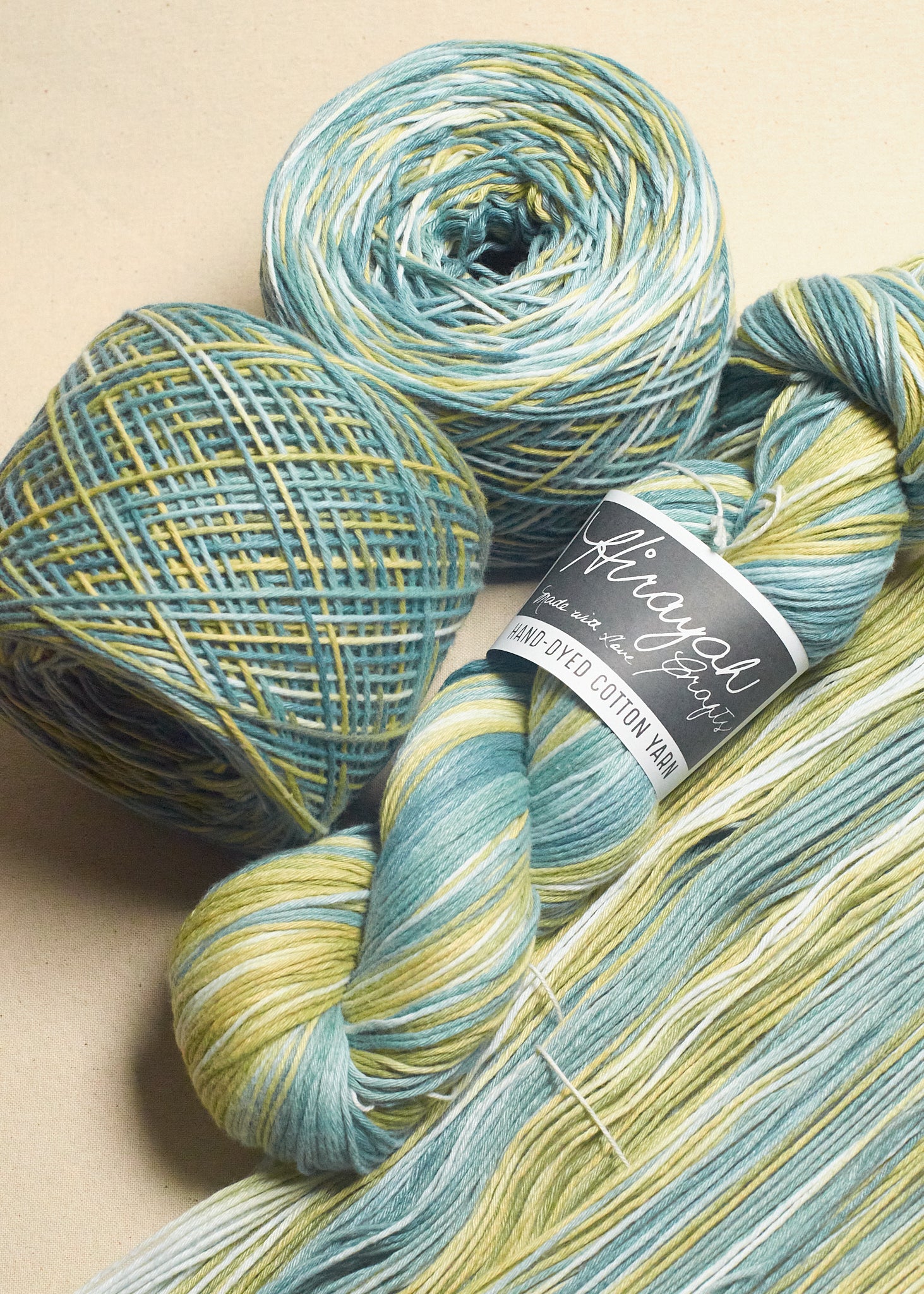 Light worsted weight/ 8ply hand-dyed cotton yarn.