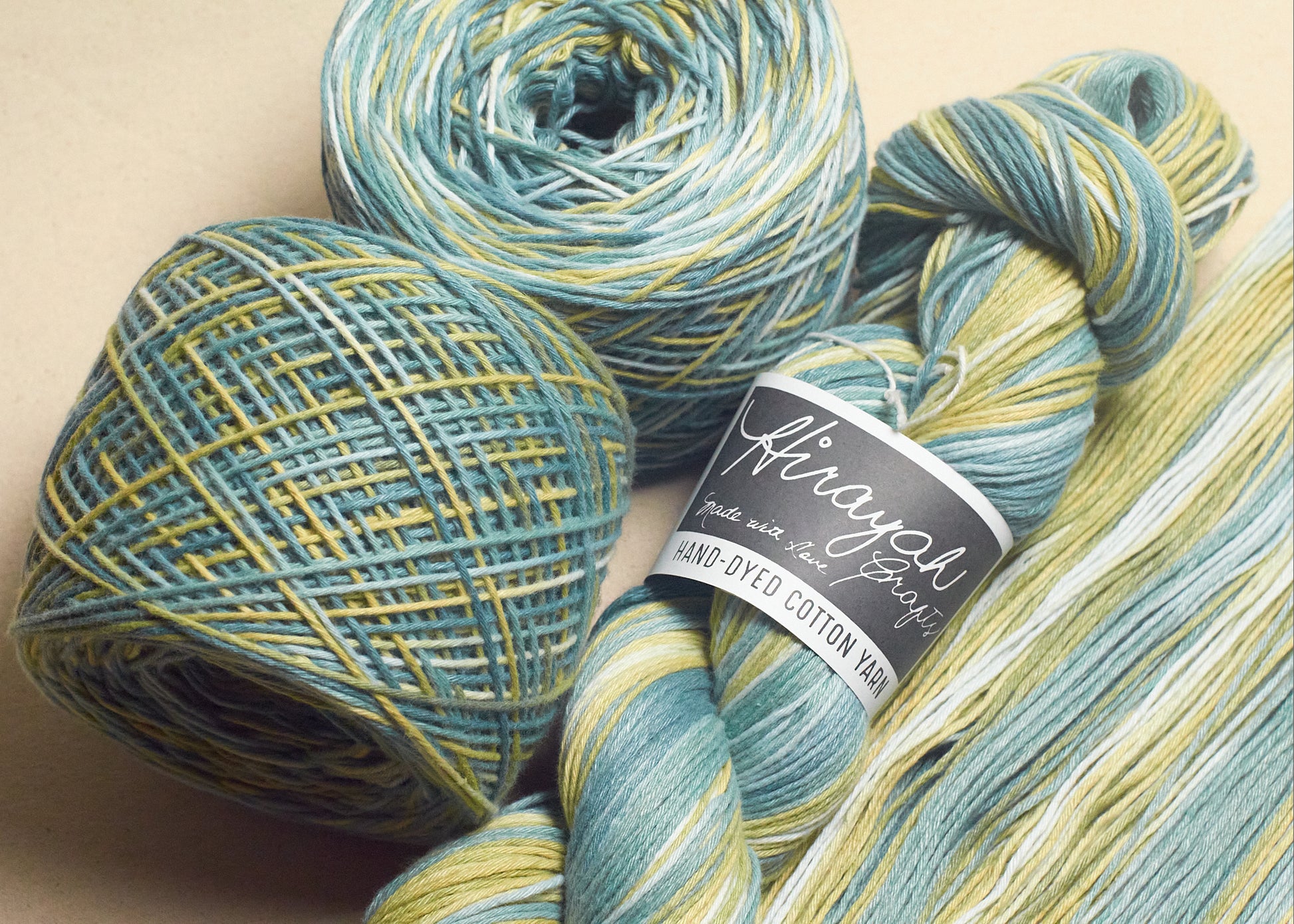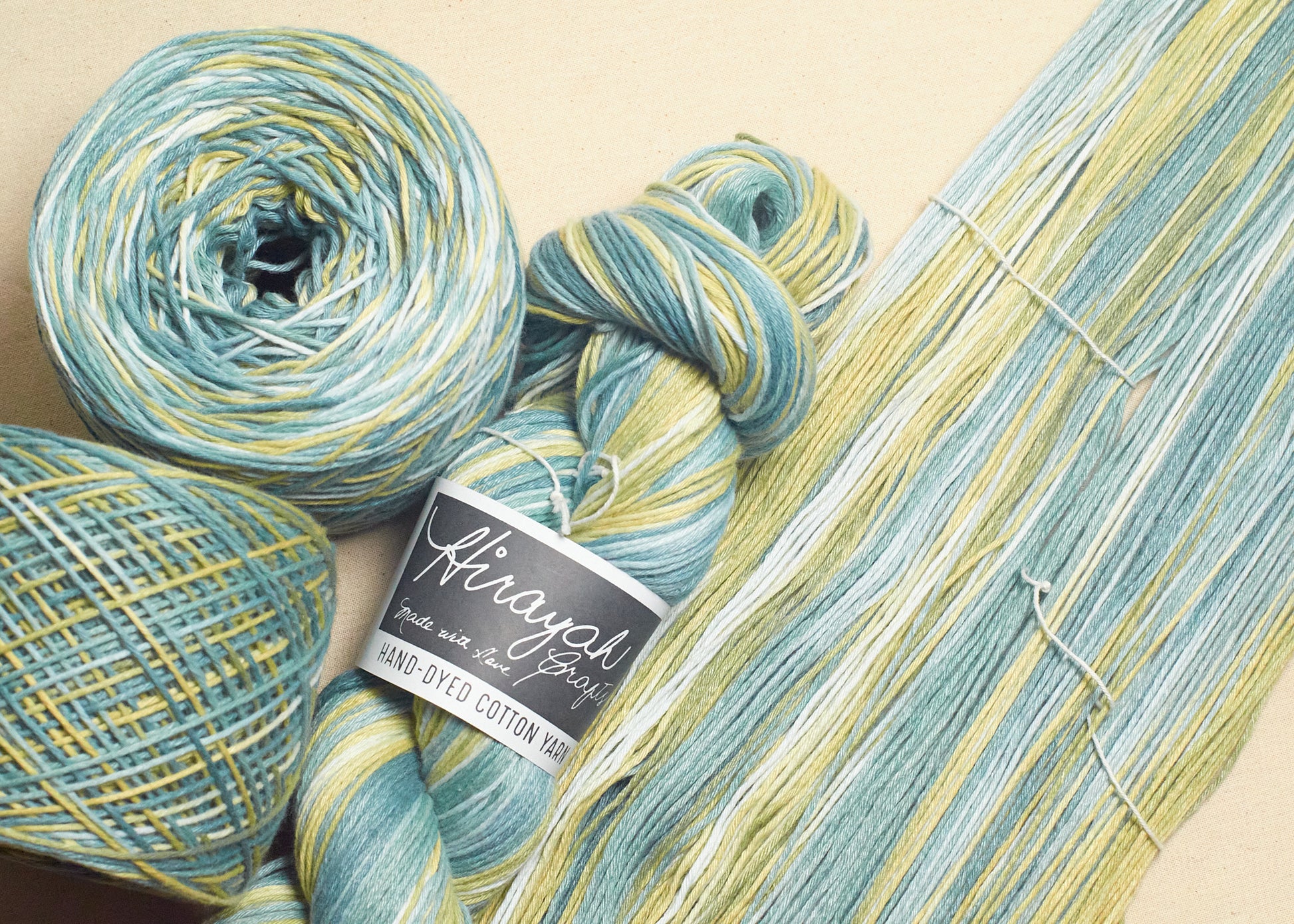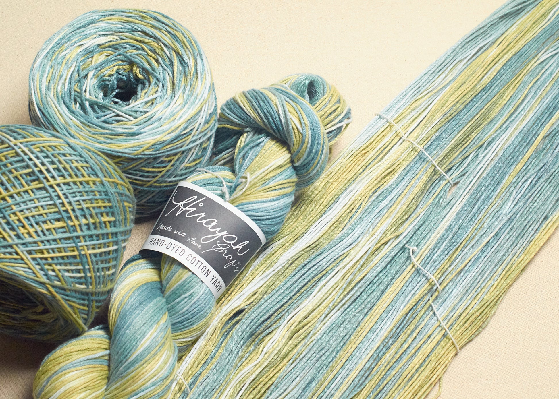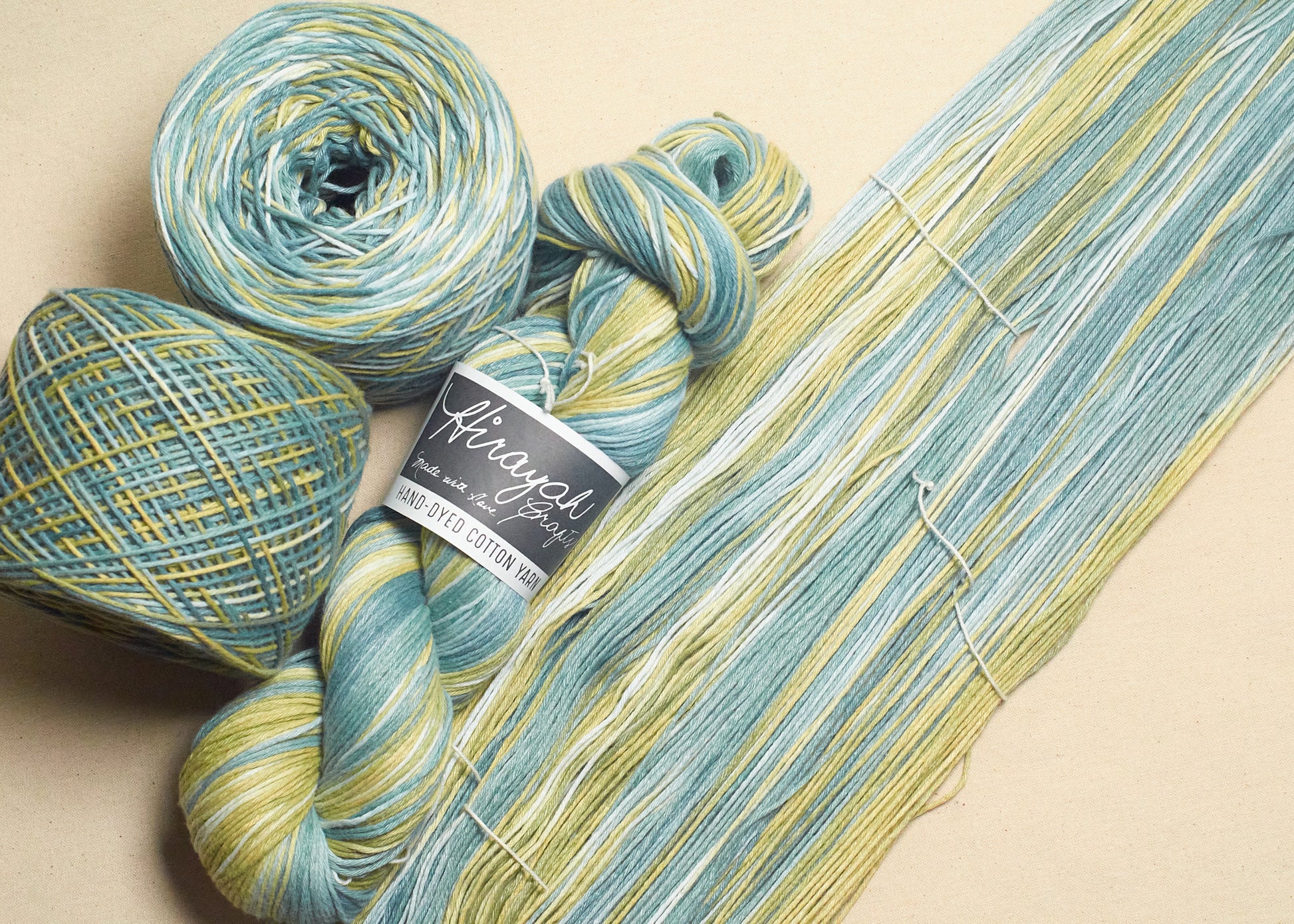 Light worsted weight/ 8ply hand-dyed cotton yarn.