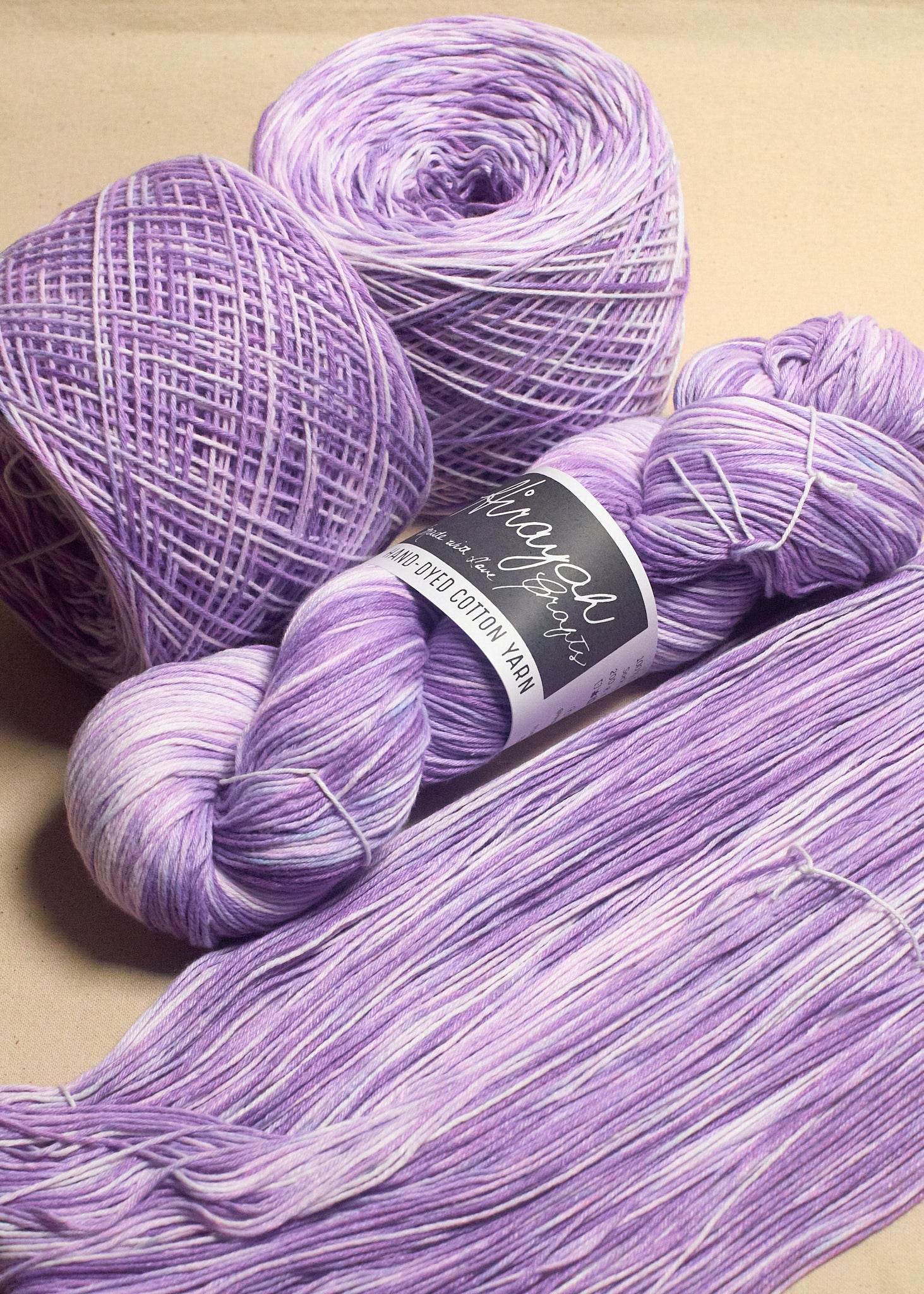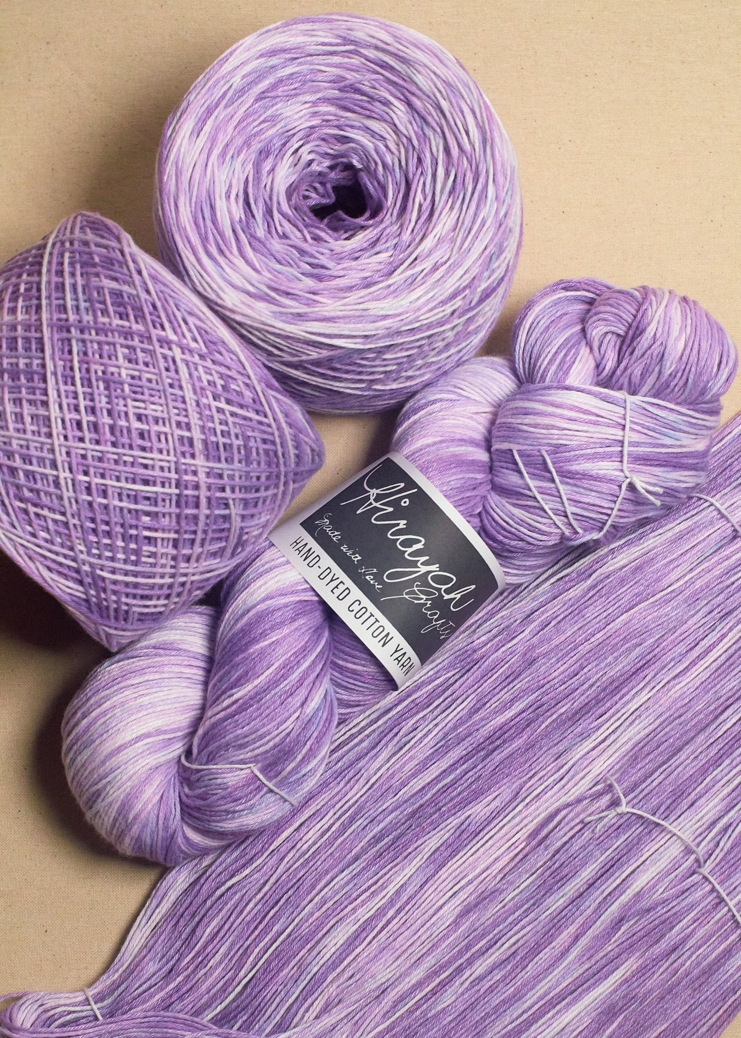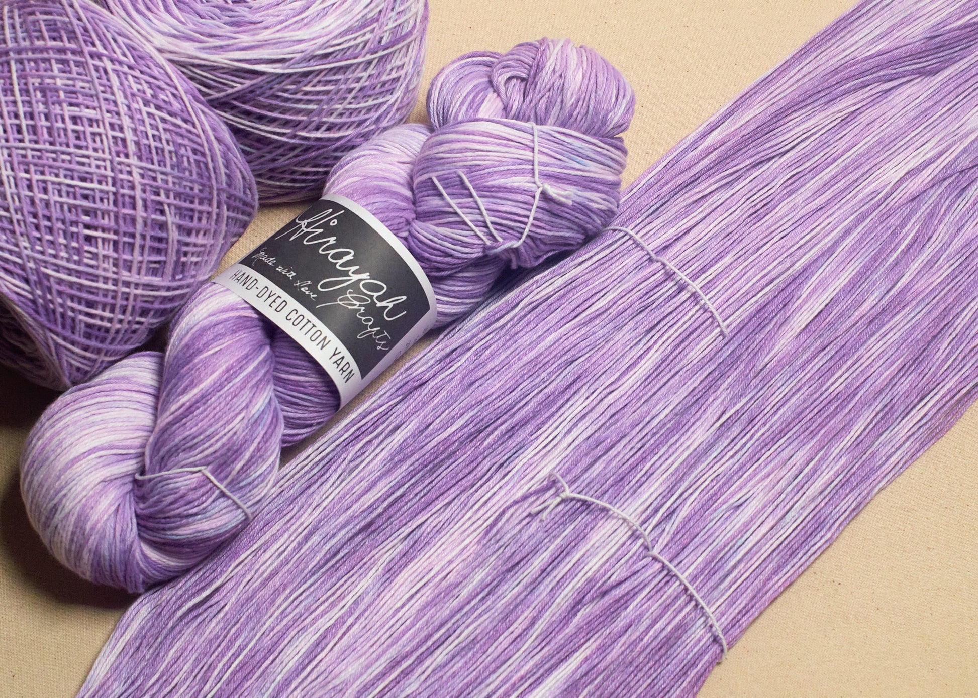 Light worsted weight/ 8ply hand-dyed cotton yarn.