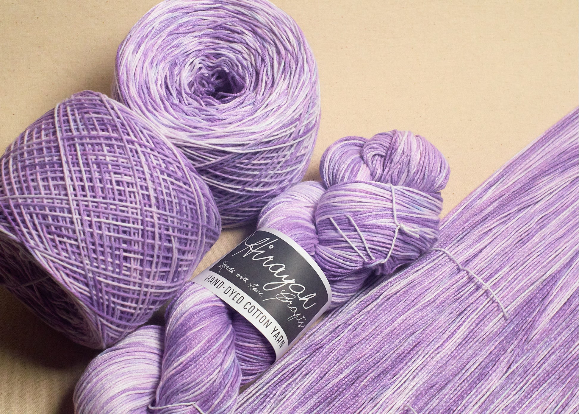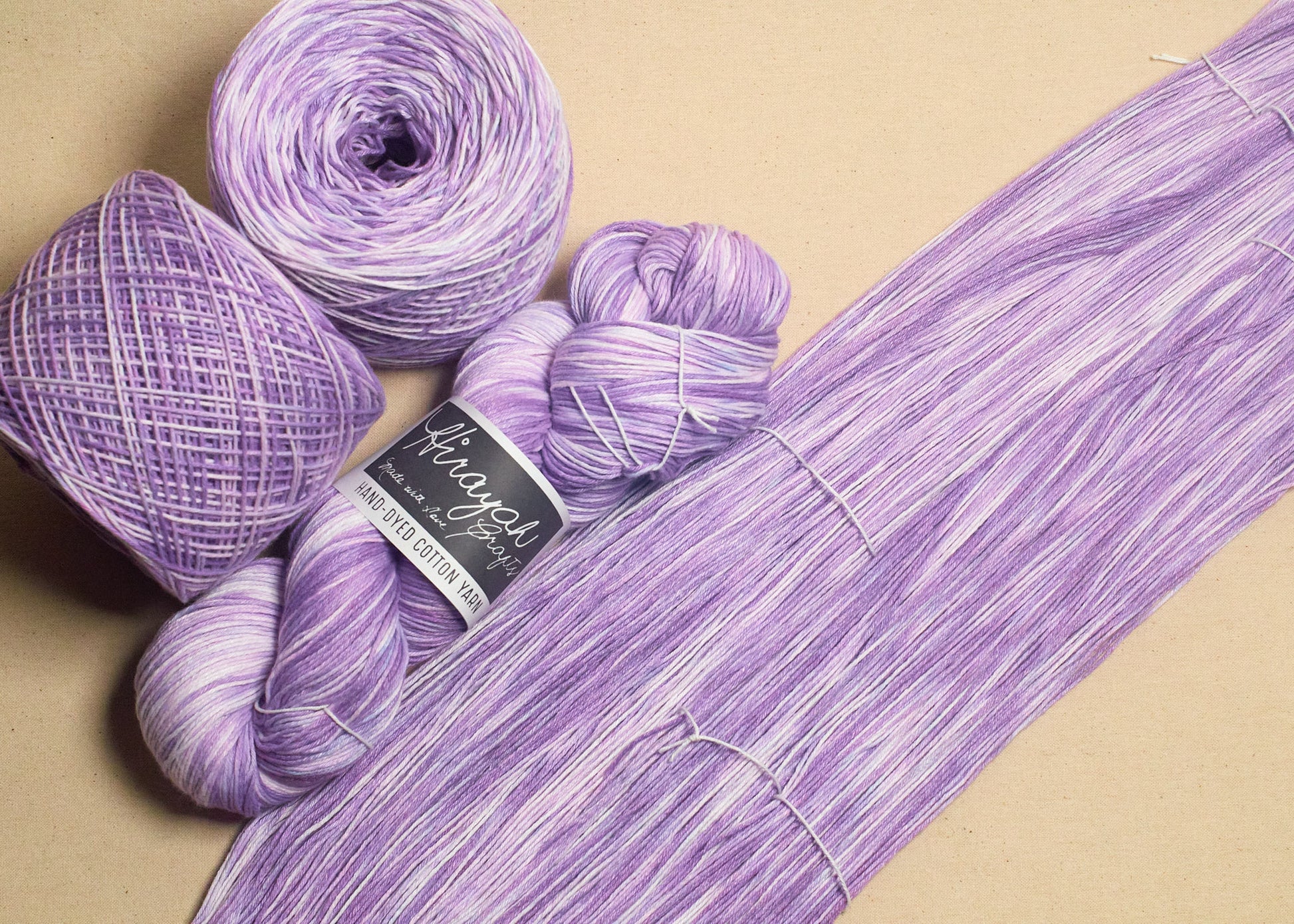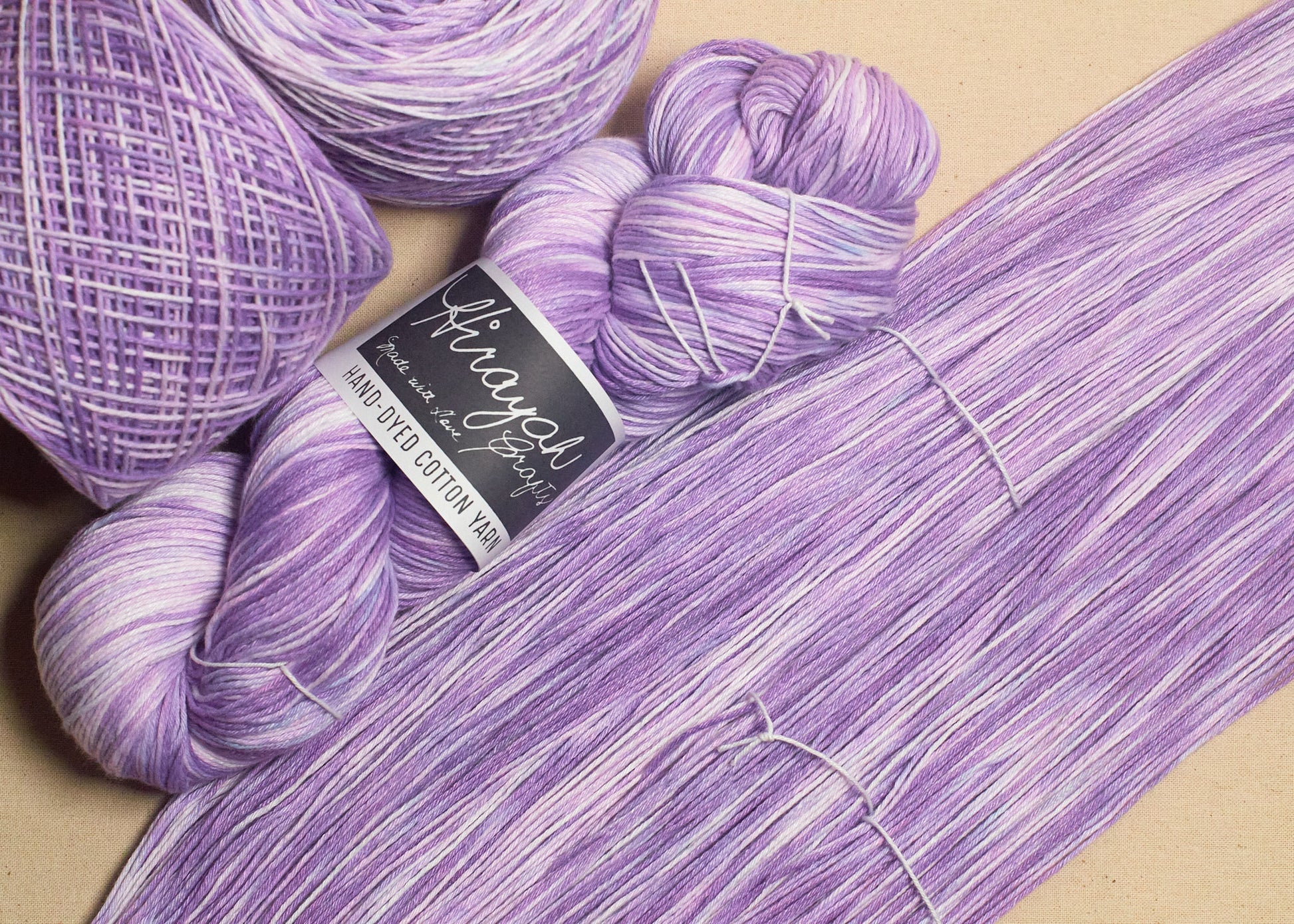 Light worsted weight/ 8ply hand-dyed cotton yarn.