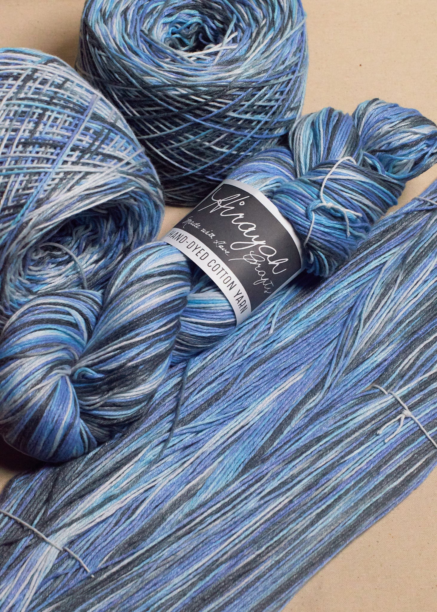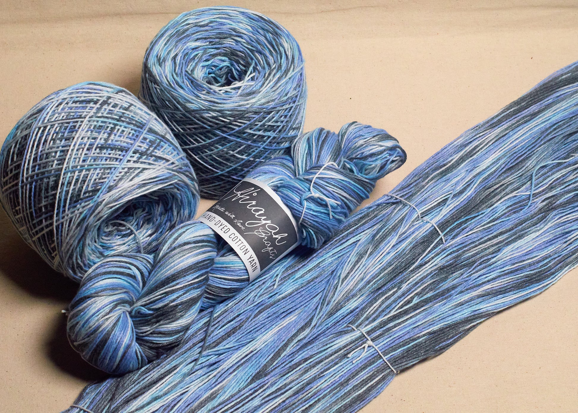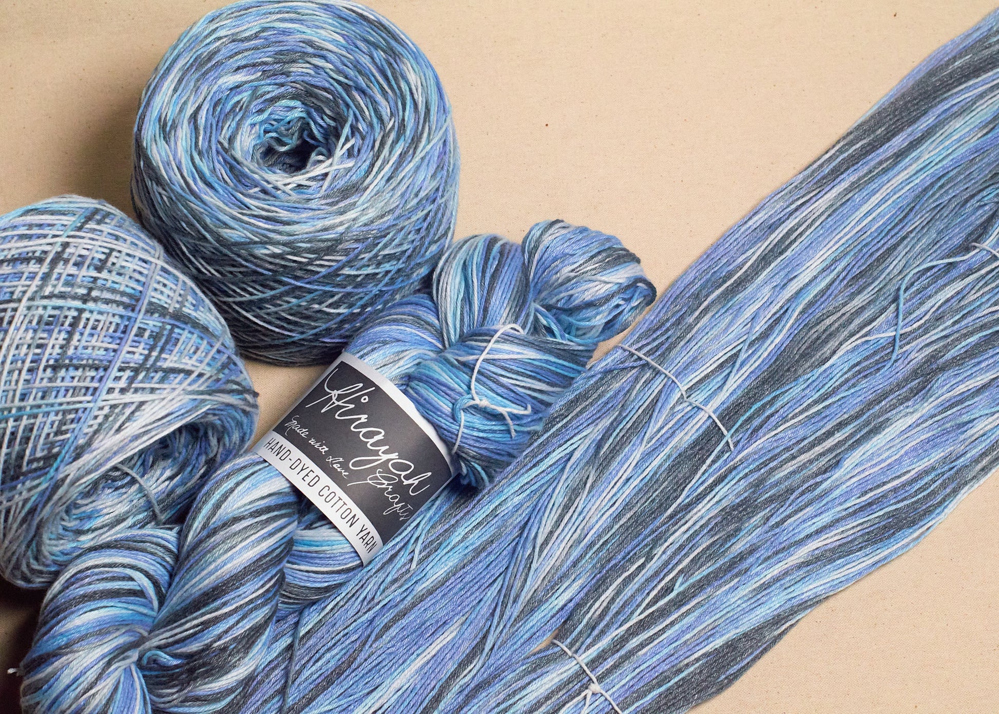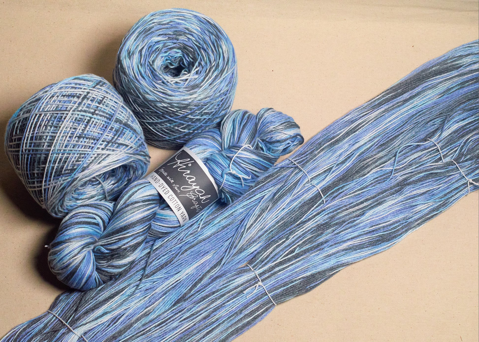 Light worsted weight/ 8ply hand-dyed cotton yarn.