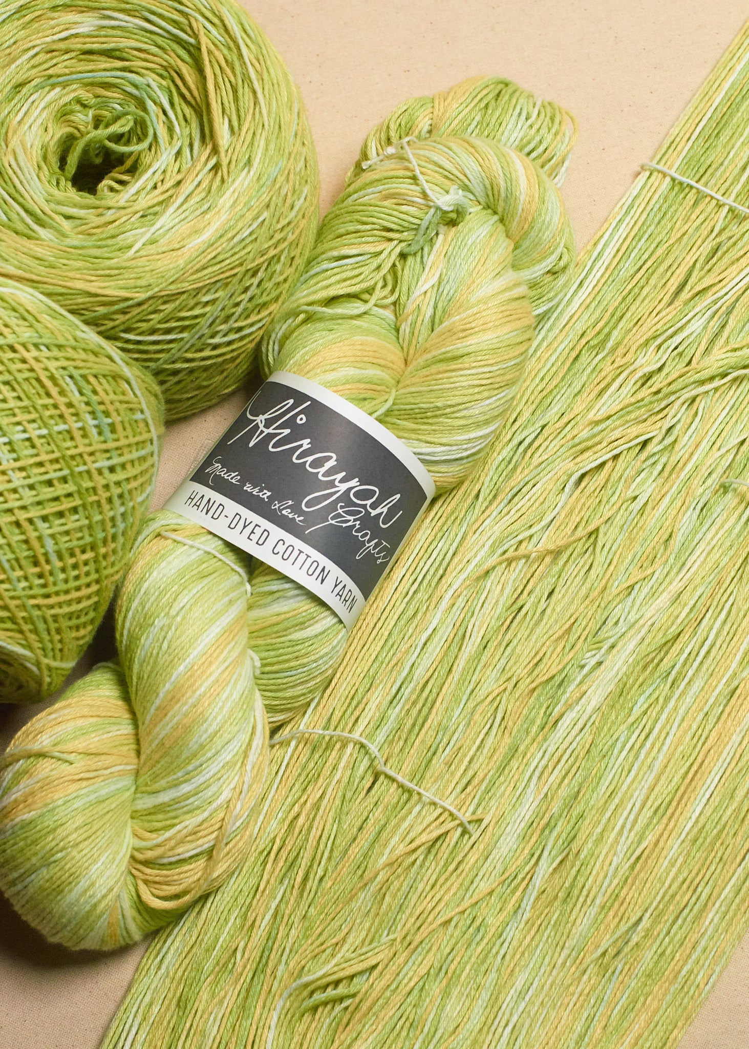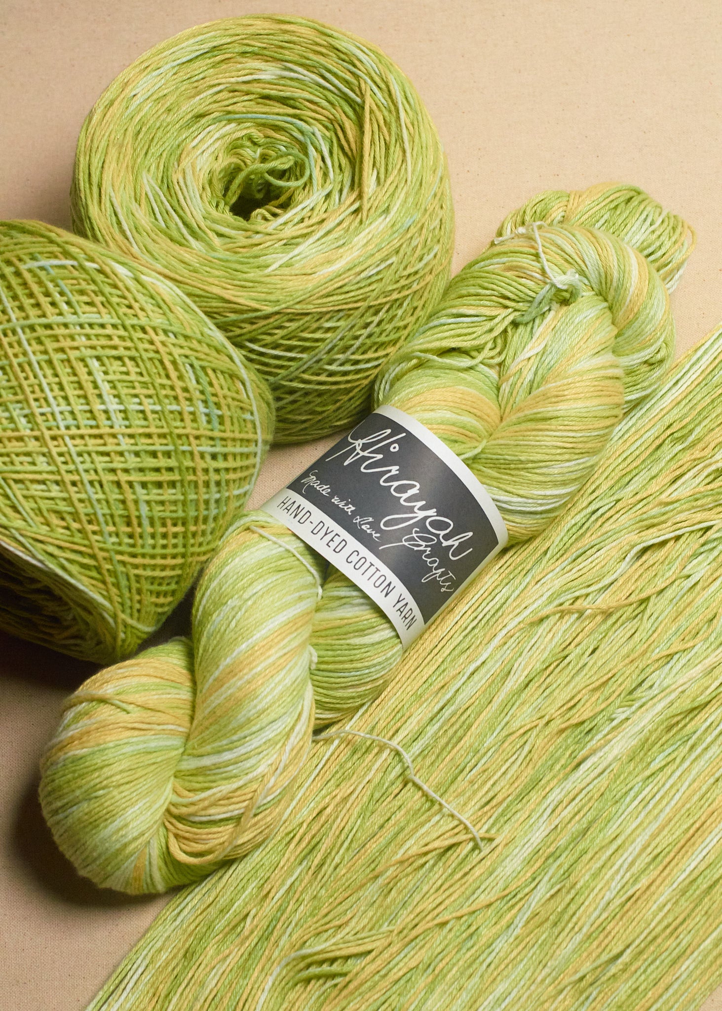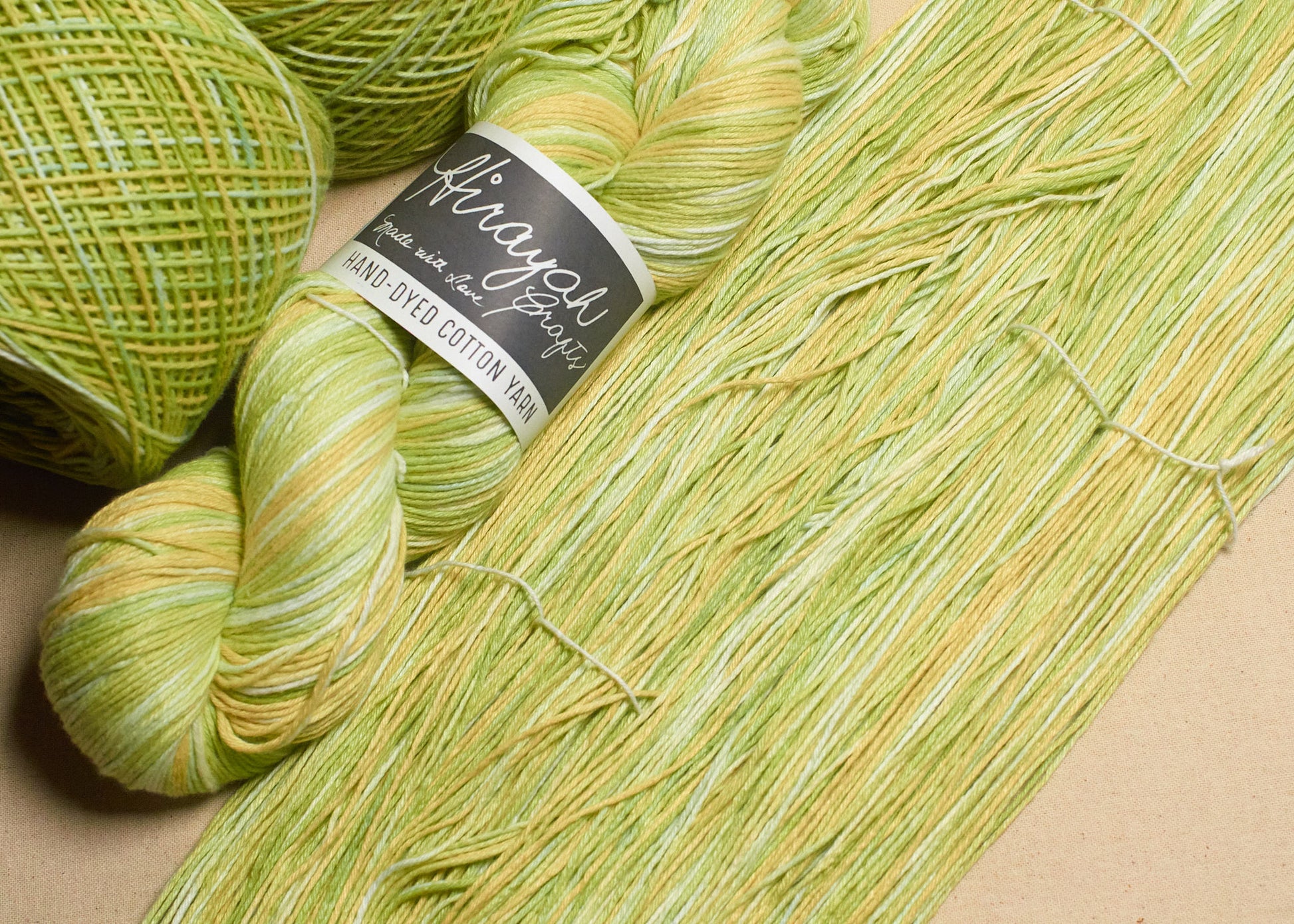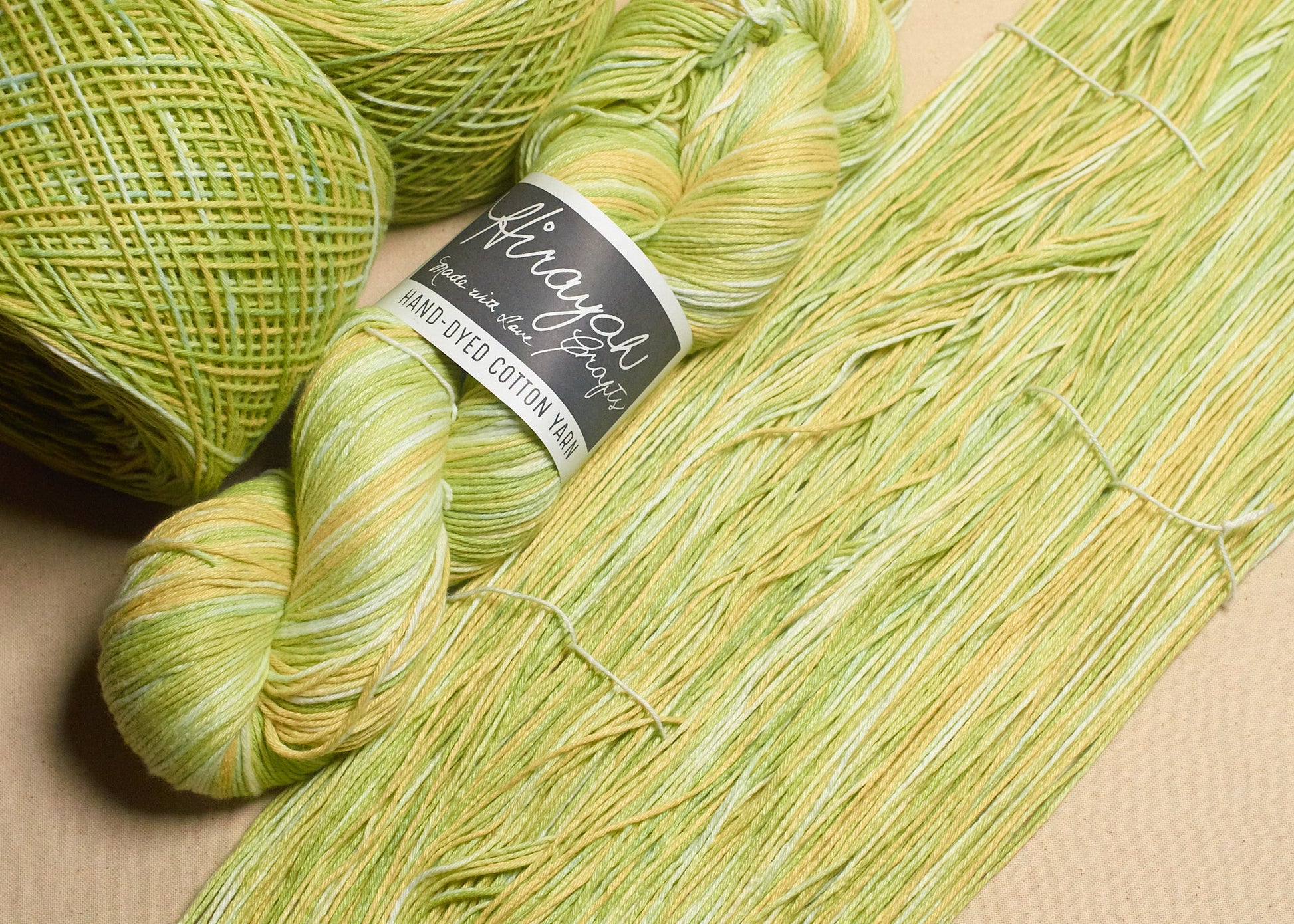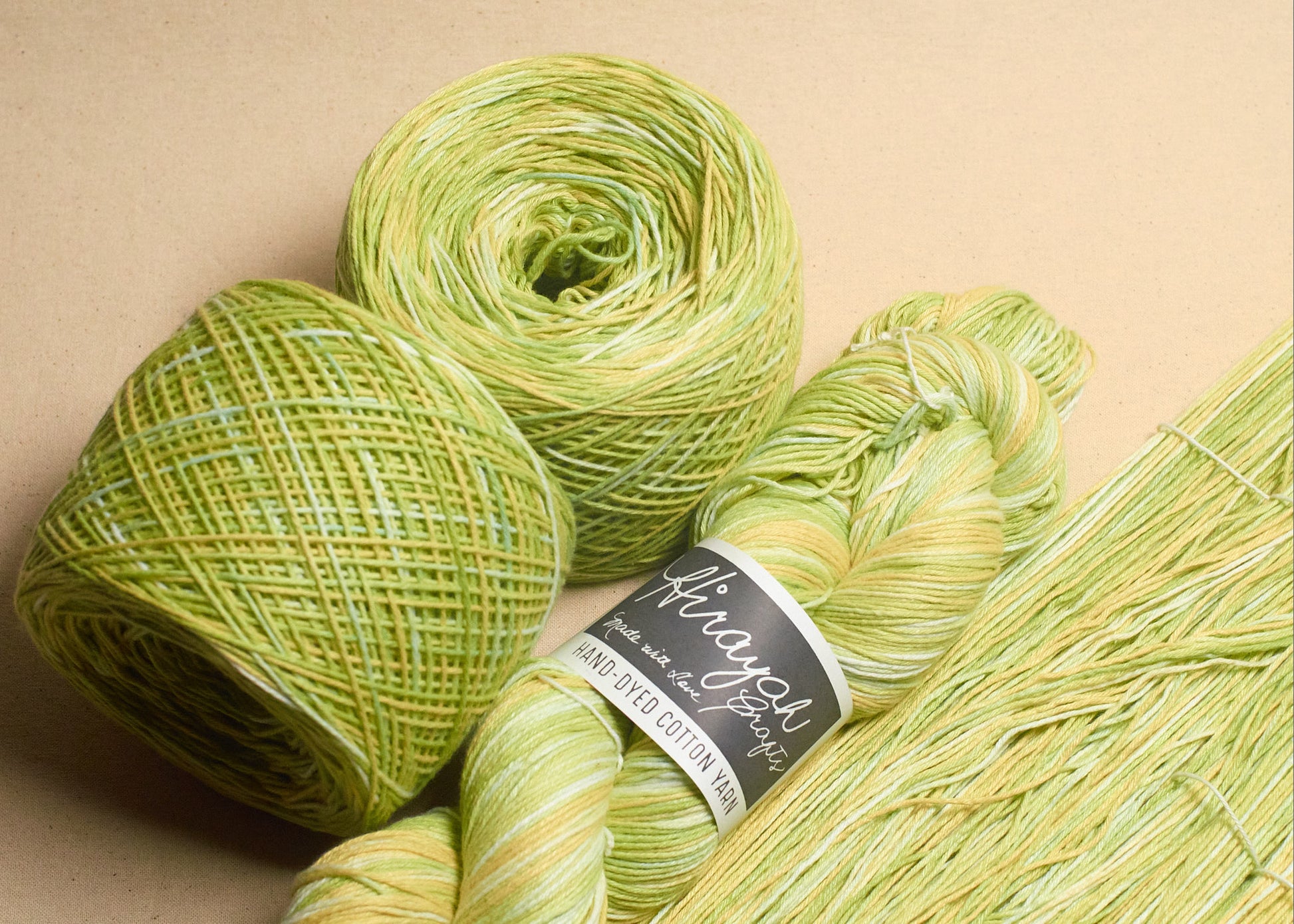 Light worsted weight/ 8ply hand-dyed cotton yarn.