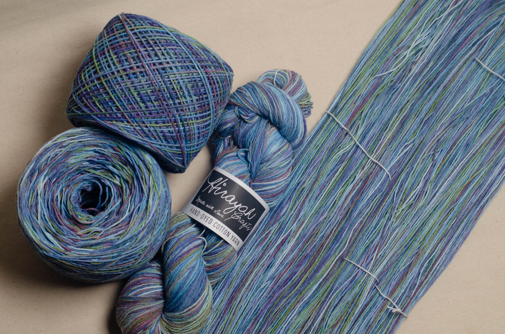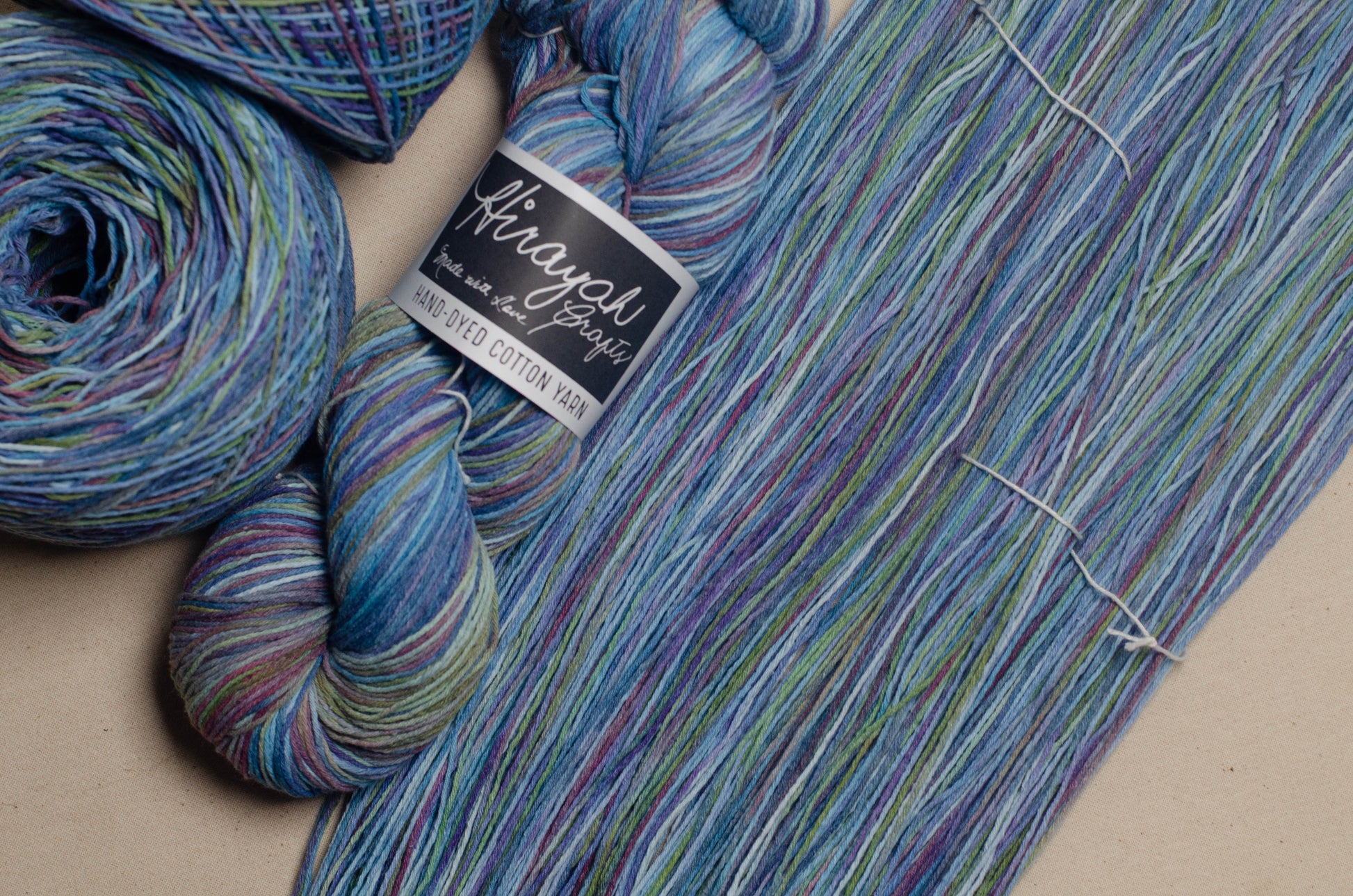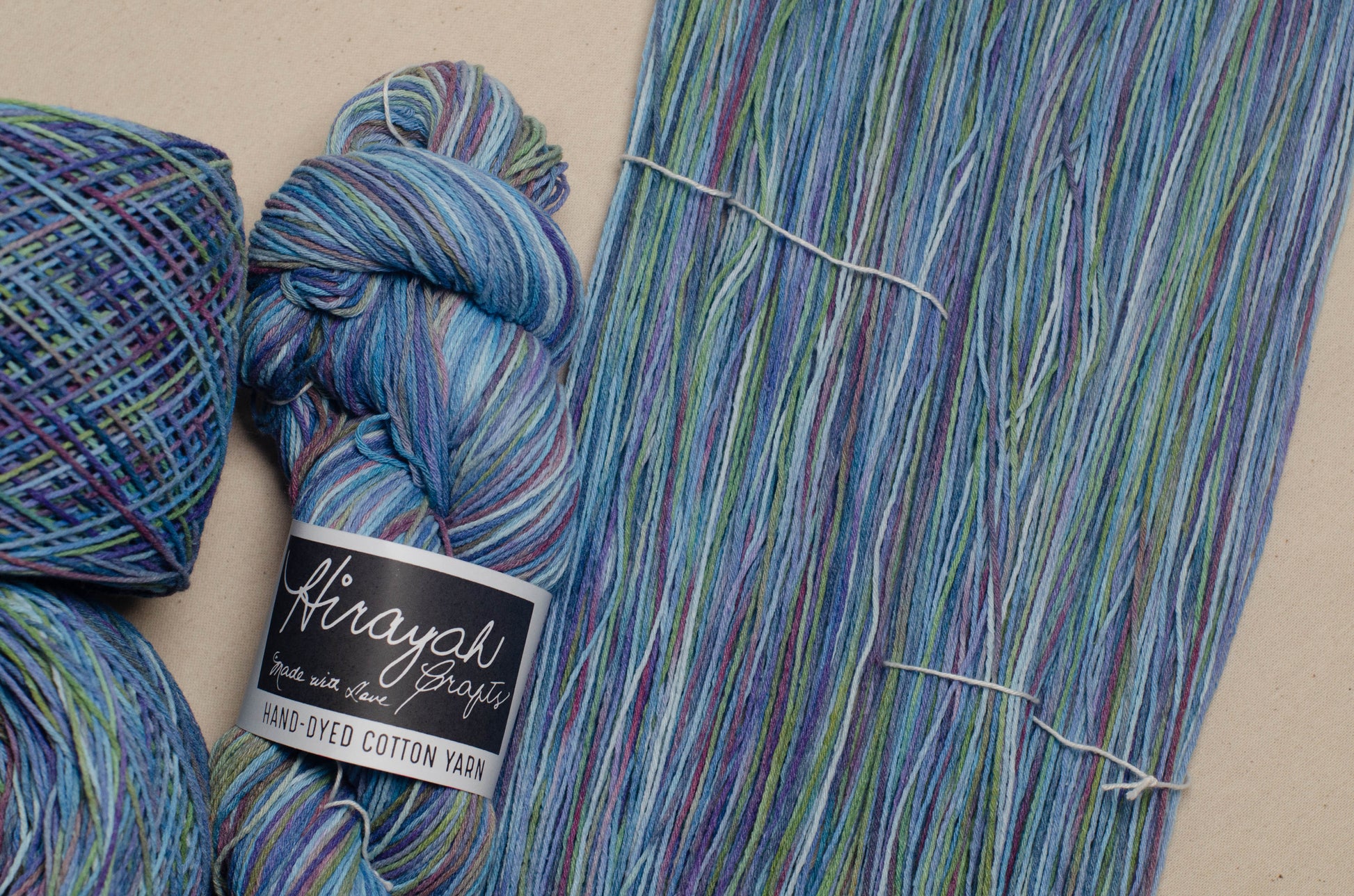 Light worsted weight/ 8ply hand-dyed cotton yarn.