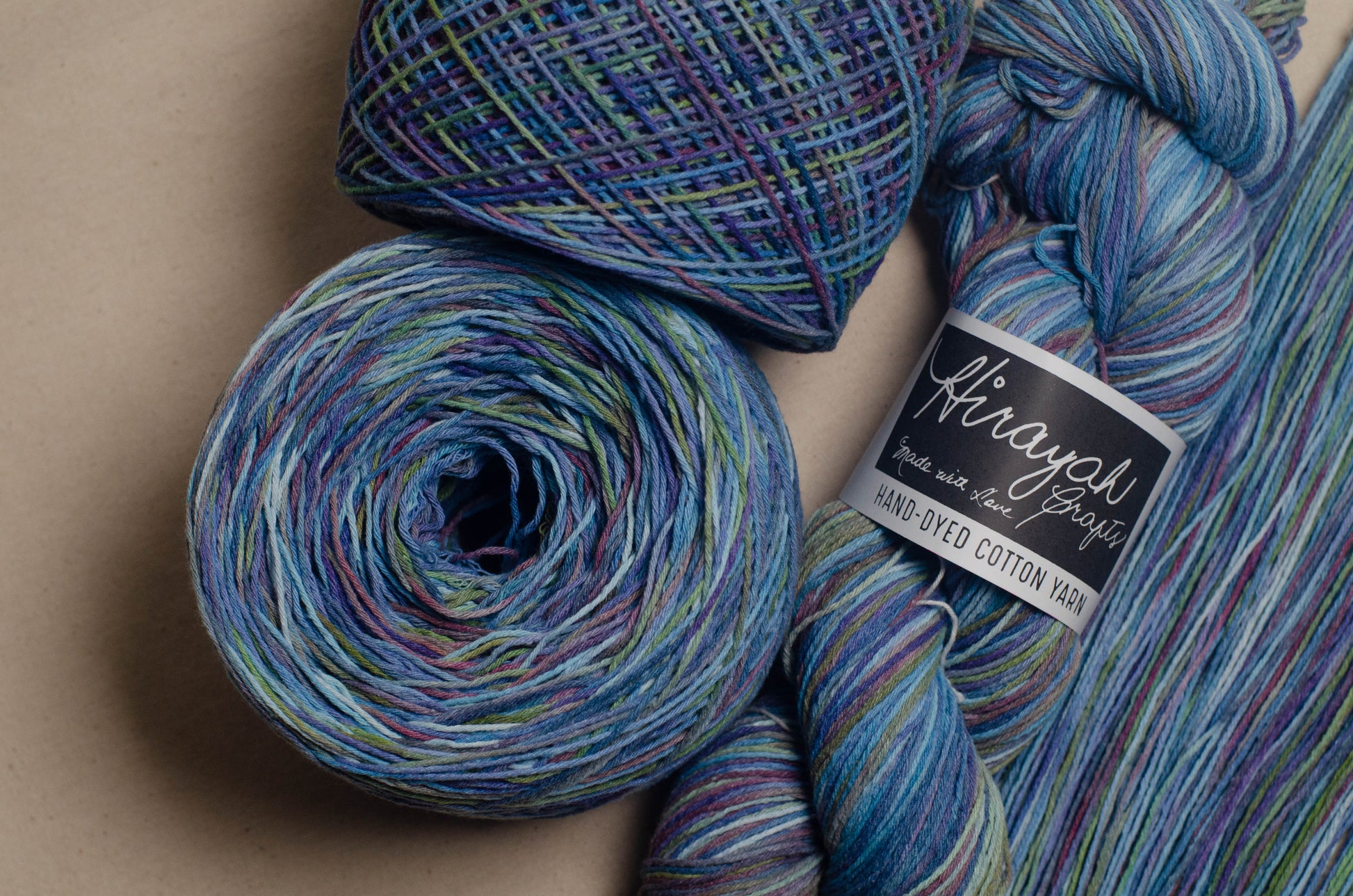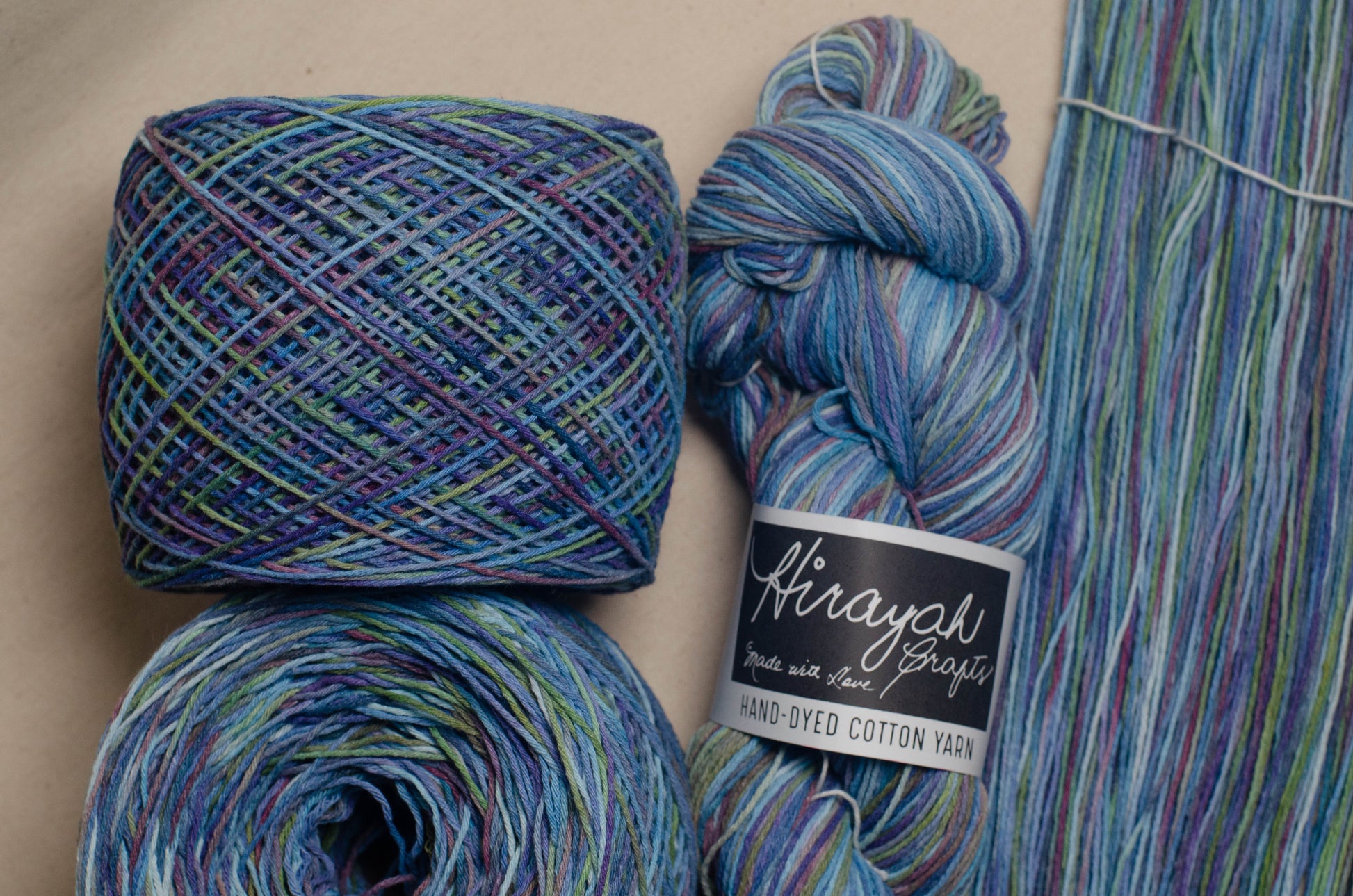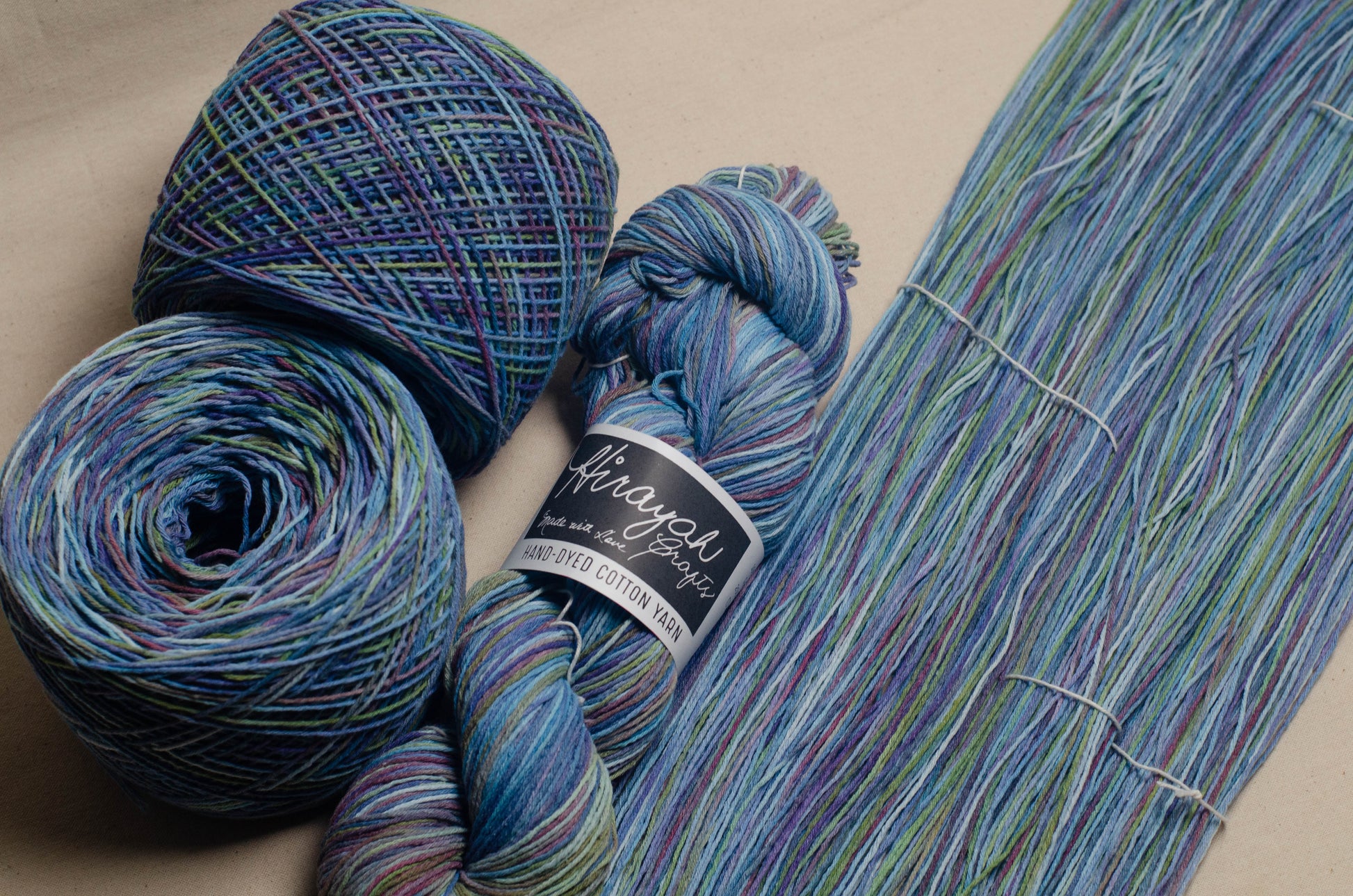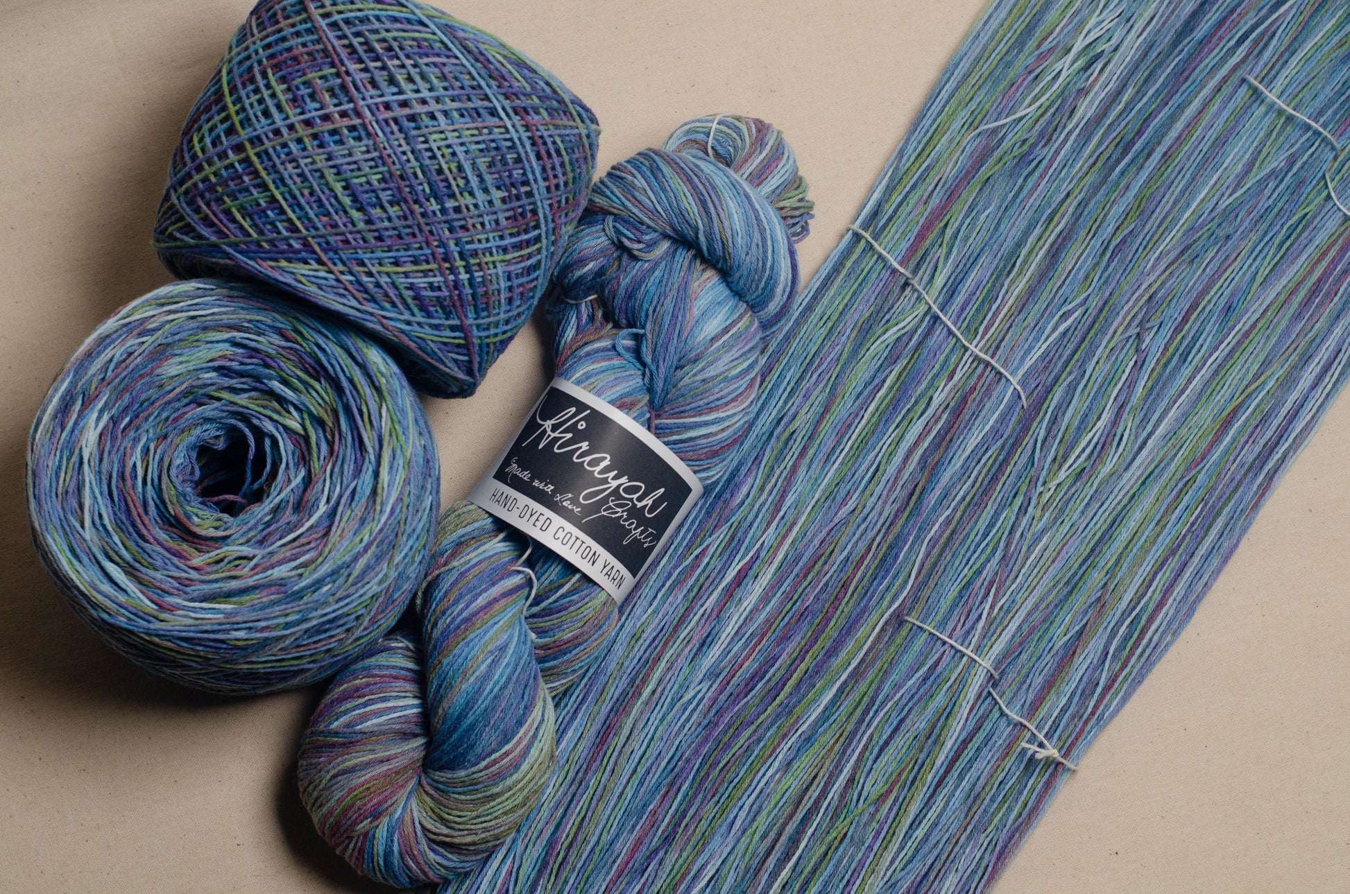 Light worsted weight/ 8ply hand-dyed cotton yarn.