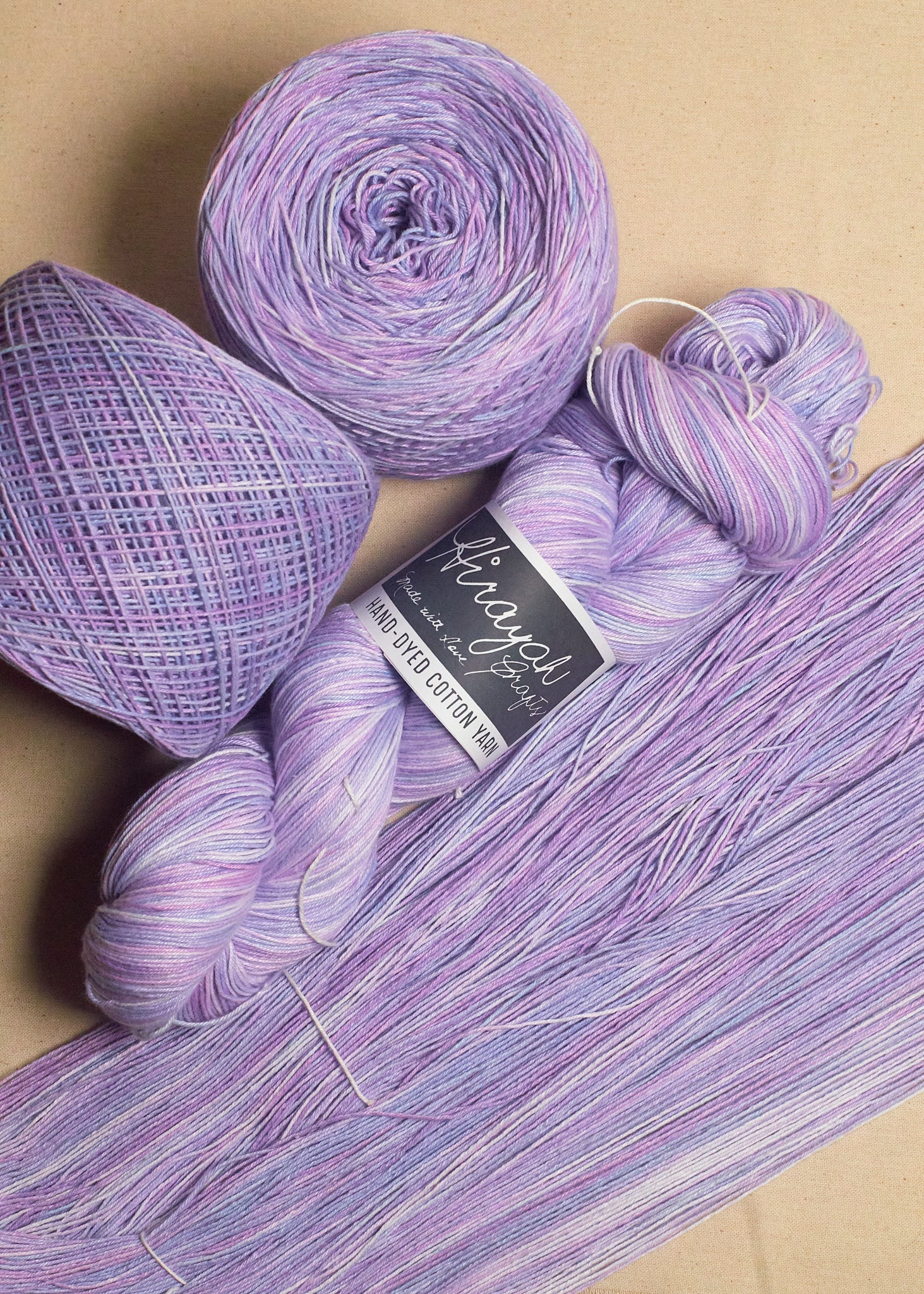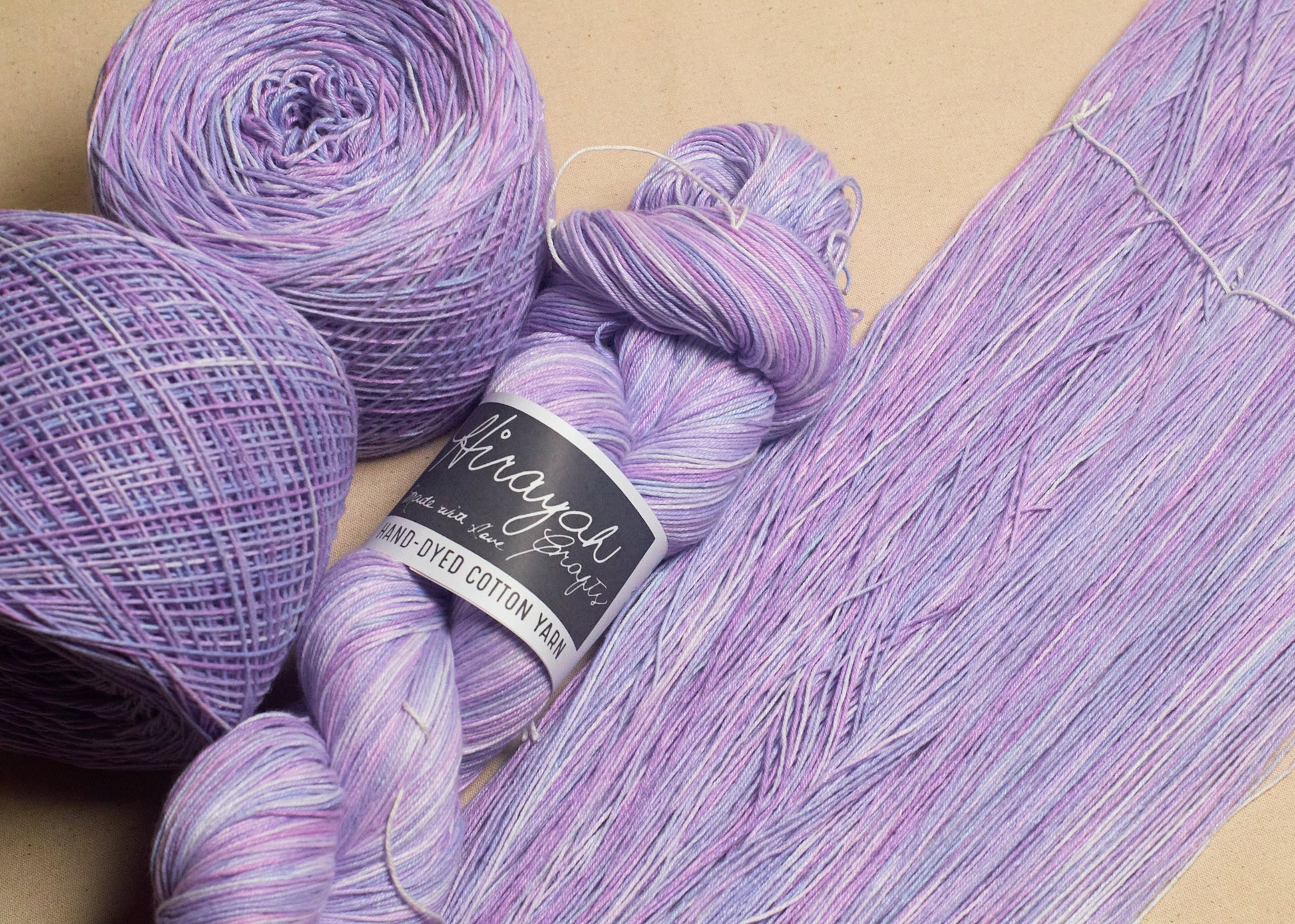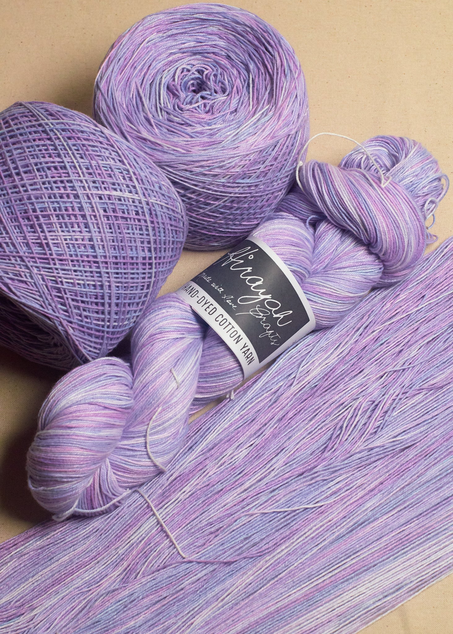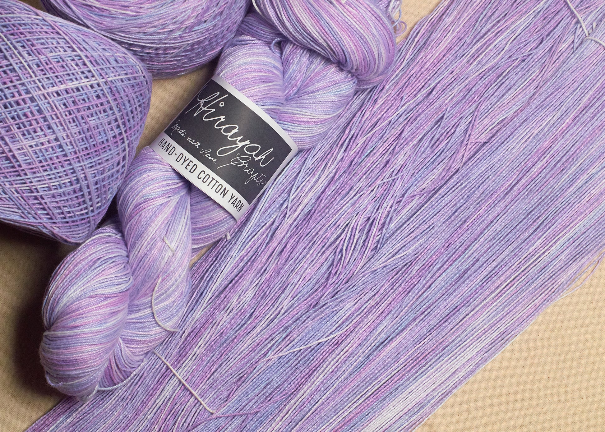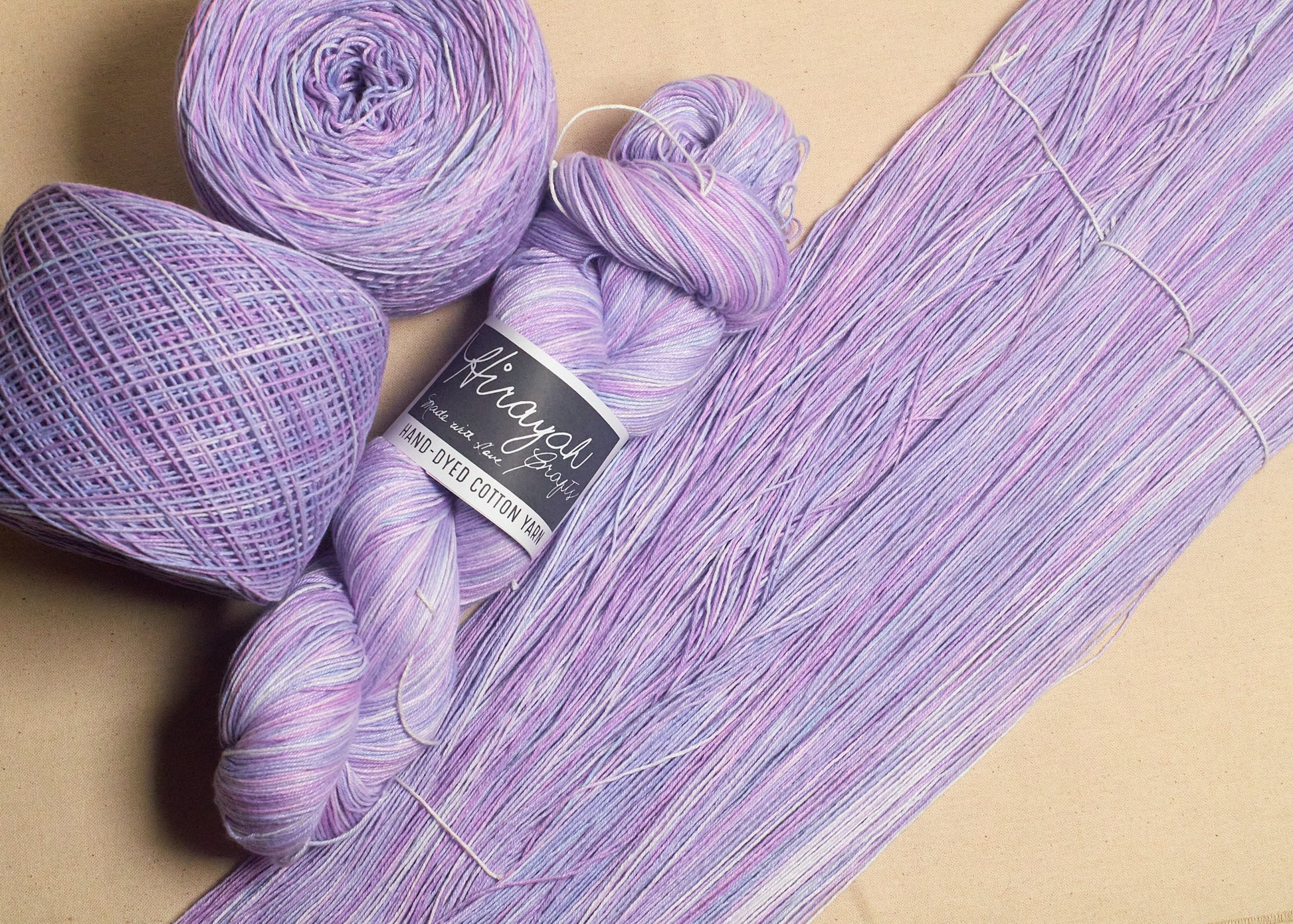 Light worsted weight/ 8ply hand-dyed cotton yarn.