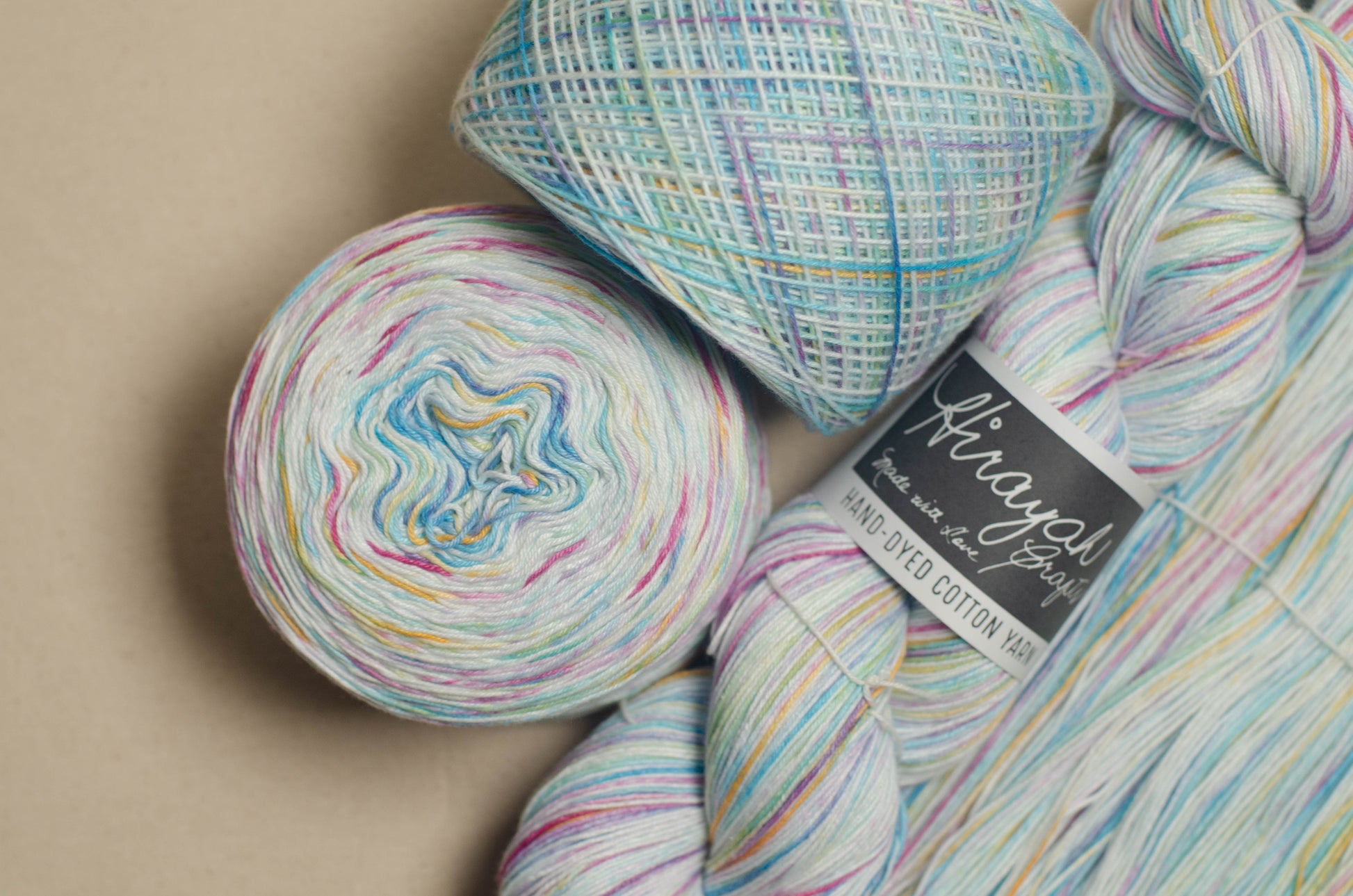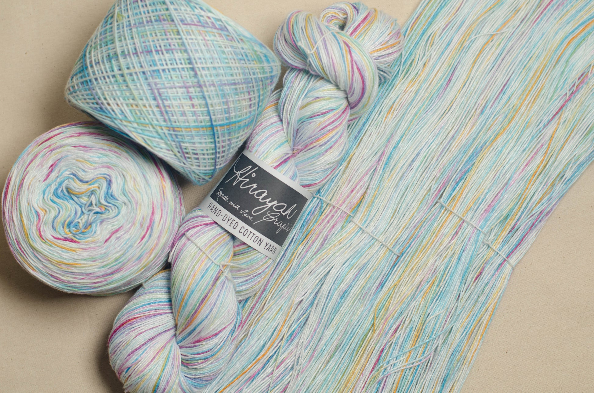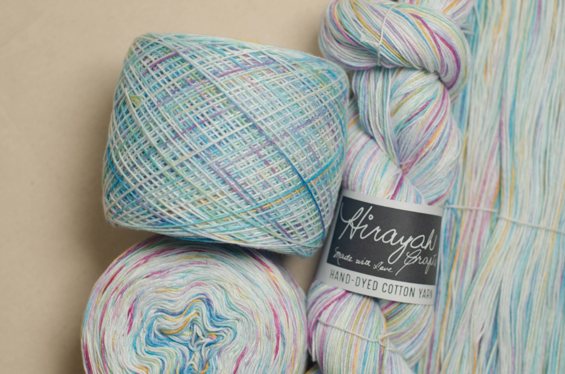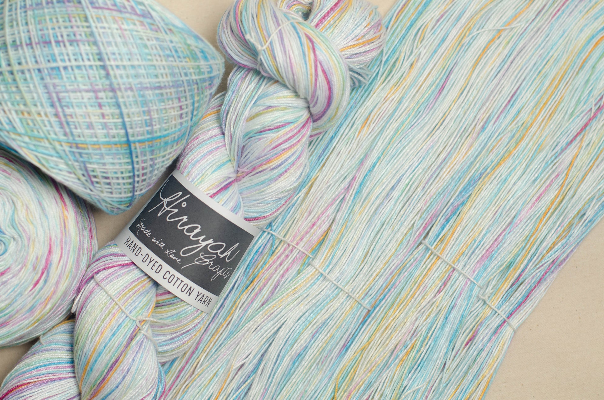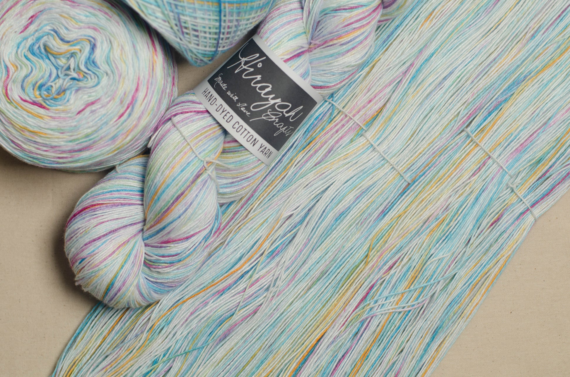 Light worsted weight/ 8ply hand-dyed cotton yarn.