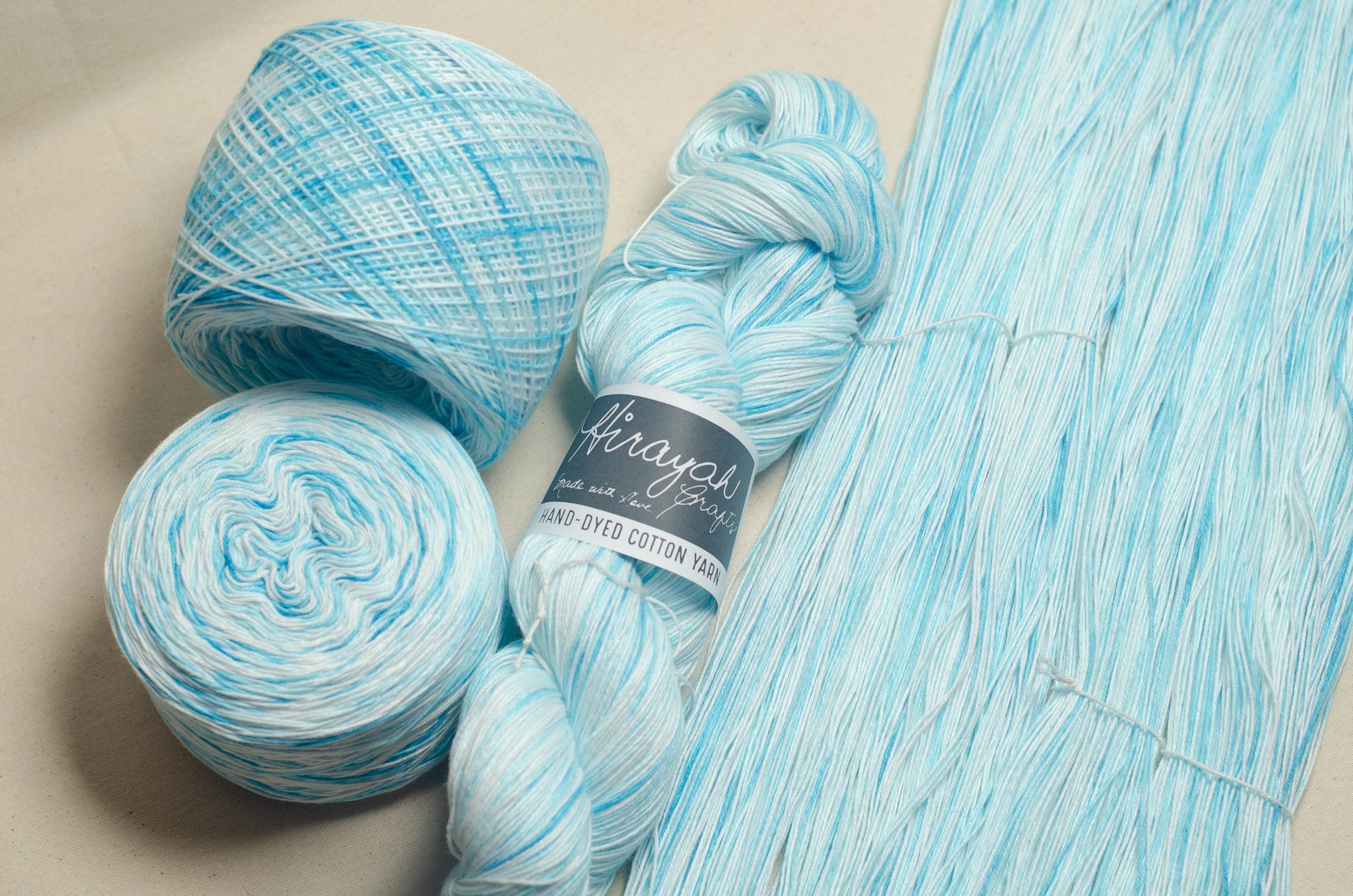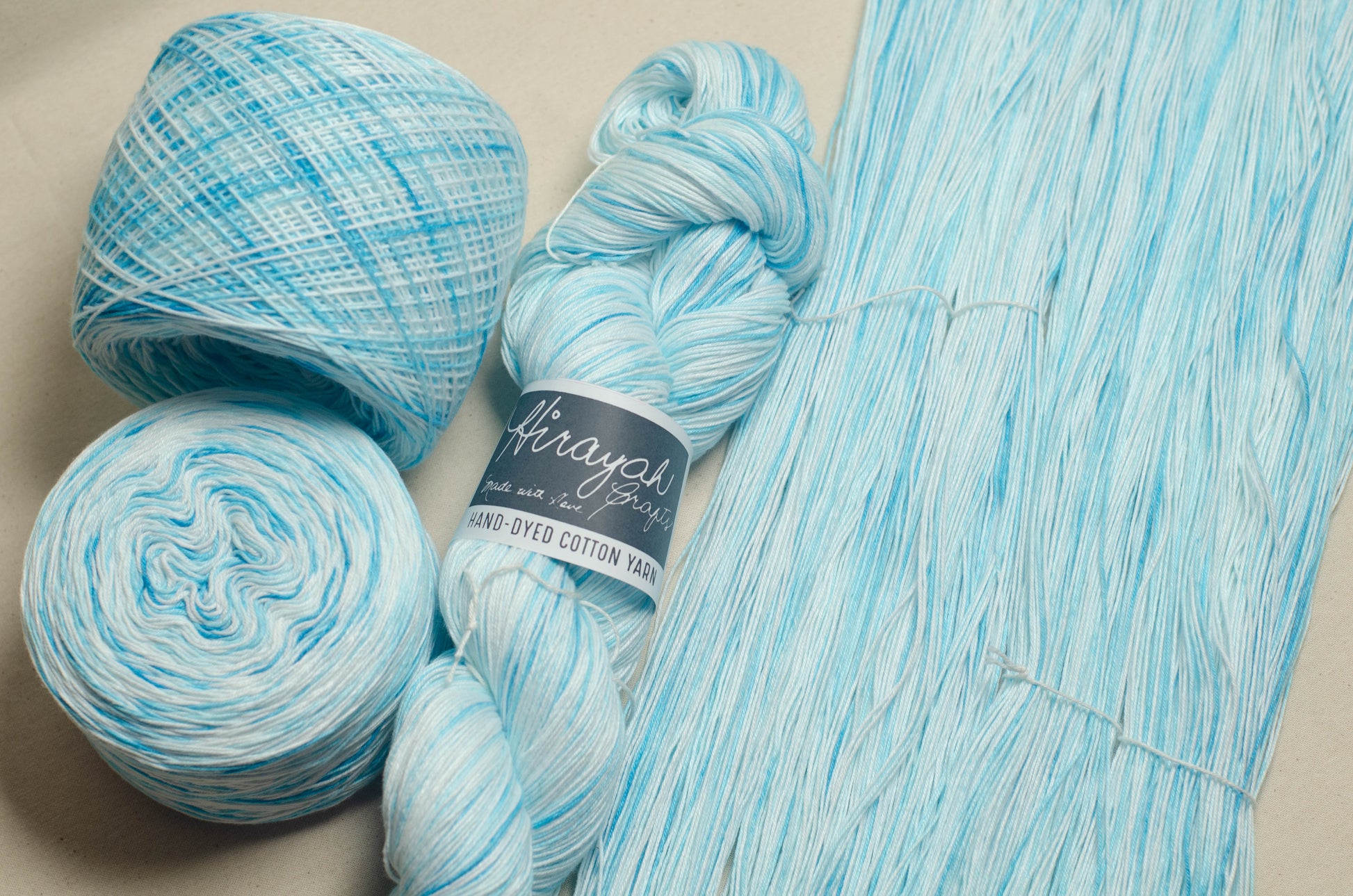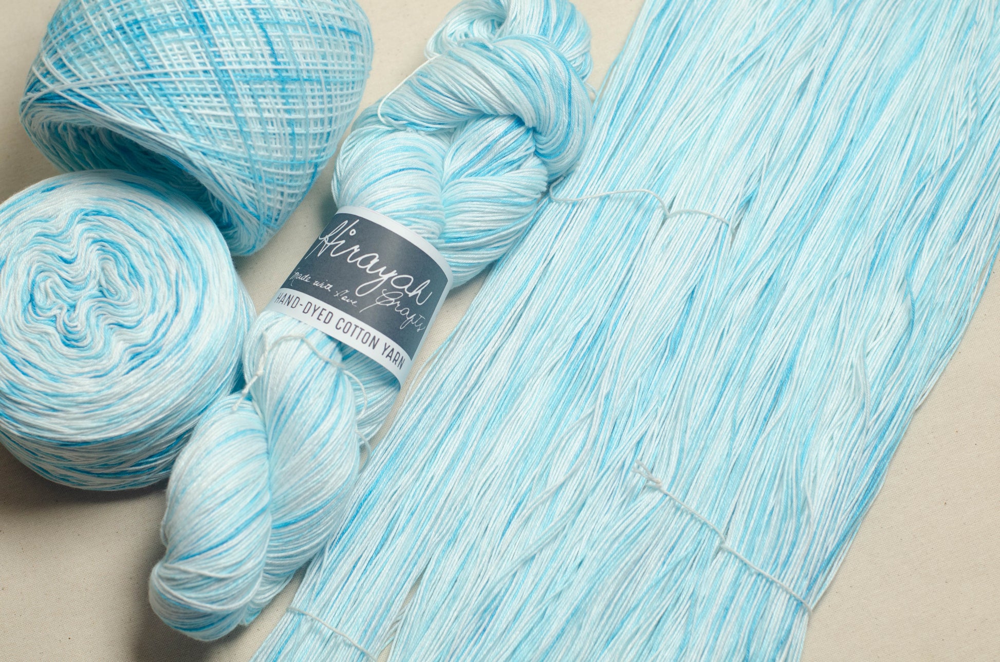 Light worsted weight/ 8ply hand-dyed cotton yarn.