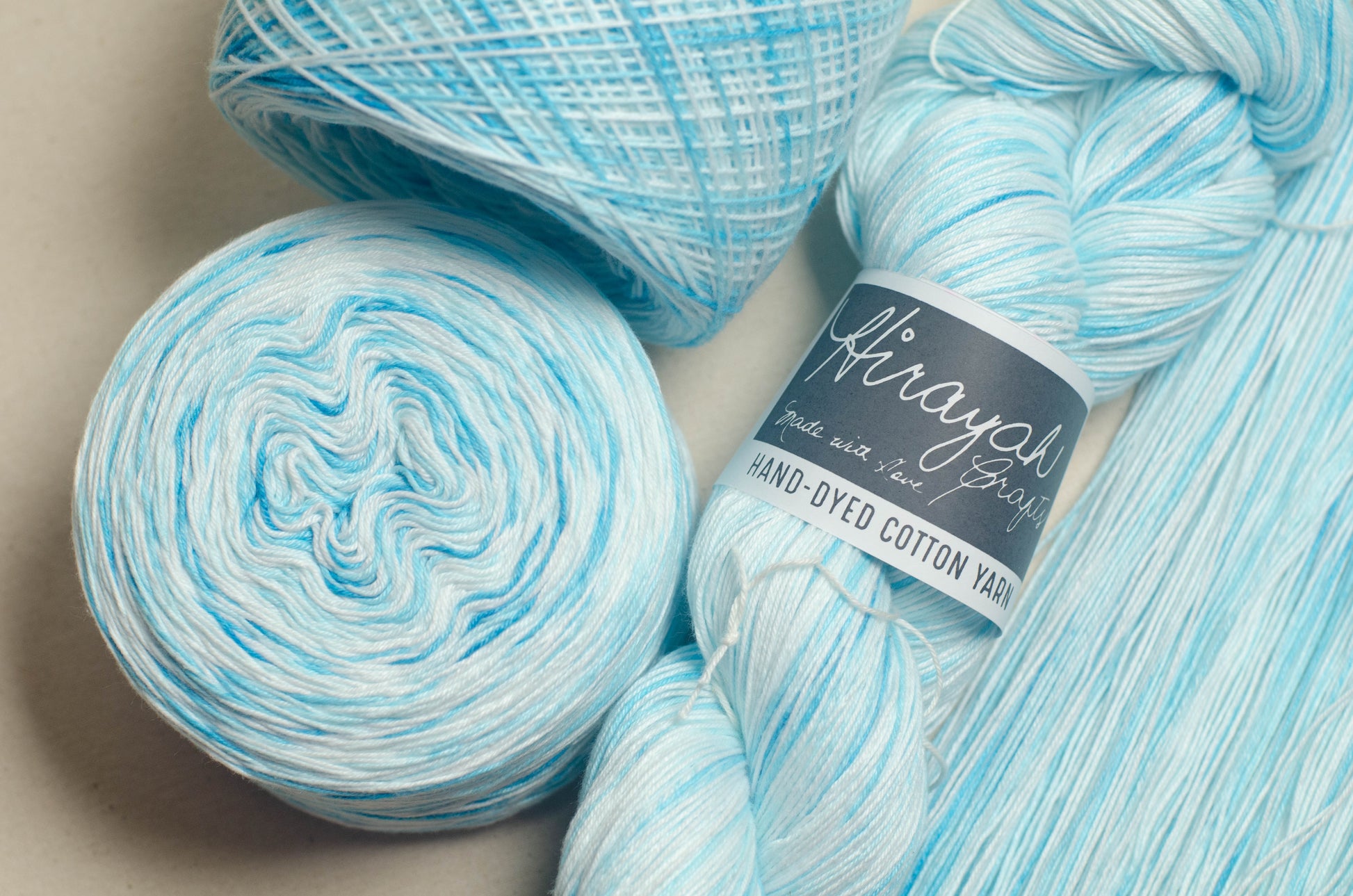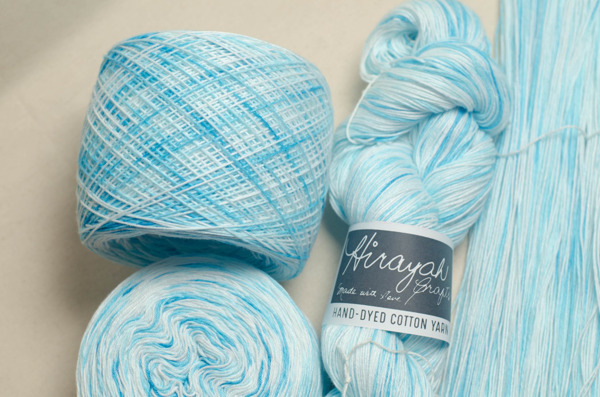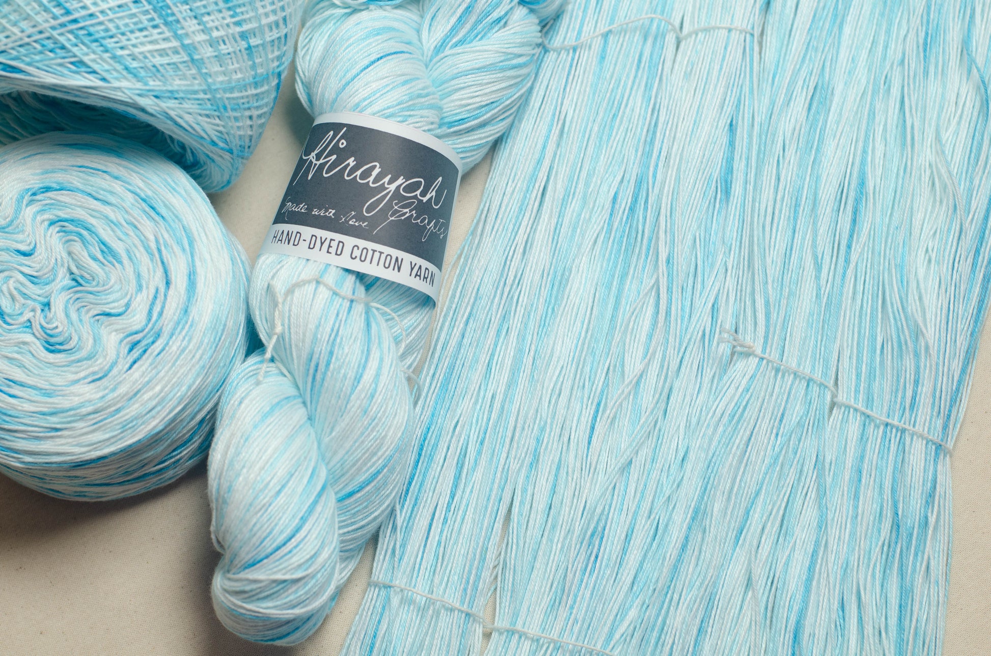 Light worsted weight/ 8ply hand-dyed cotton yarn.
