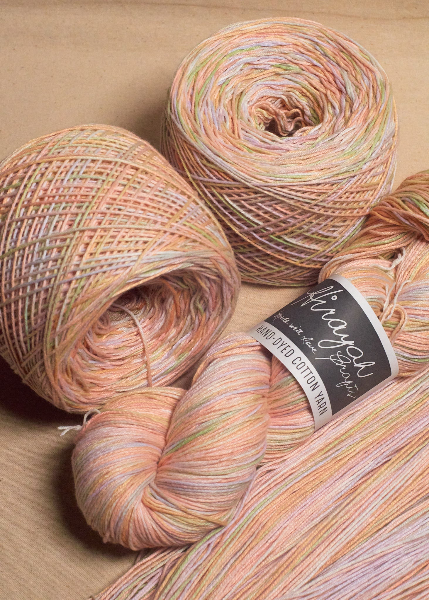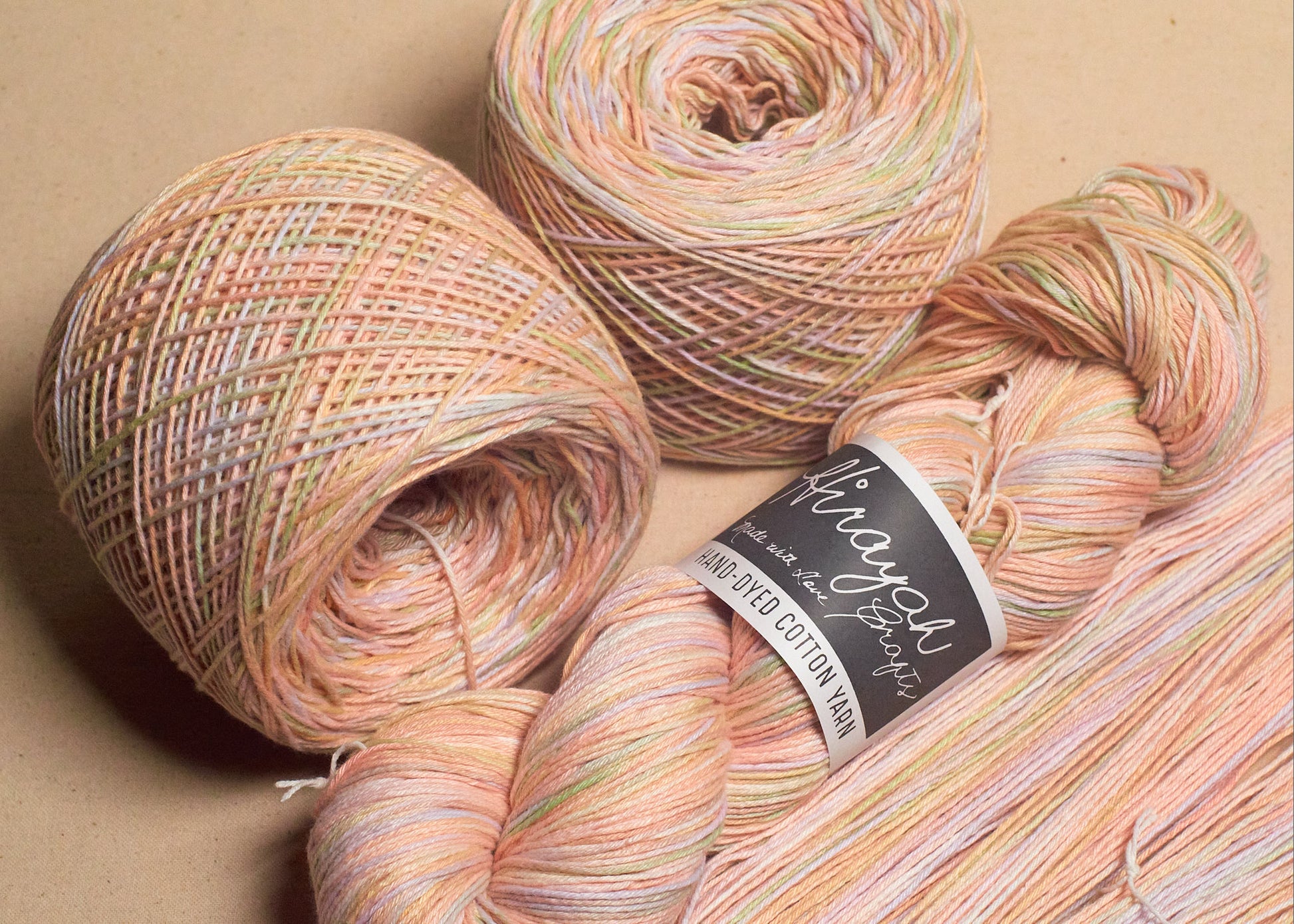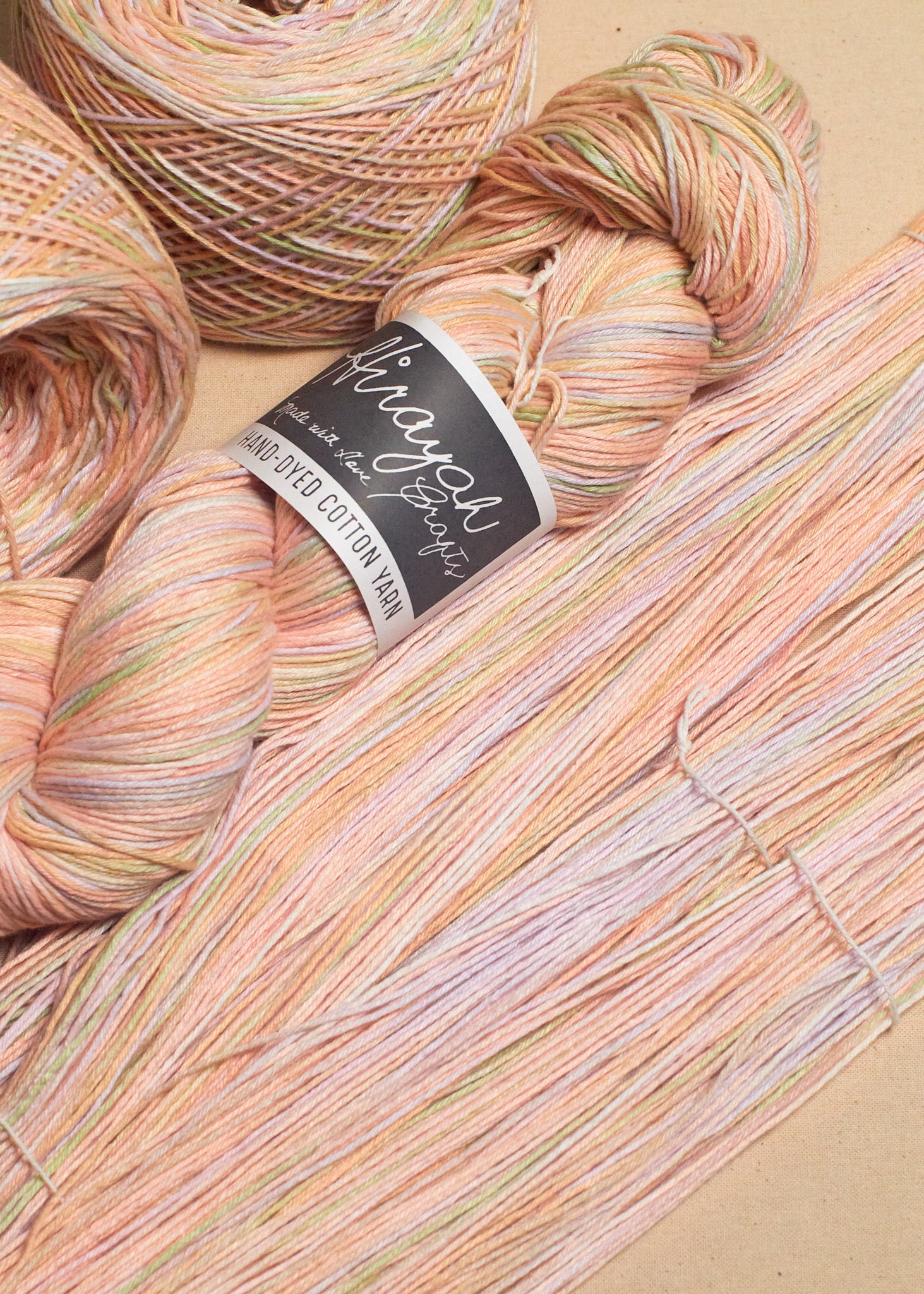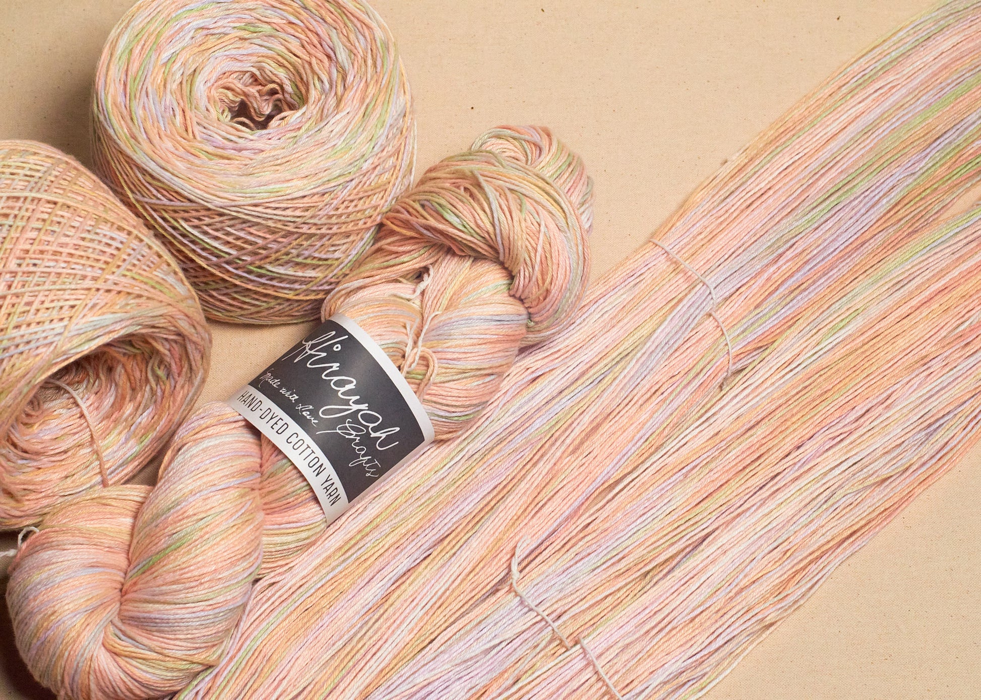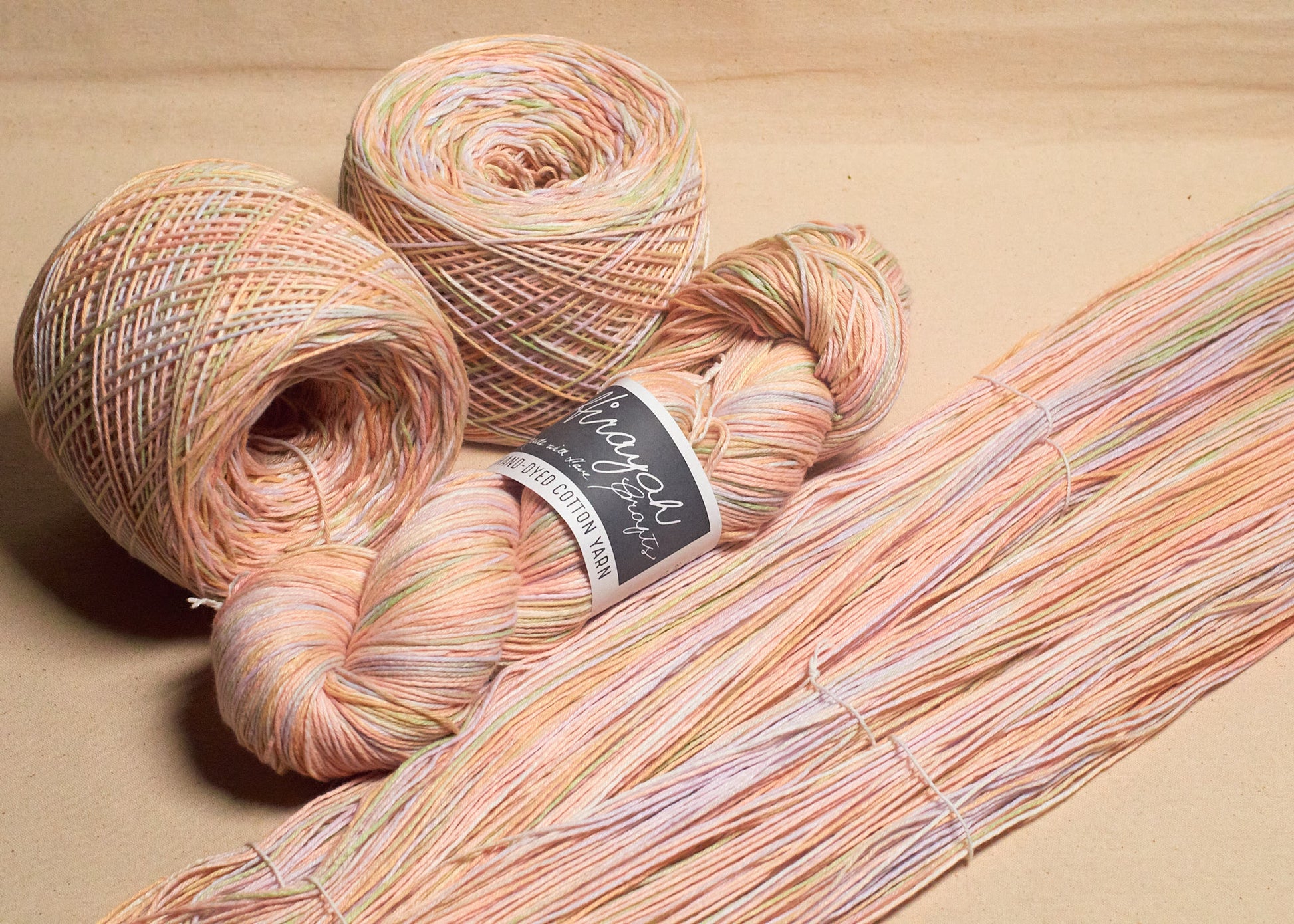 Light worsted weight/ 8ply hand-dyed cotton yarn.