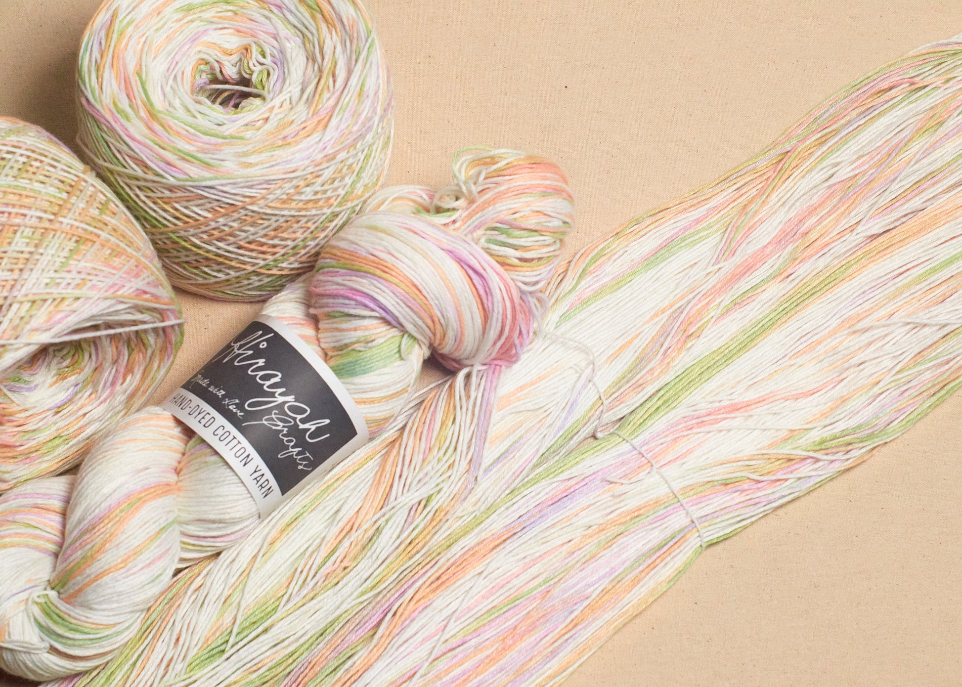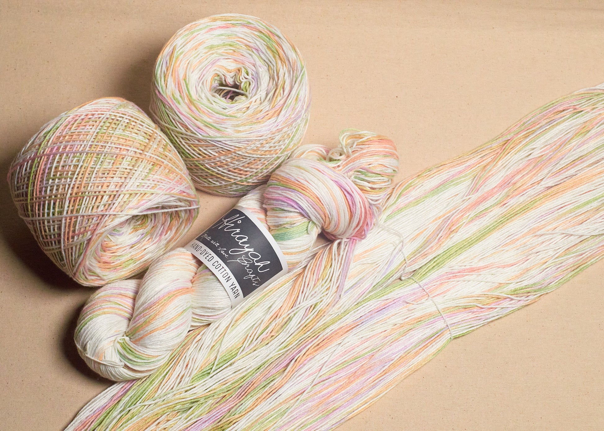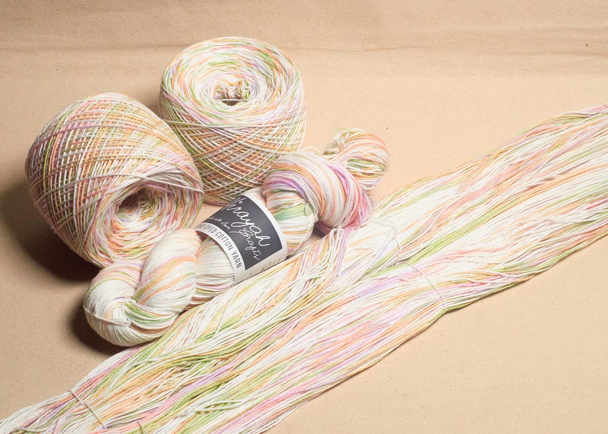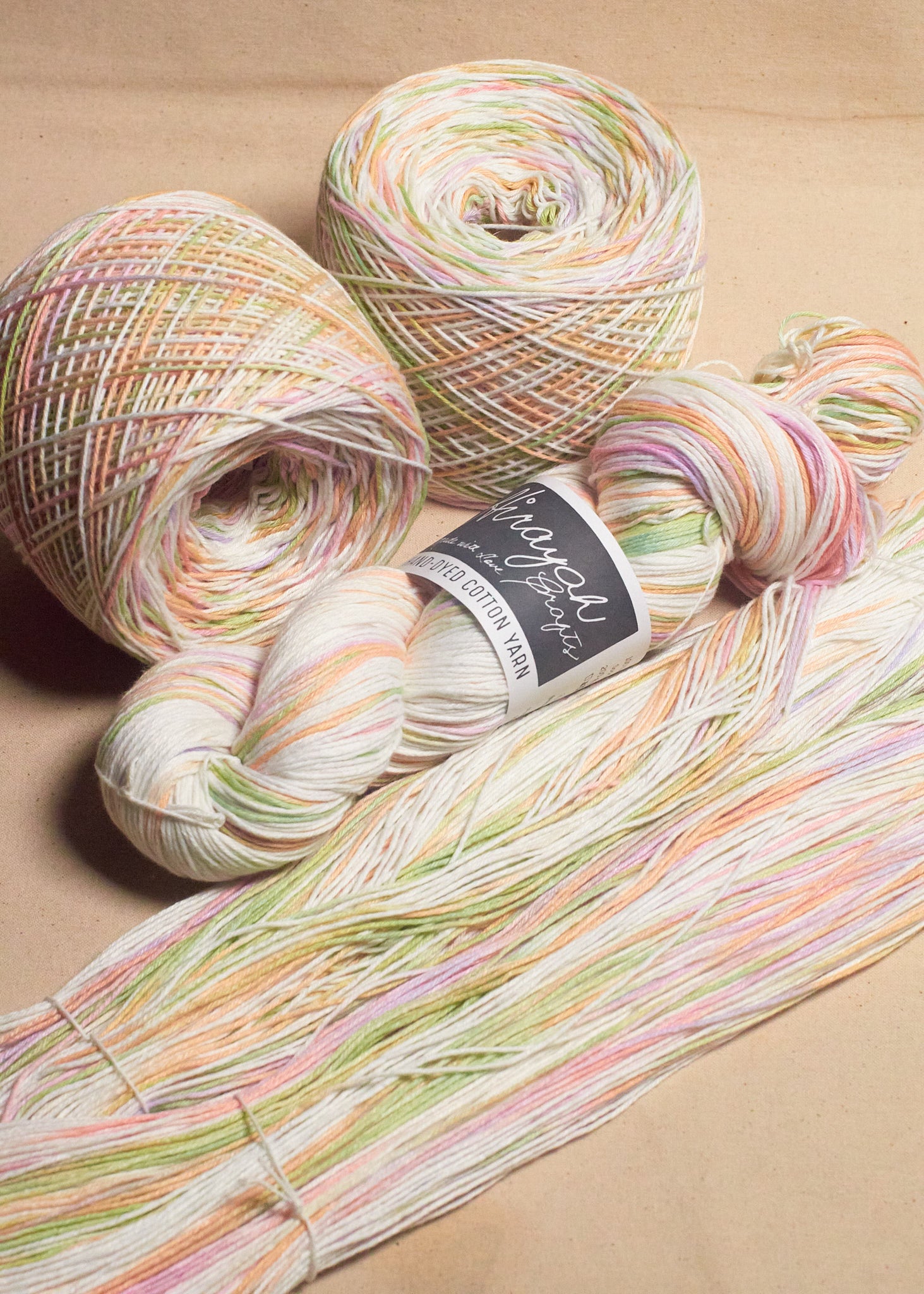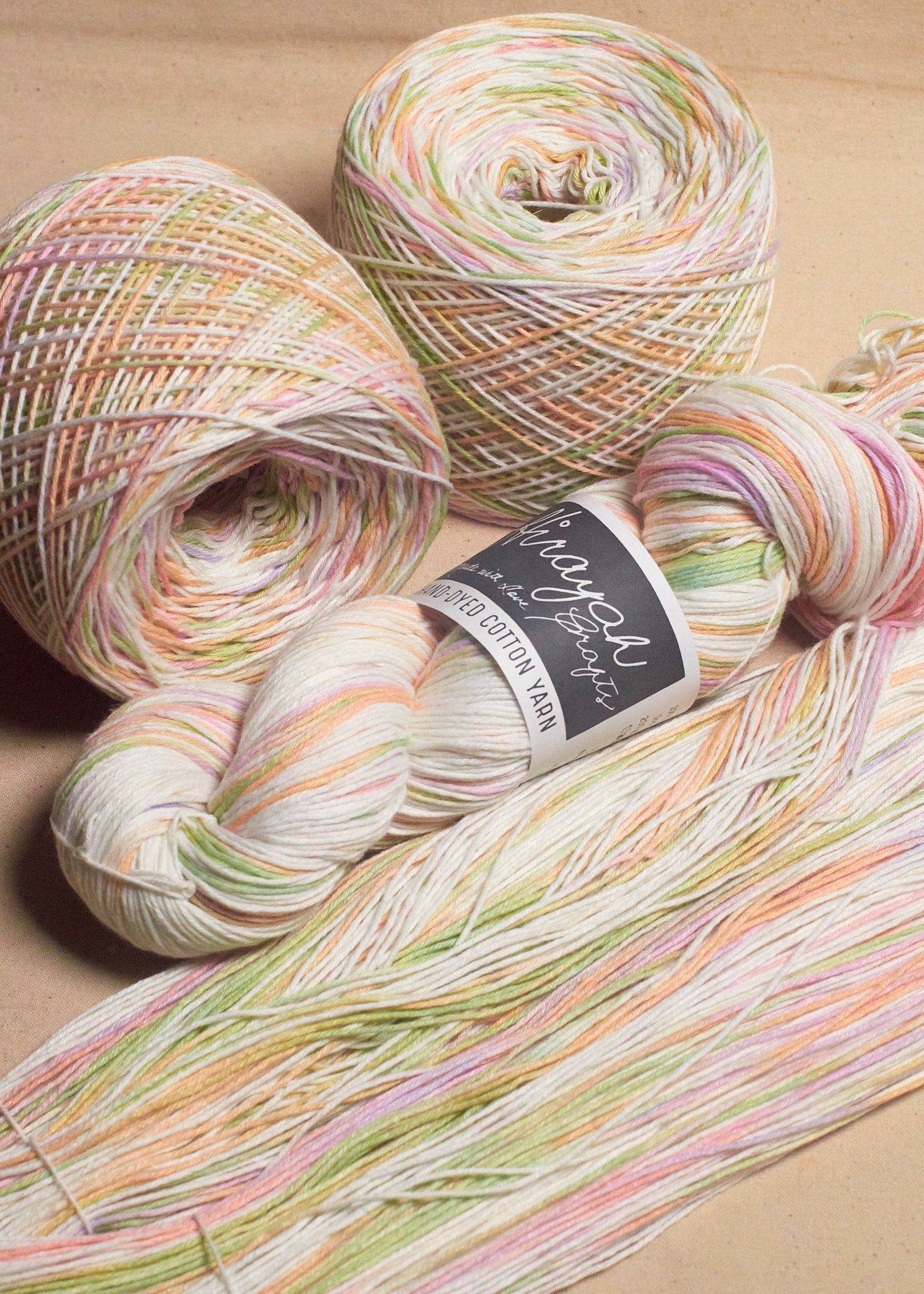 Light worsted weight/ 8ply hand-dyed cotton yarn.