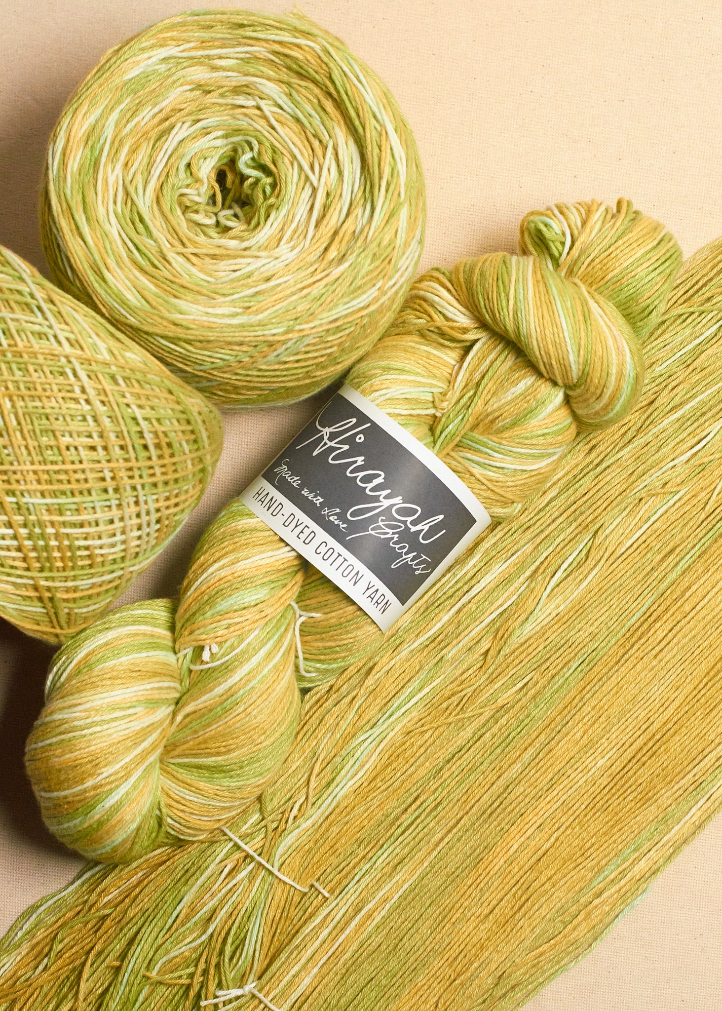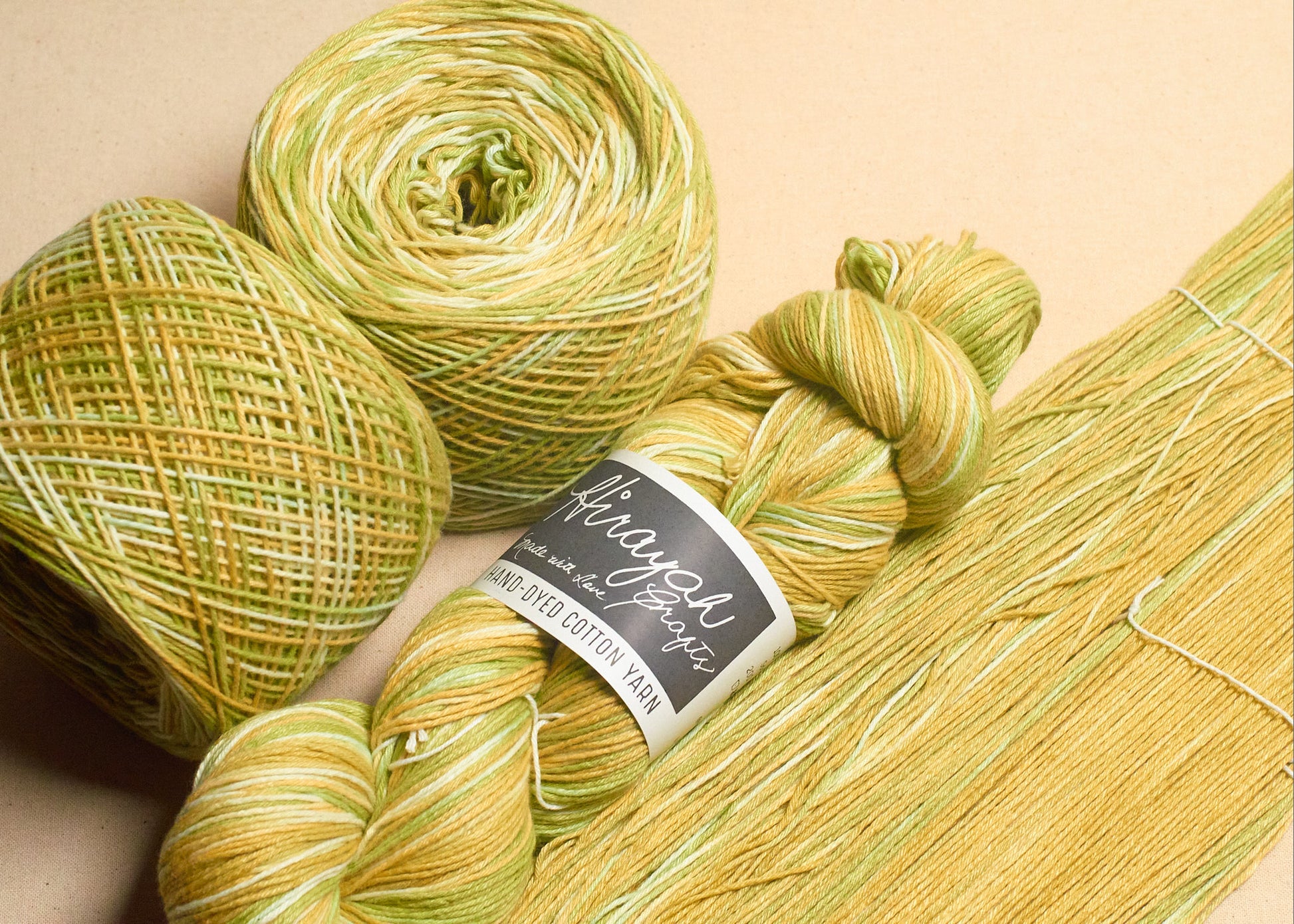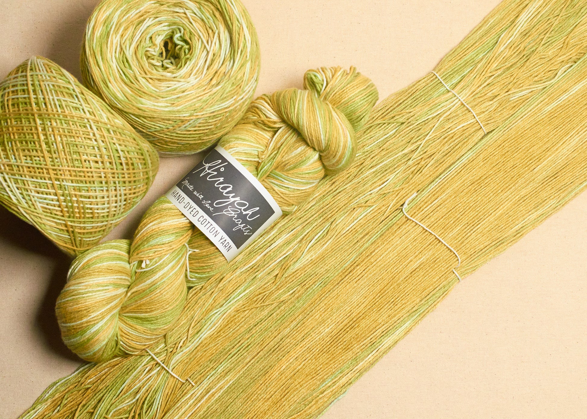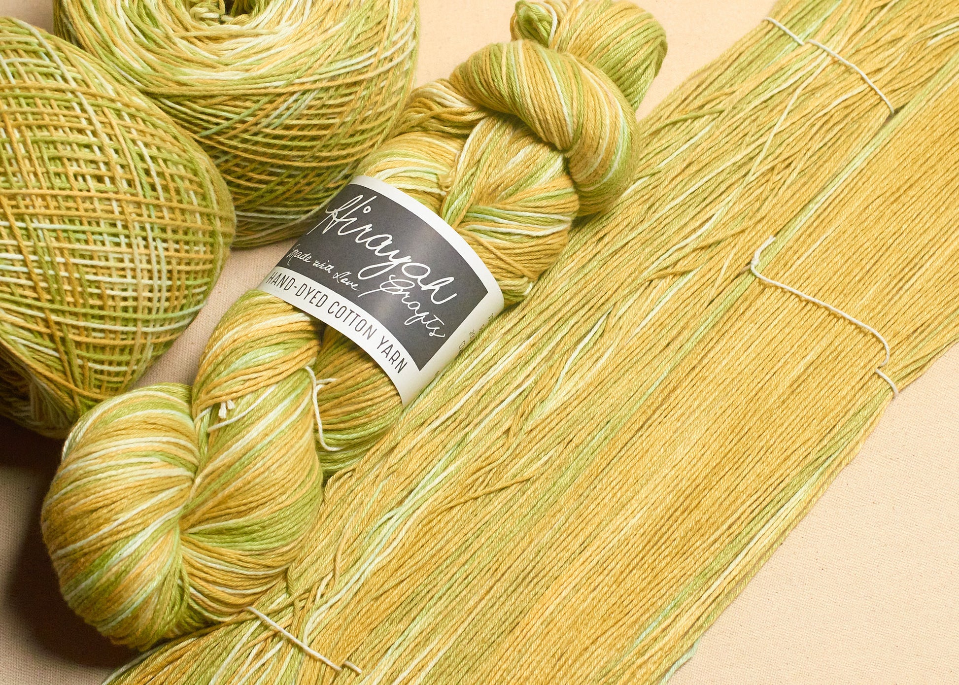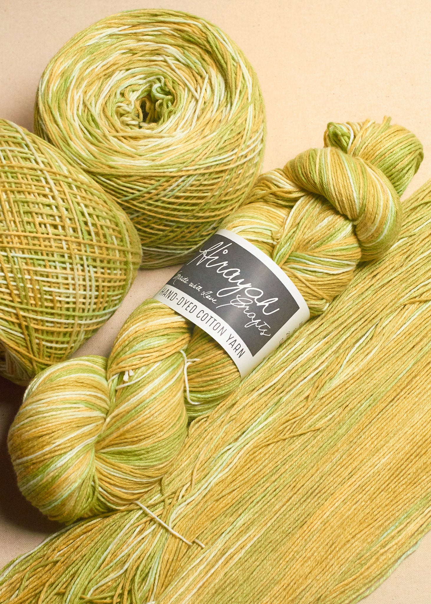 Light worsted weight/ 8ply hand-dyed cotton yarn.