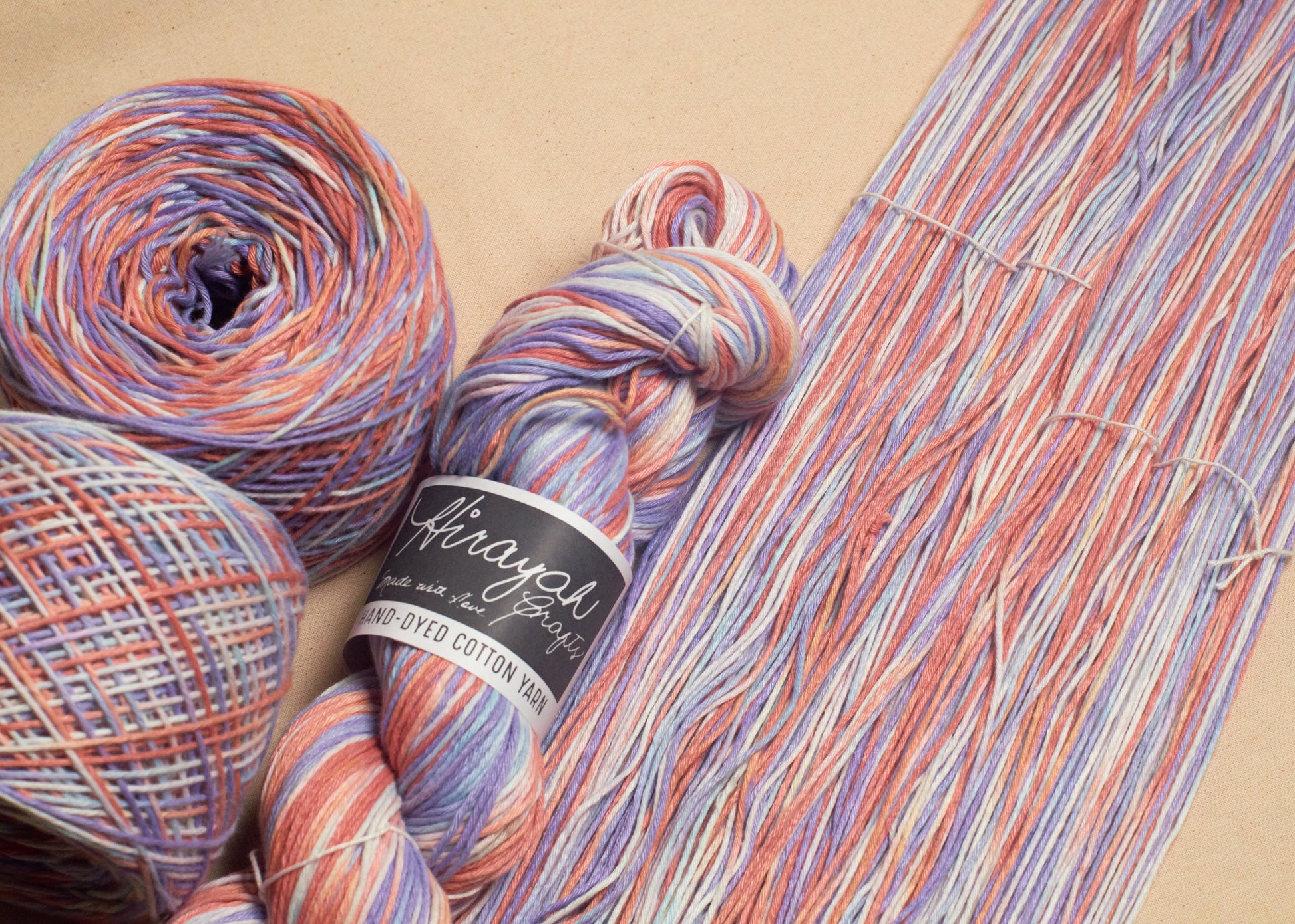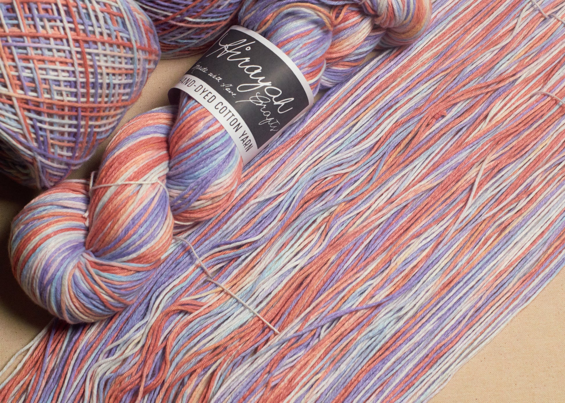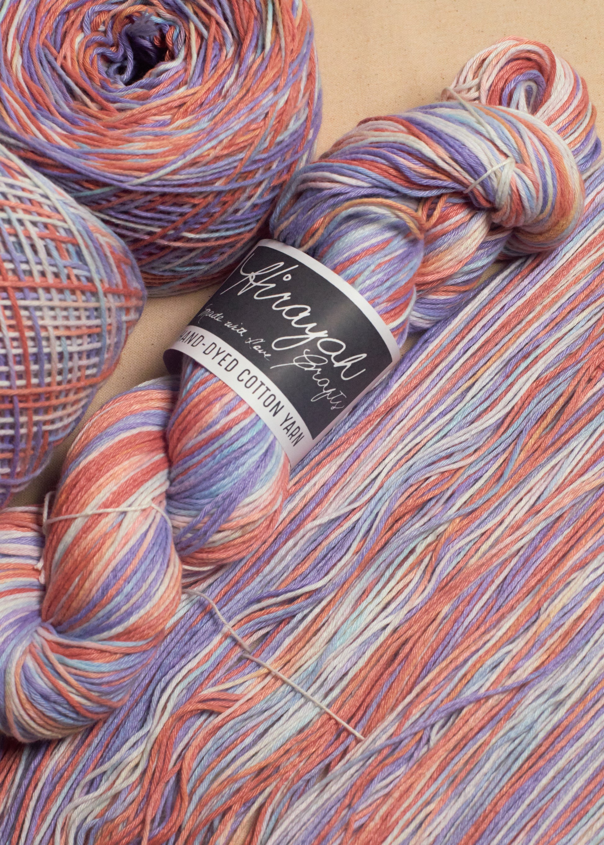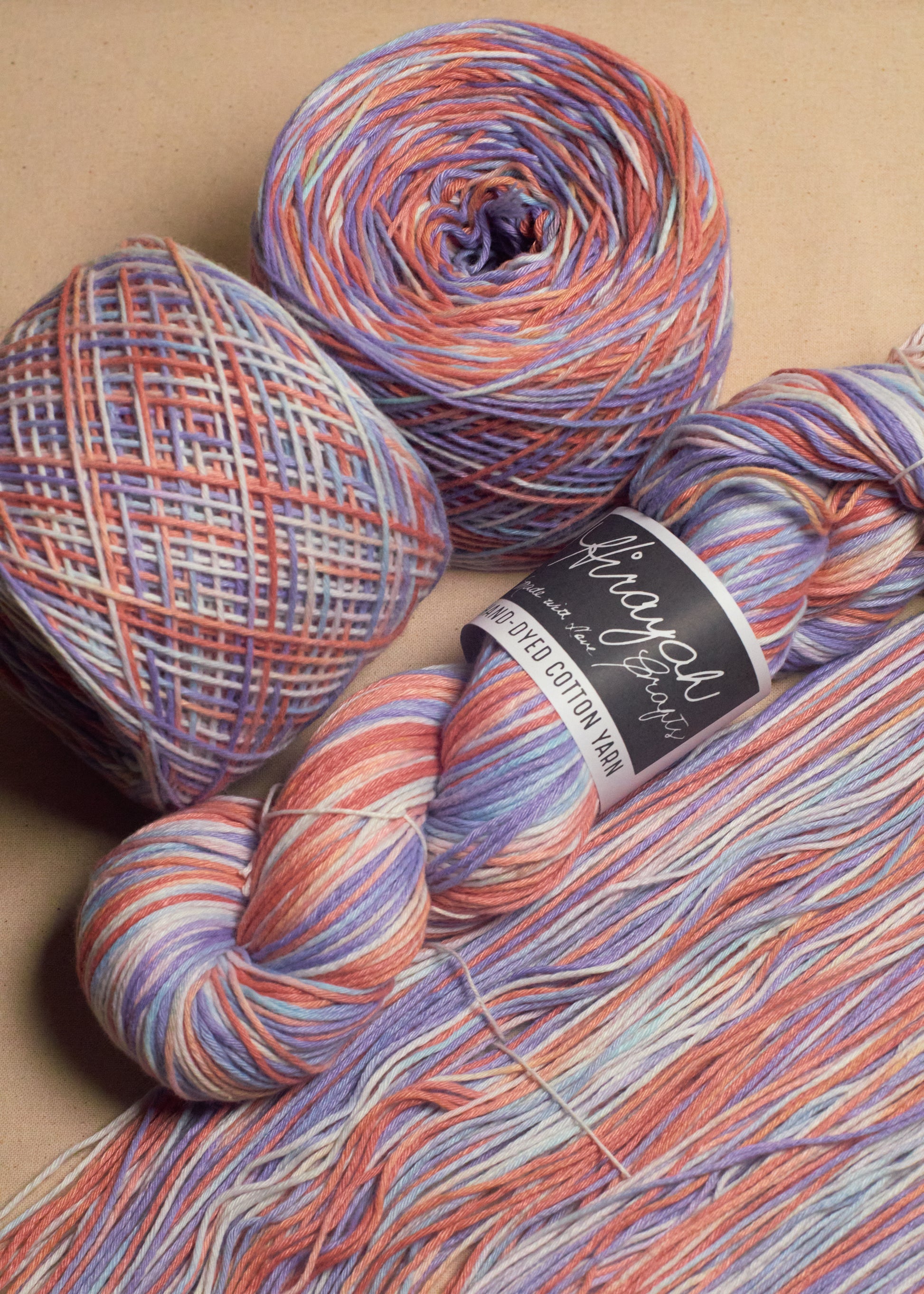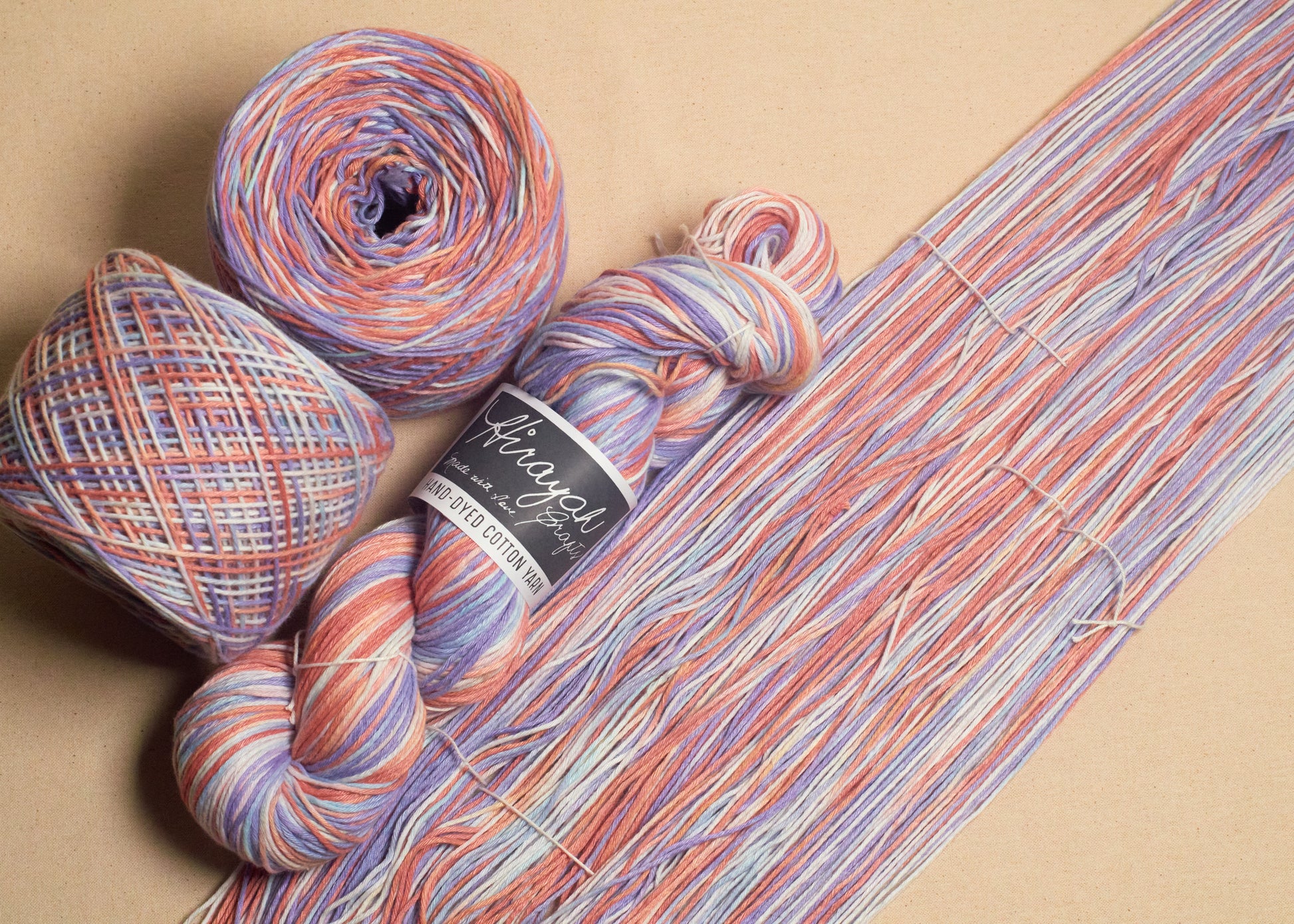 Light worsted weight/ 8ply hand-dyed cotton yarn.